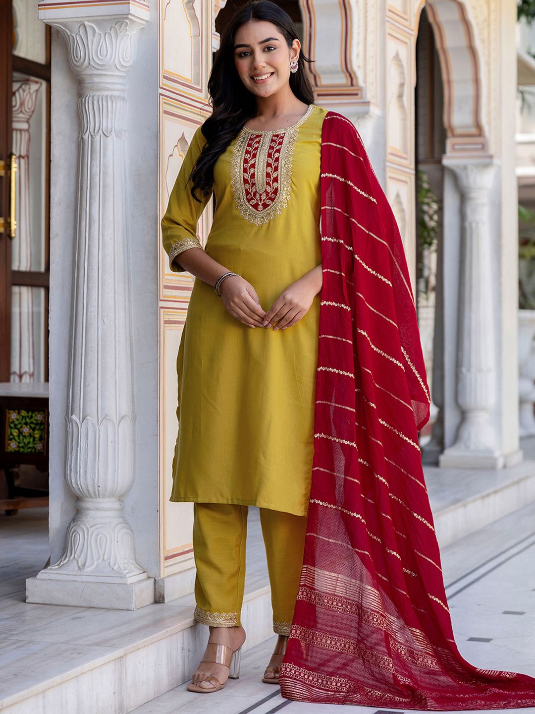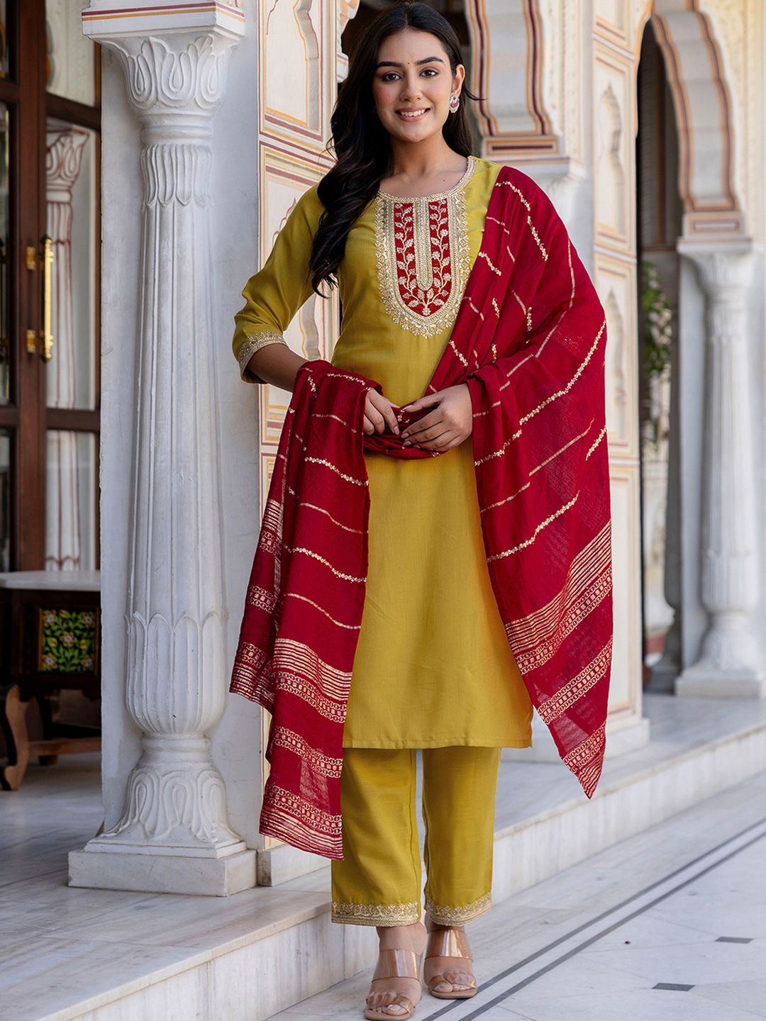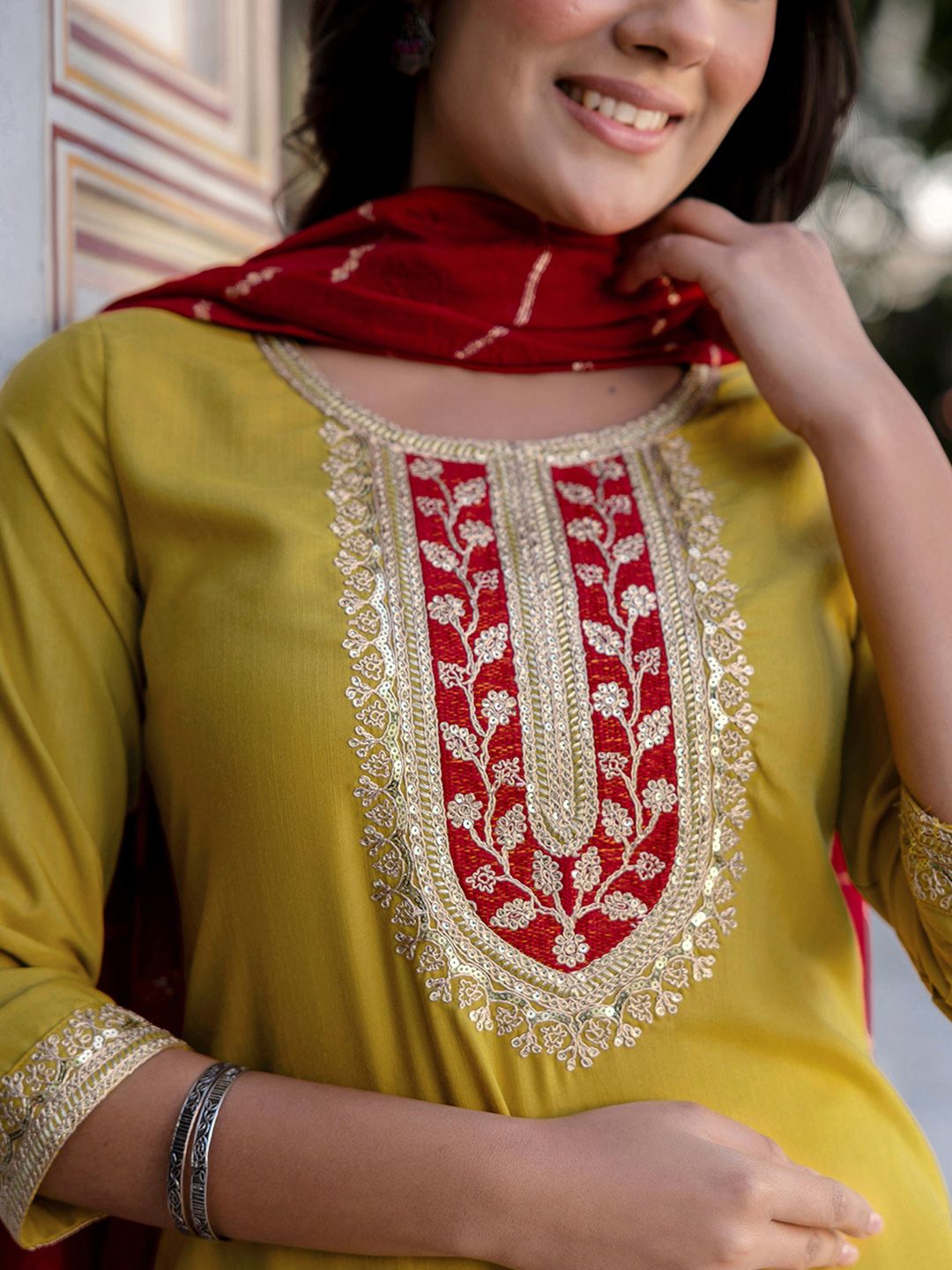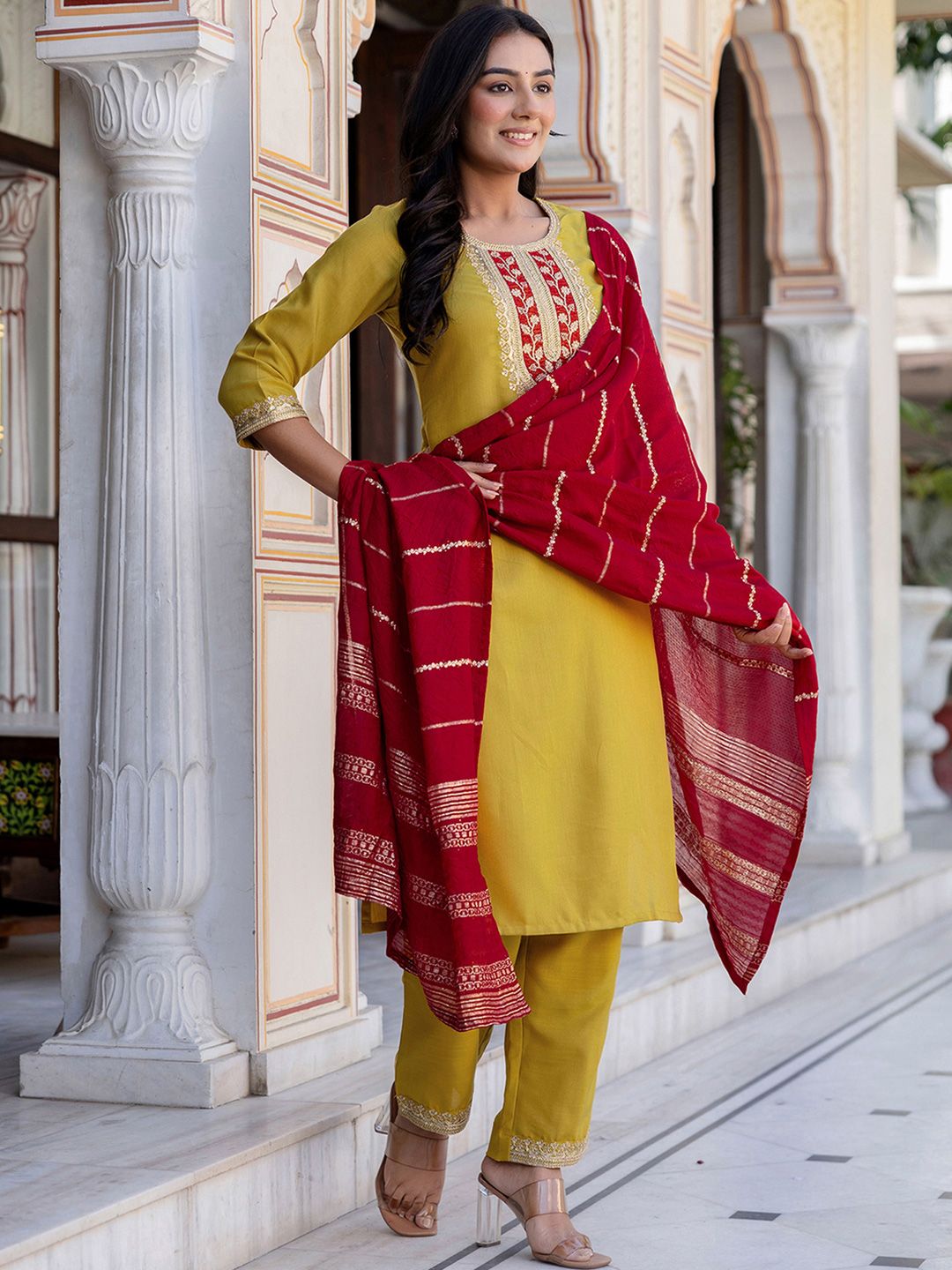 Buy this stylish SKYLEE Women Ethnic Motifs Embroidered Sequinned Kurta with Trousers & With Dupatta at Marincart Nepal. This product offers great quality and value. Perfect for those looking for the latest trends in fashion. Get yours now at unbeatable prices.