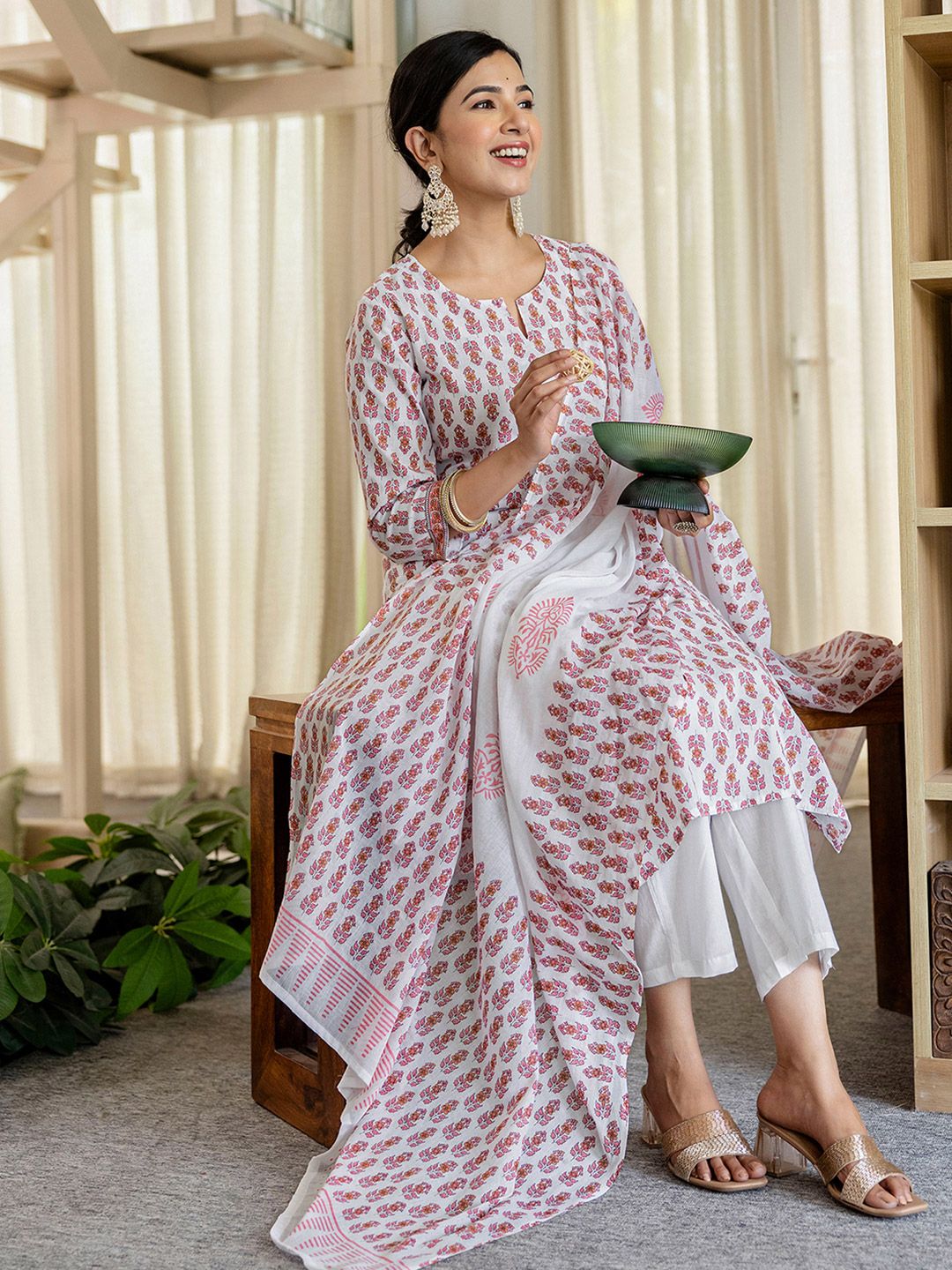 SKYLEE Women Ethnic Motifs Printed Regular Kurta with Trousers & With Dupatta