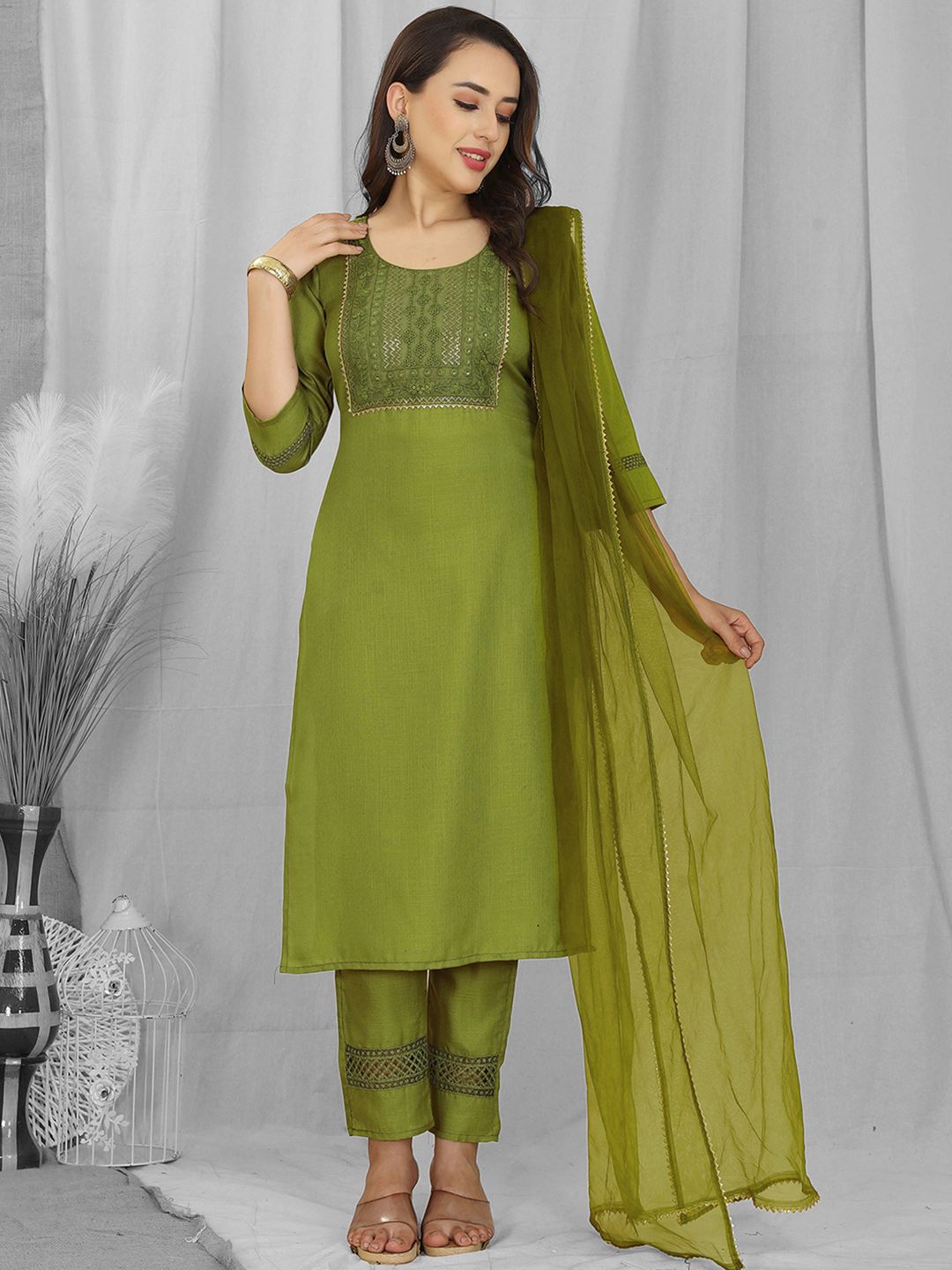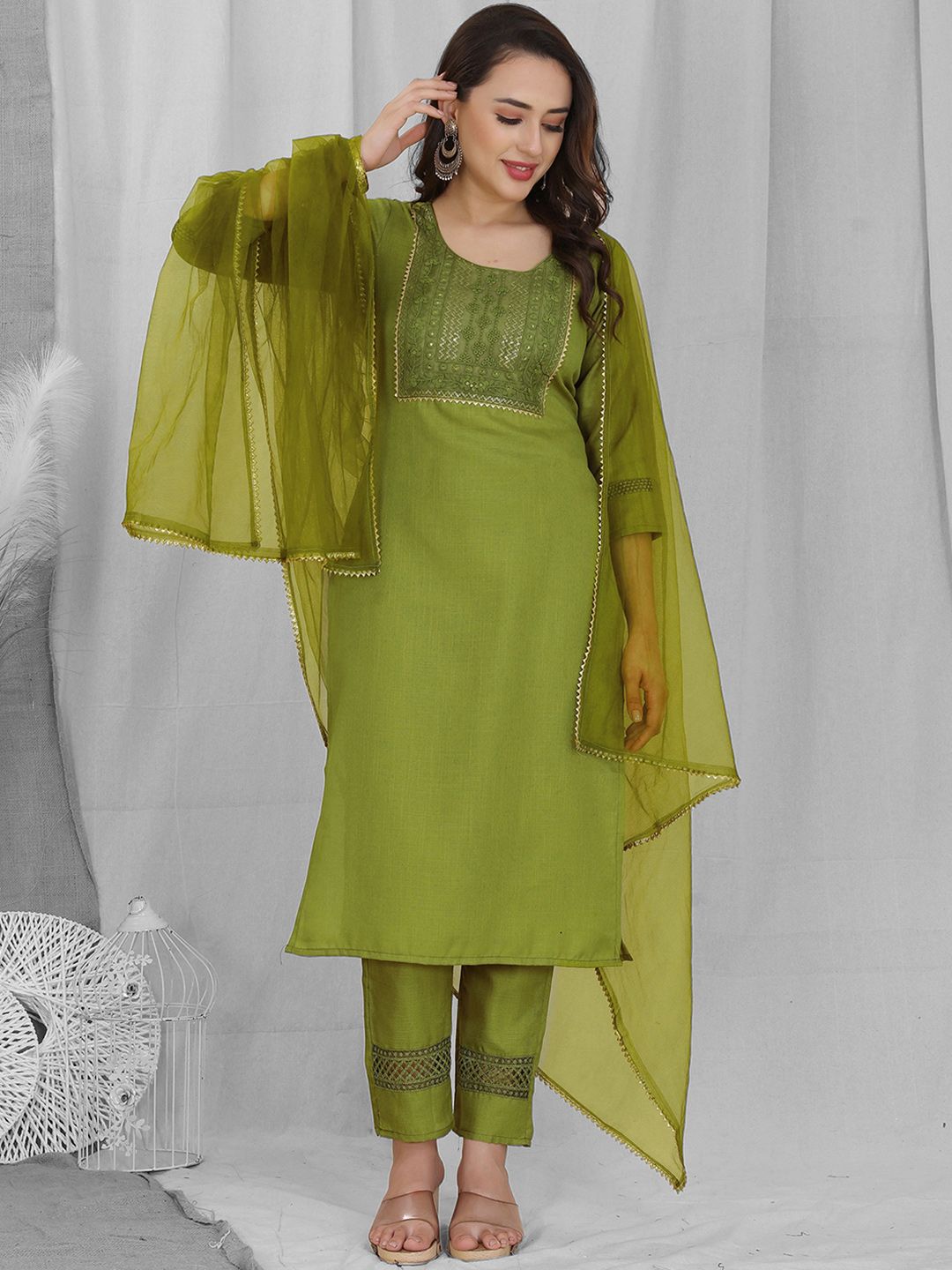 SKYLEE Women Ethnic Motifs Yoke Design Regular Thread Work Kurta with Trousers & Dupatta