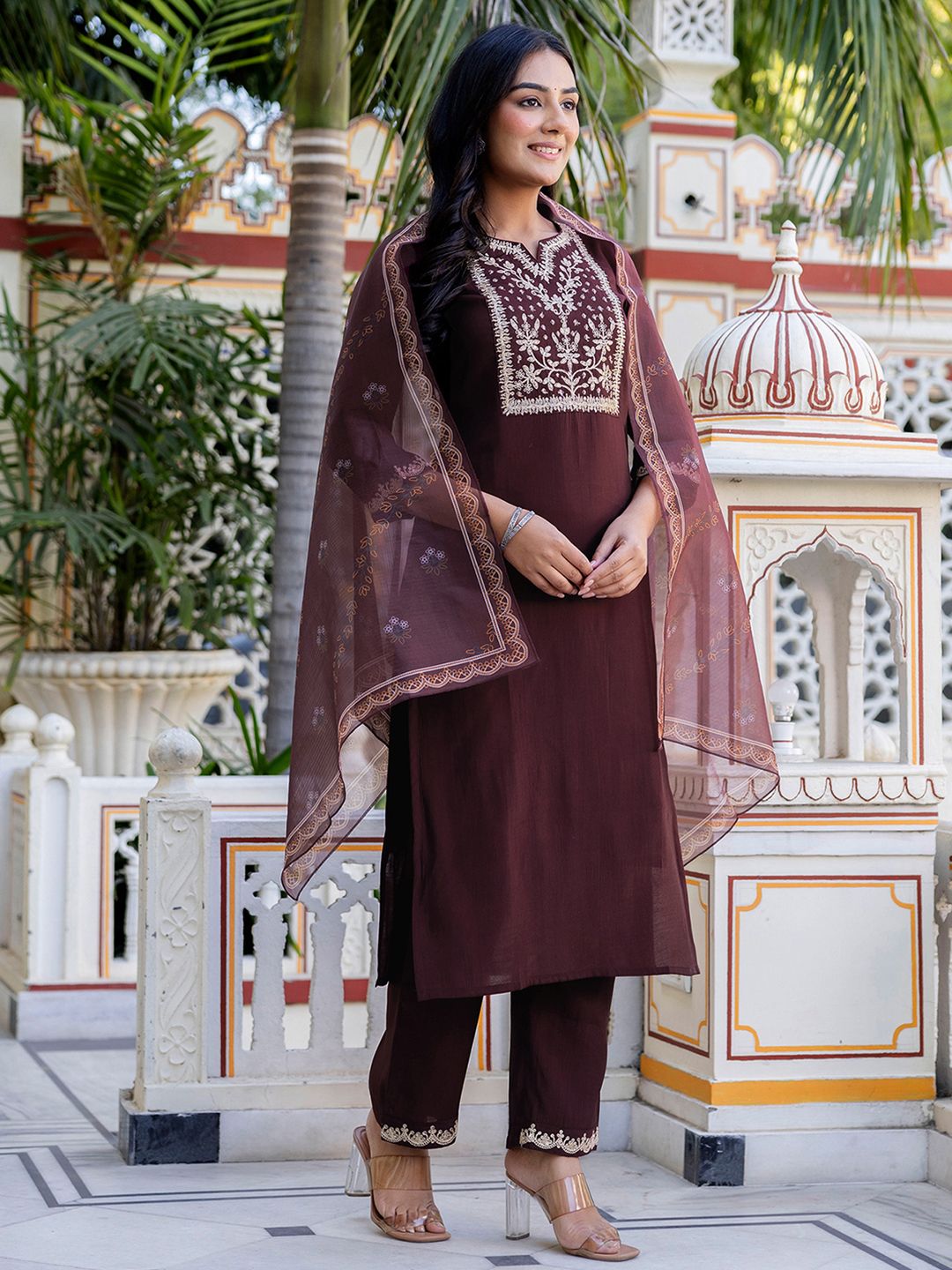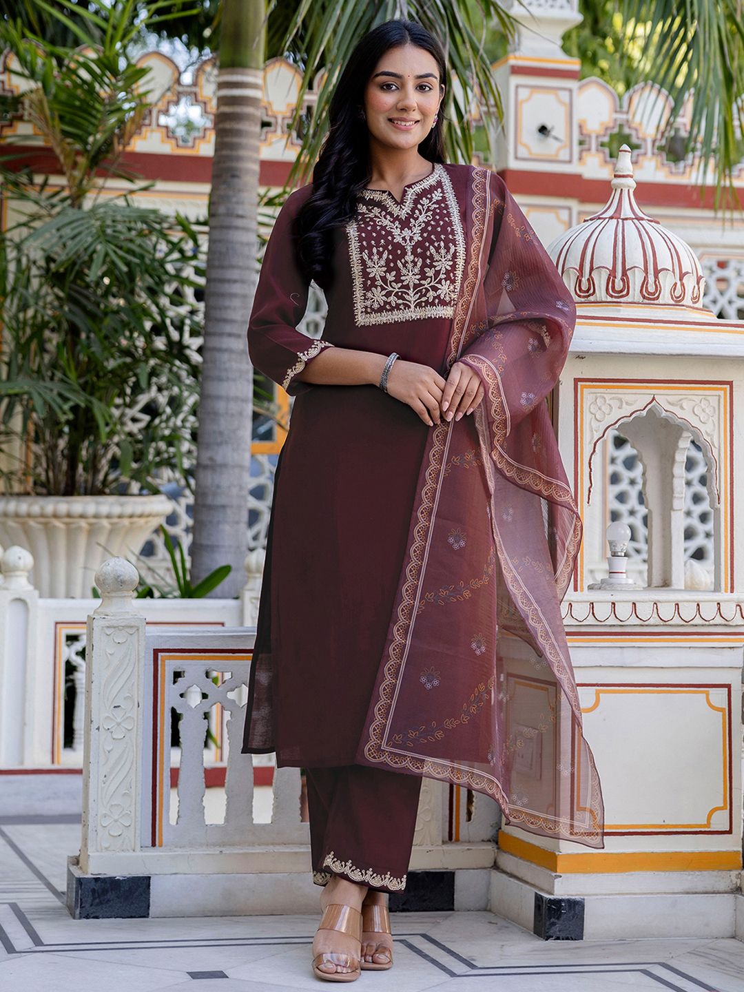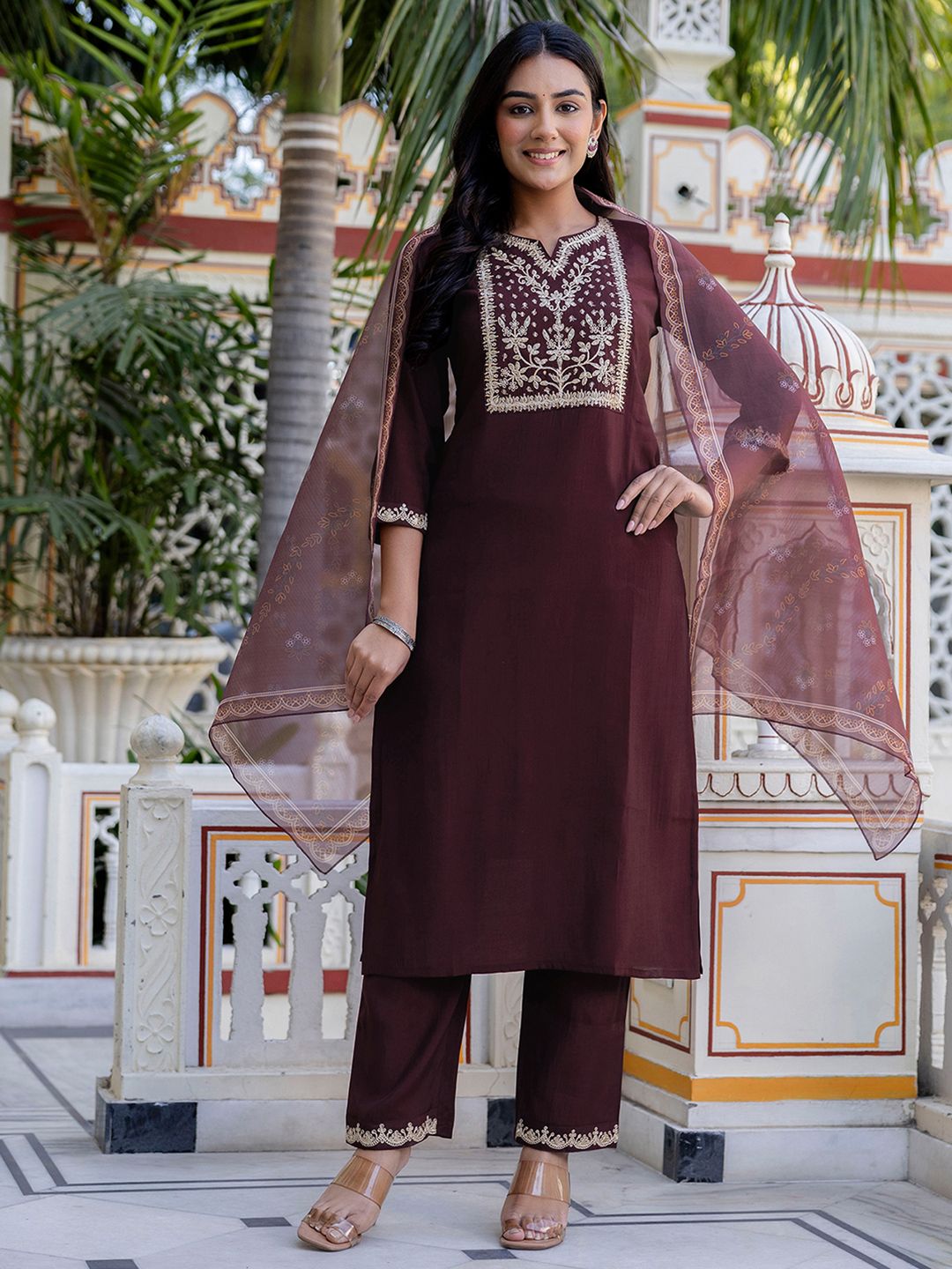 SKYLEE Women Floral Embroidered Kurta with Trousers & Dupatta