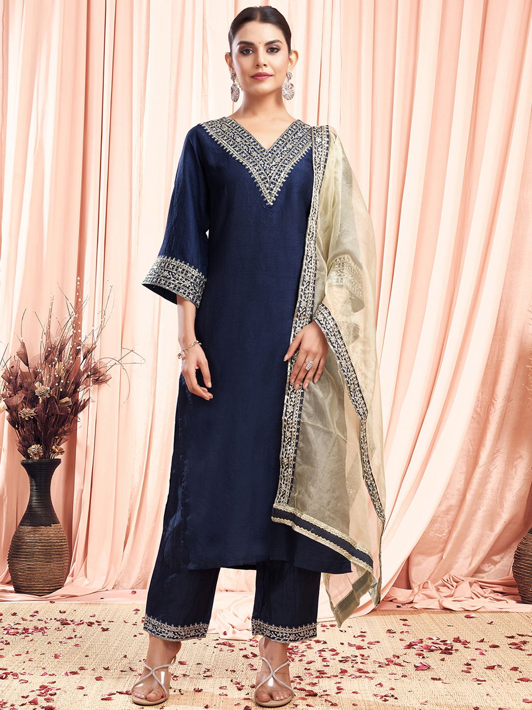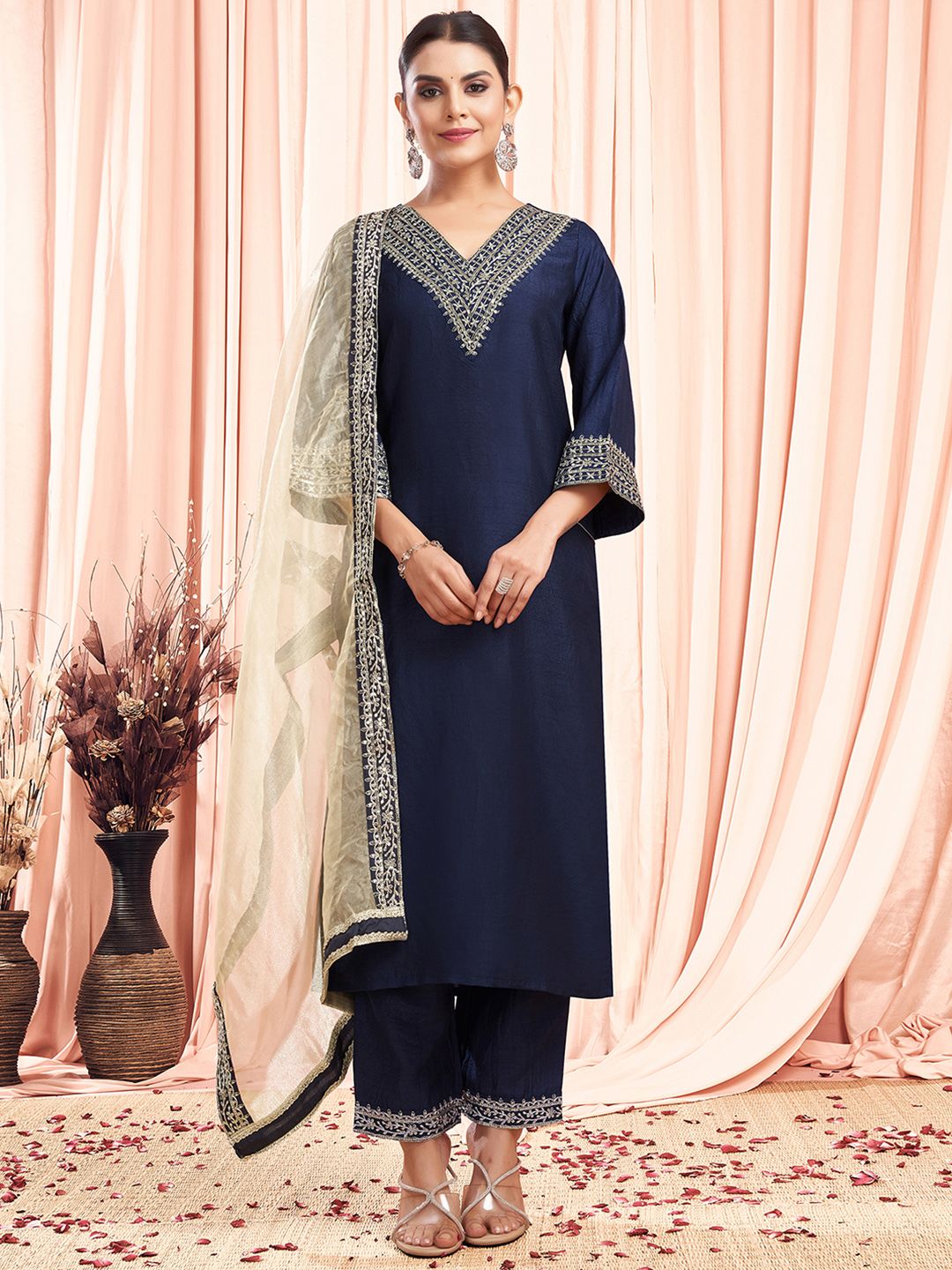 SKYLEE Women Floral Embroidered Kurta with Trousers & Dupatta