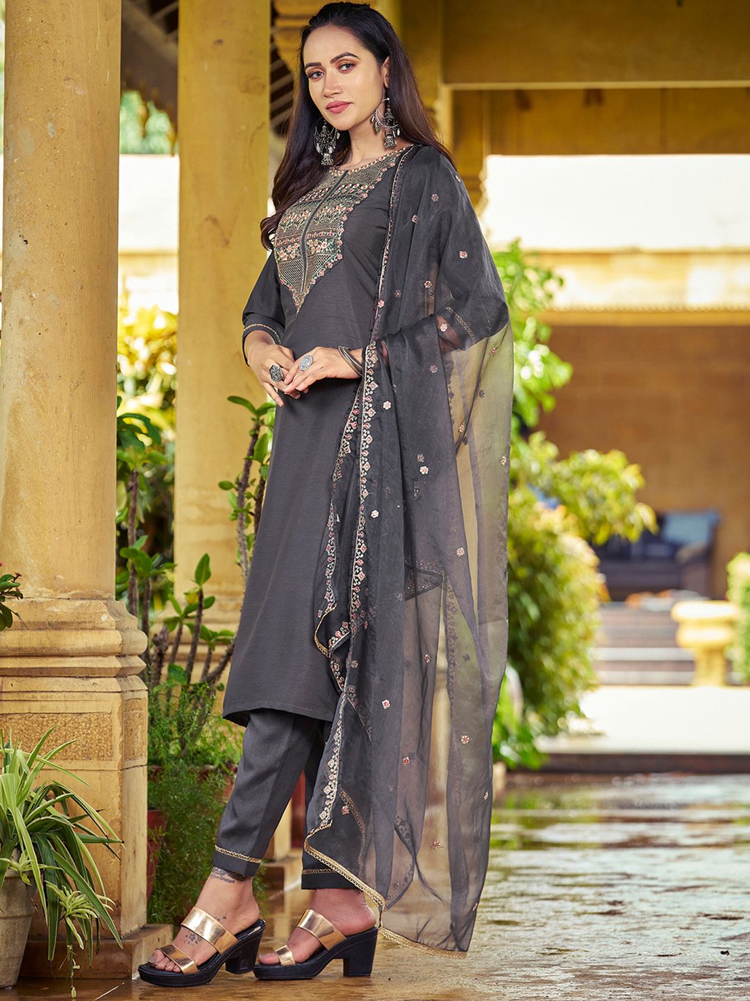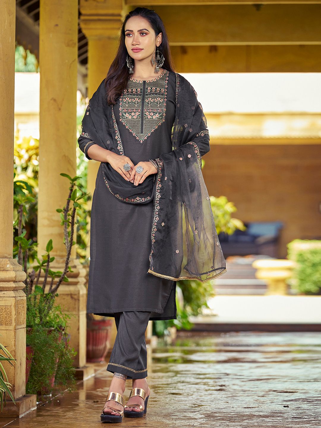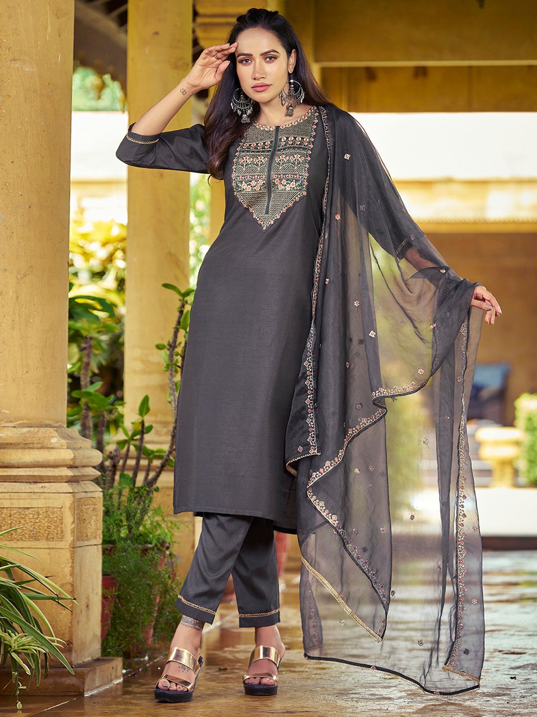 SKYLEE Women Floral Embroidered Kurta with Trousers & Dupatta