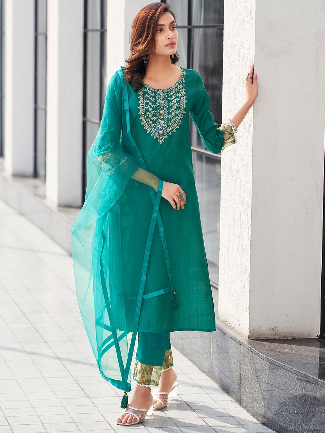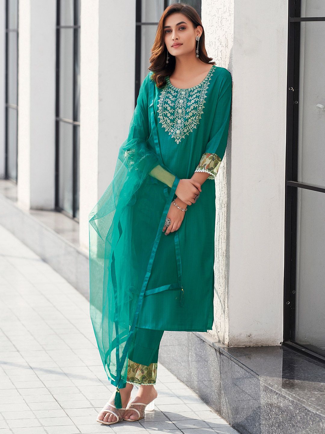 SKYLEE Women Floral Embroidered Kurta with Trousers & Dupatta