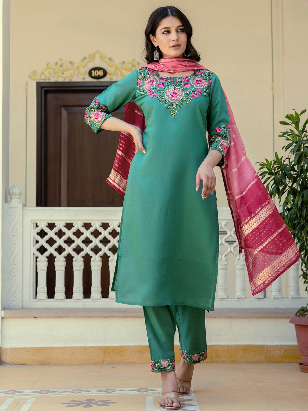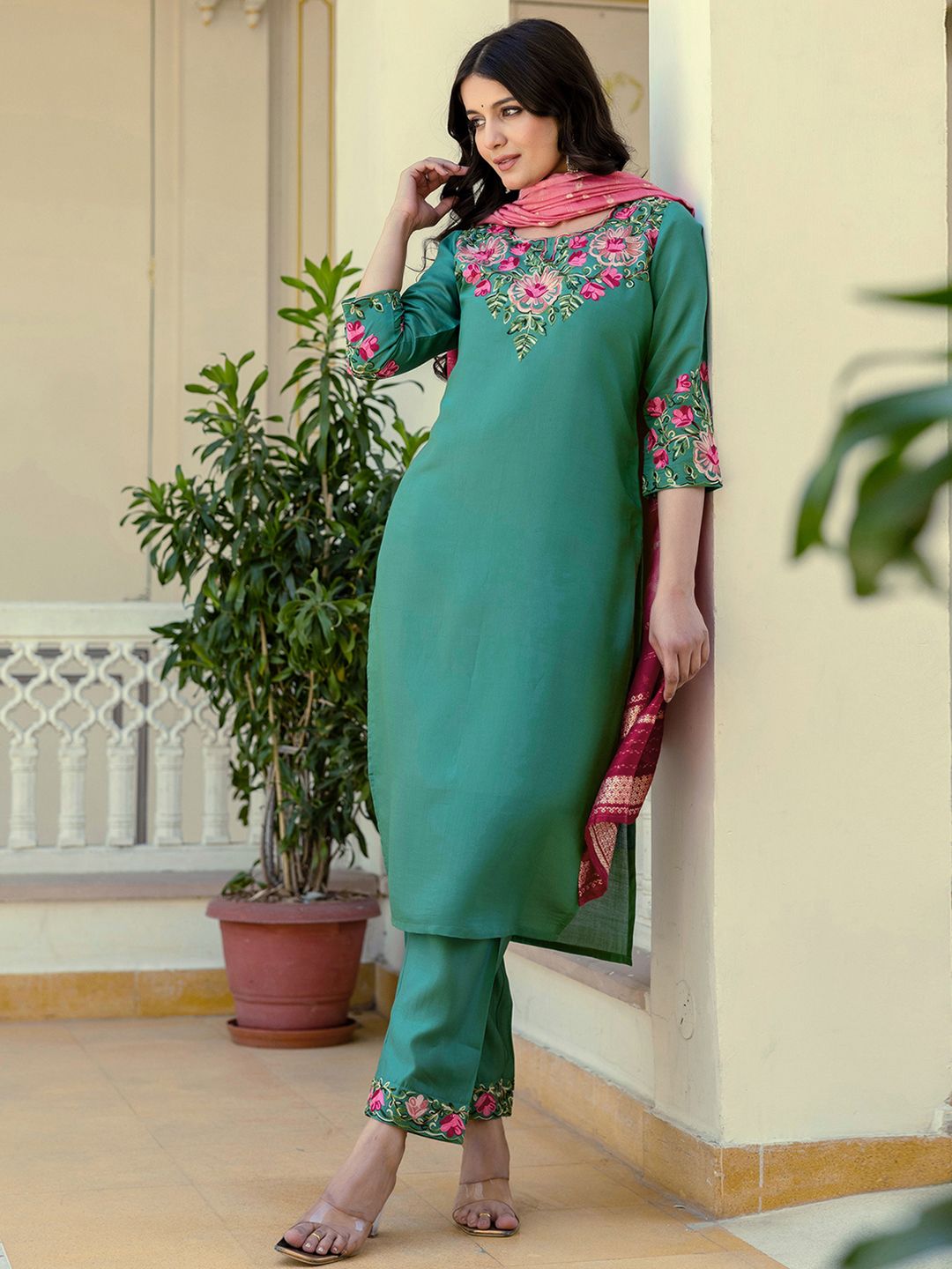 SKYLEE Women Floral Embroidered Kurta with Trousers & Dupatta