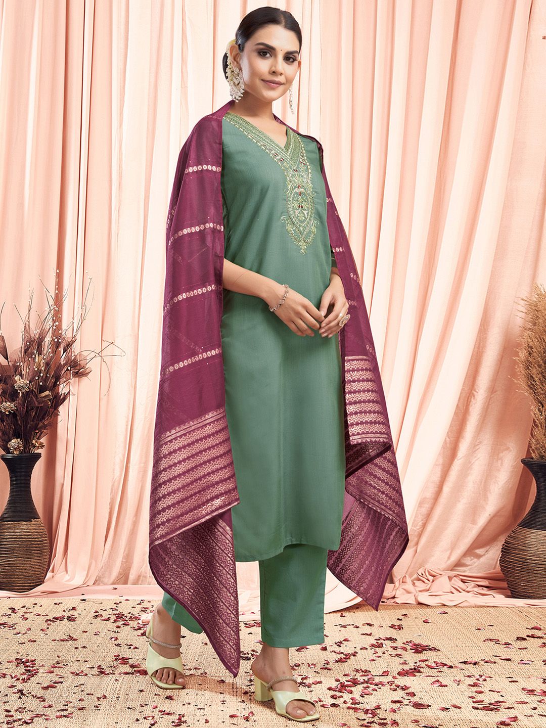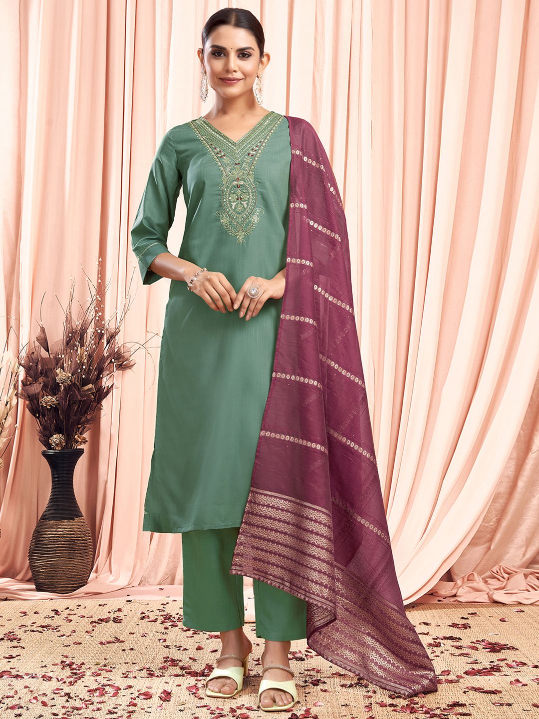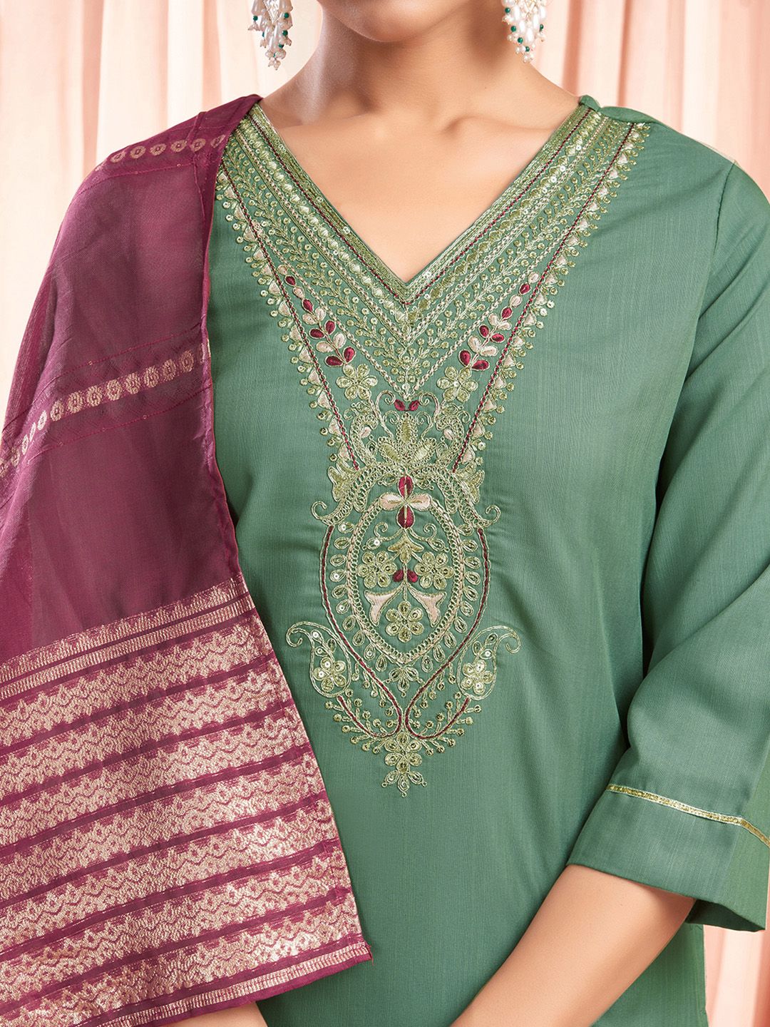 SKYLEE Women Floral Embroidered Kurta with Trousers & Dupatta