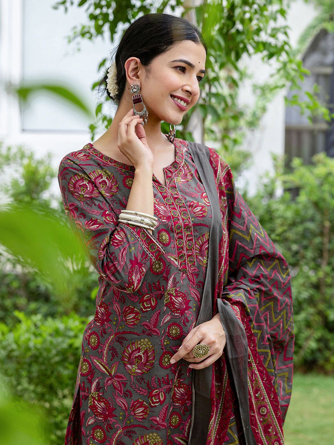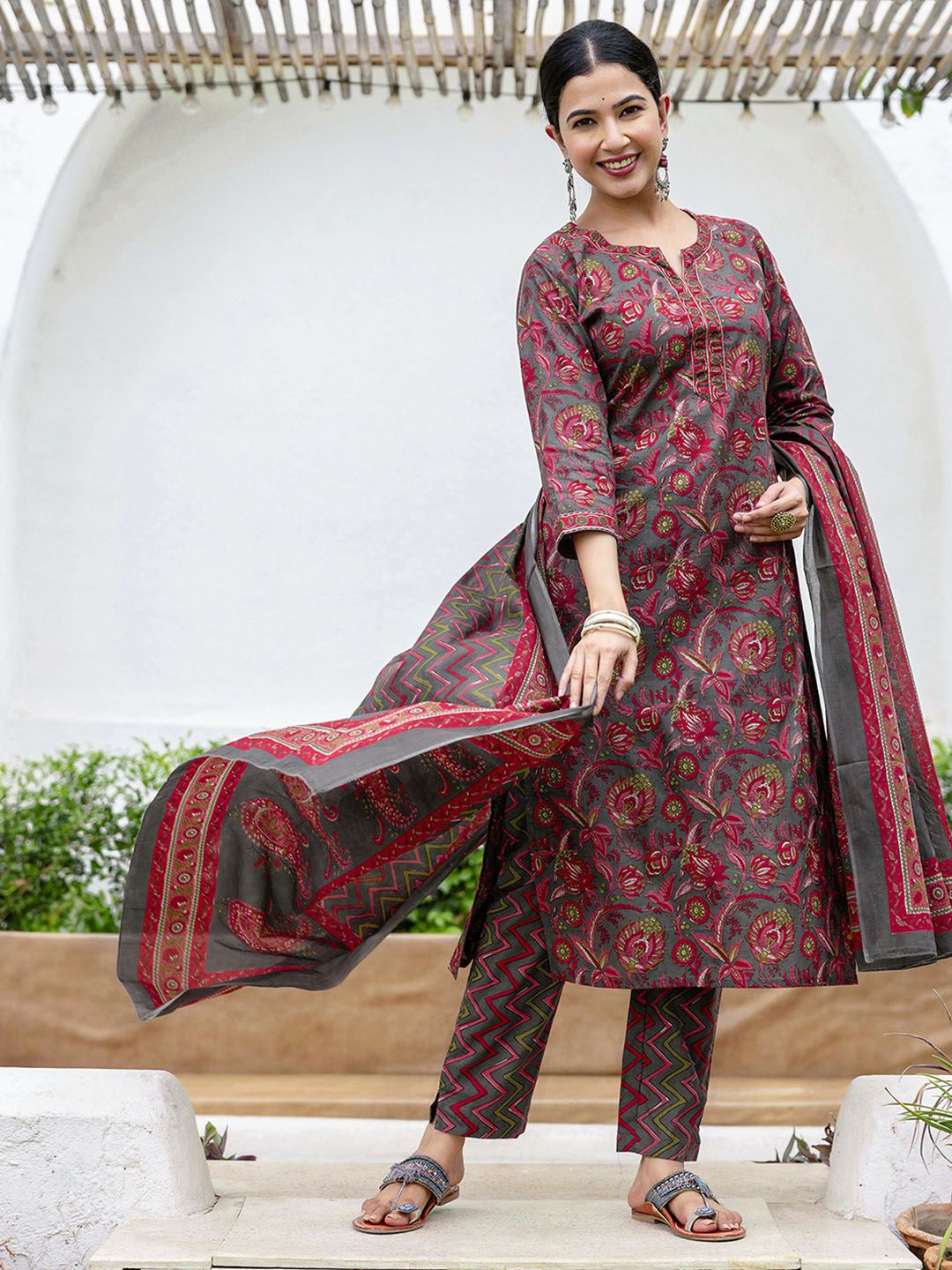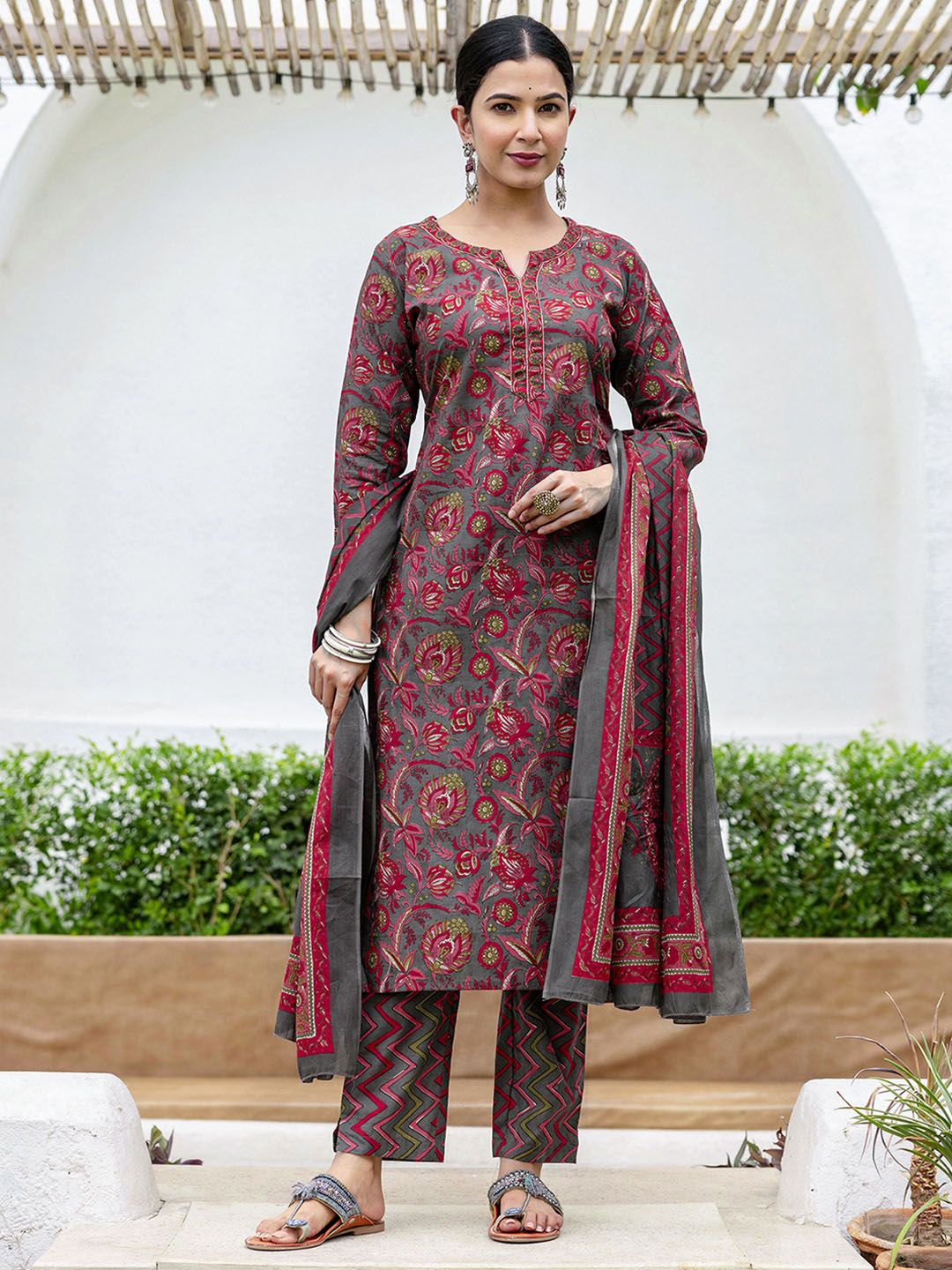 SKYLEE Women Floral Printed Kurta with Trousers & Dupatta