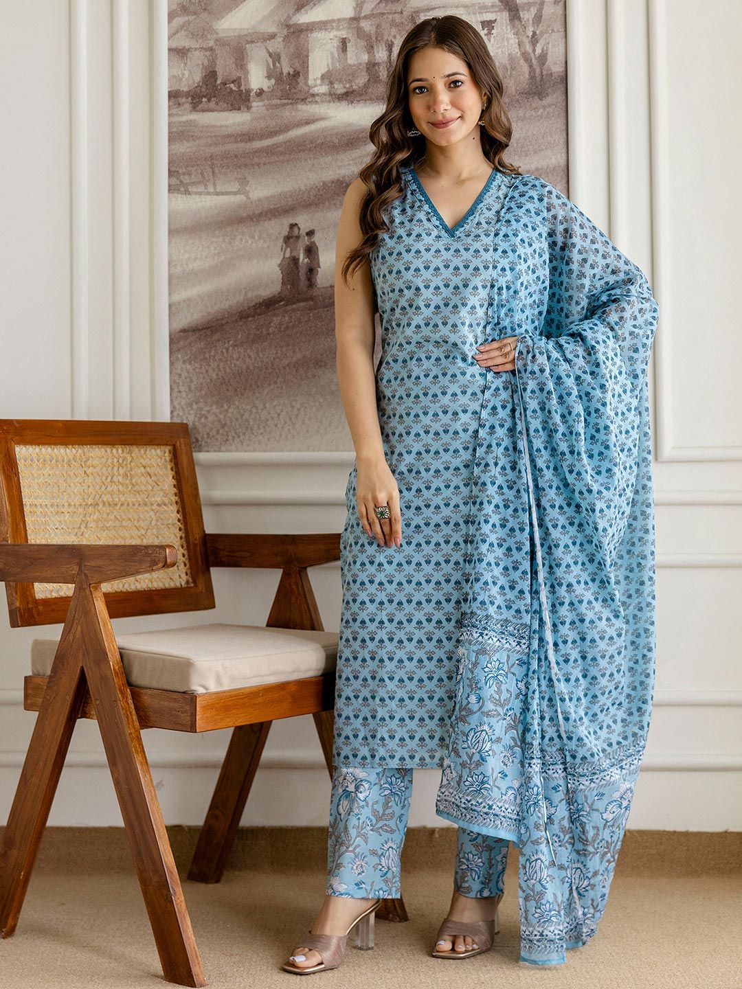SKYLEE Women Floral Printed Kurta with Trousers & Dupatta