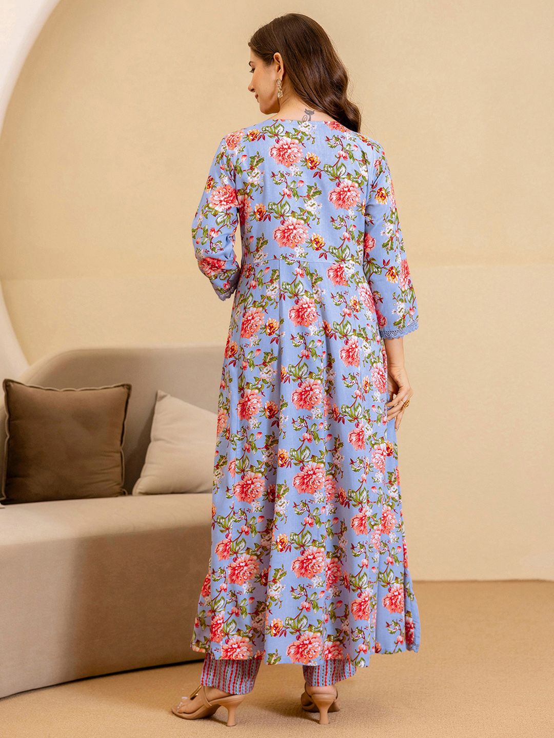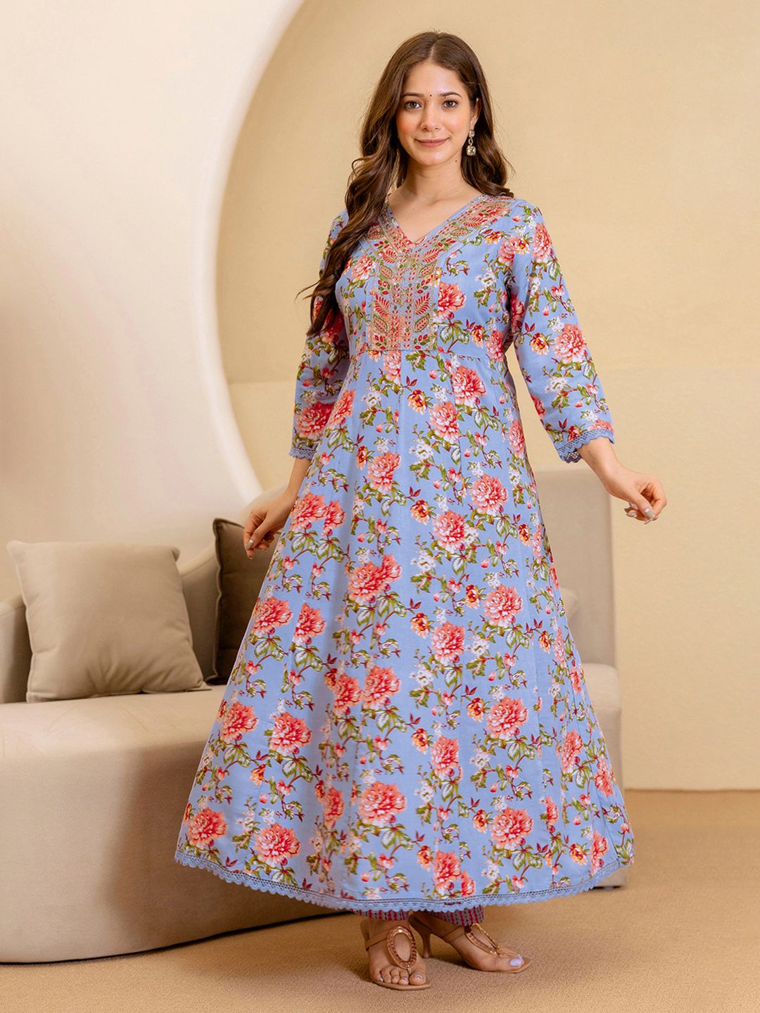 SKYLEE Women Floral Printed Regular Anarkali Kurta with Trousers & With Dupatta