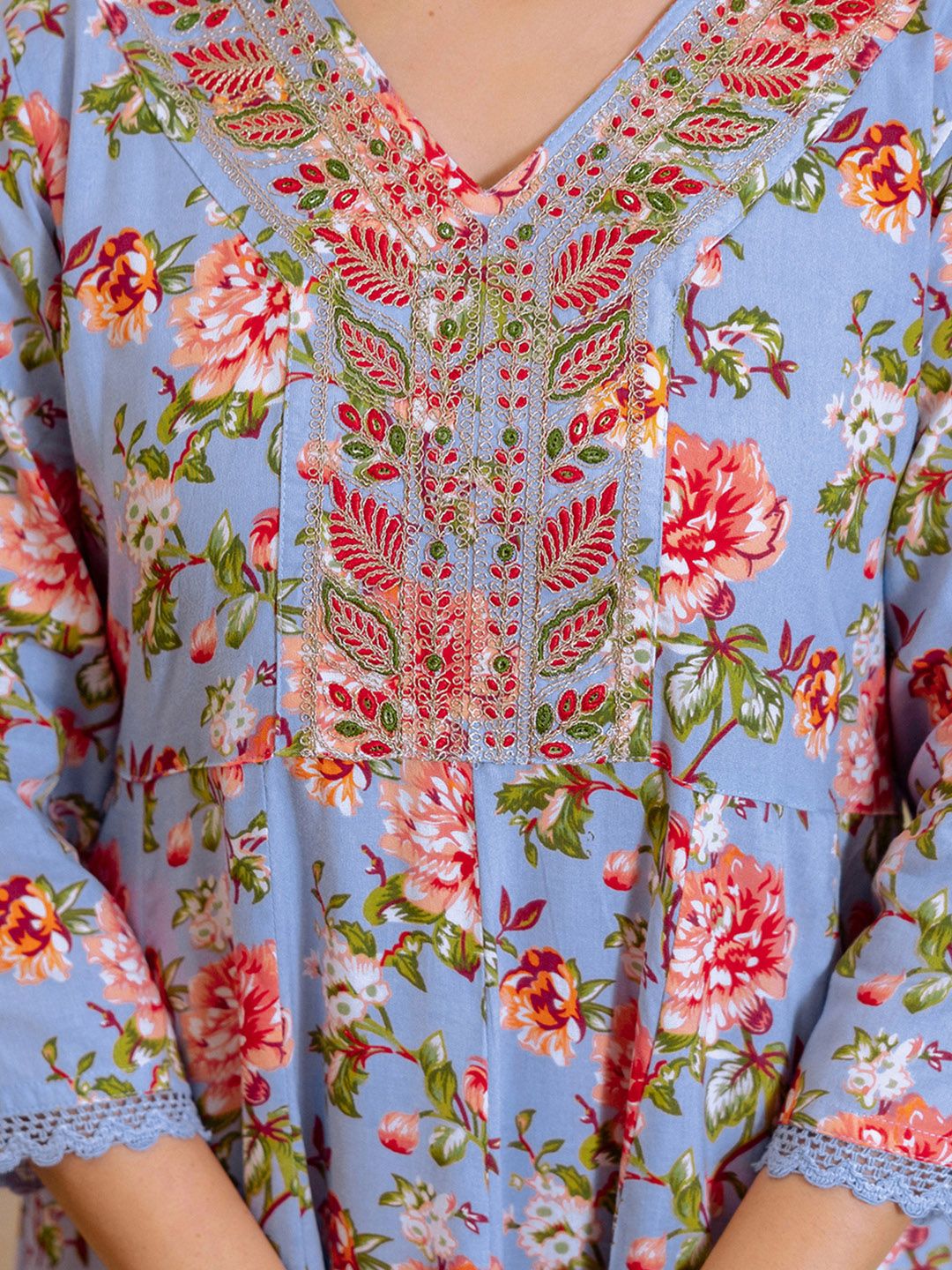 Buy this stylish SKYLEE Women Floral Printed Regular Anarkali Kurta with Trousers & With Dupatta at Marincart Nepal. This product offers great quality and value. Perfect for those looking for the latest trends in fashion. Get yours now at unbeatable prices.