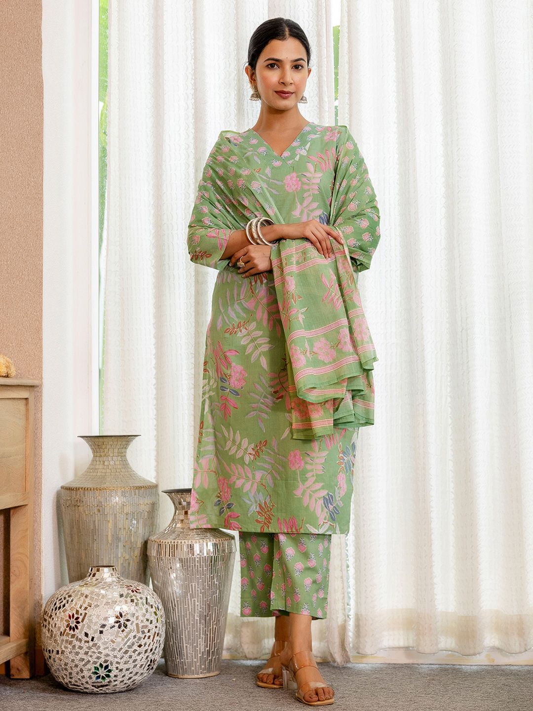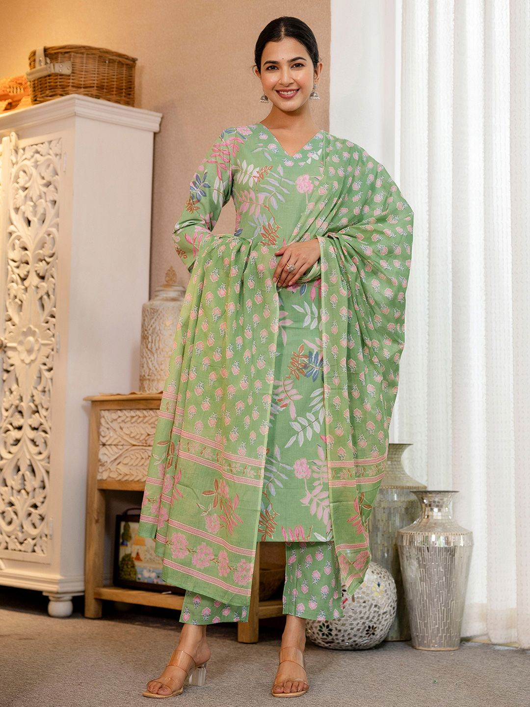 SKYLEE Women Floral Printed Regular Kurta & Trousers With Dupatta