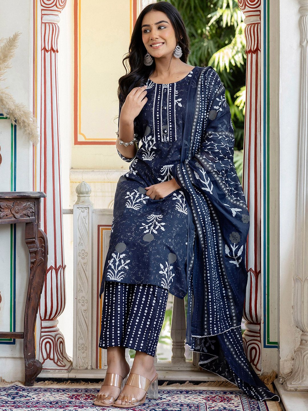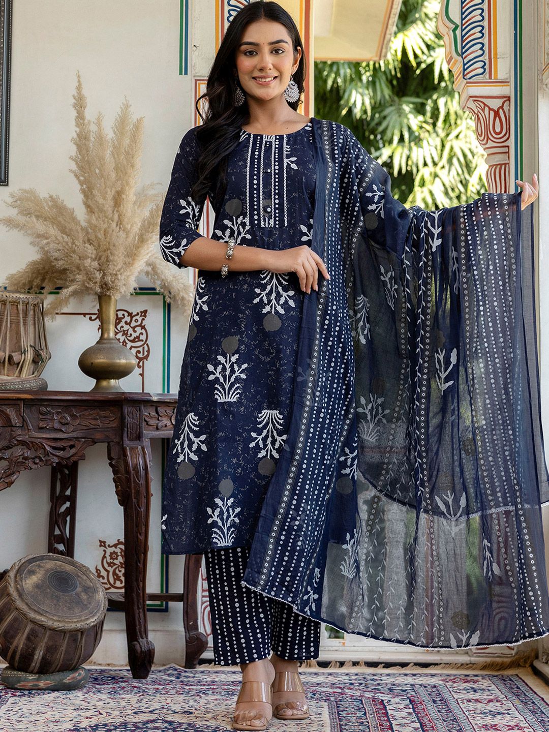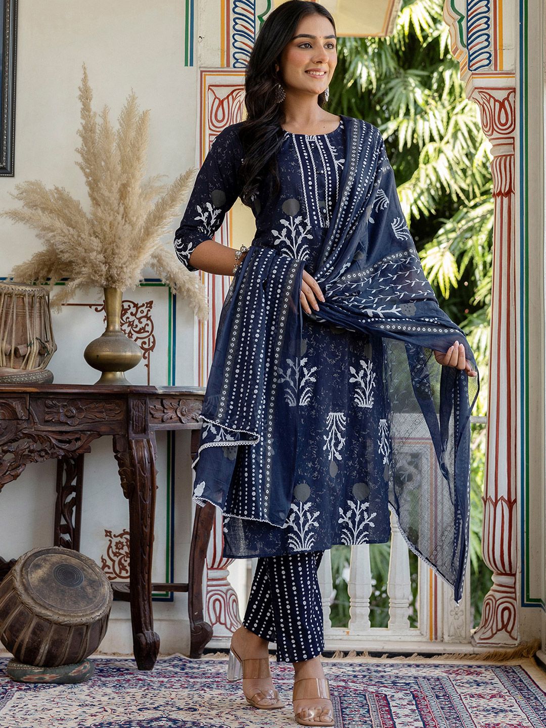 SKYLEE Women Floral Printed Regular Kurta with Trousers & With Dupatta