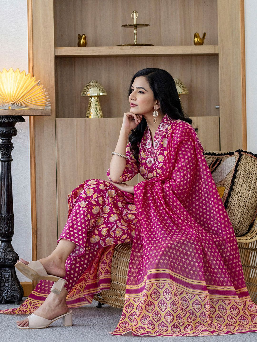 Buy this stylish SKYLEE Women Floral Printed Regular Sequinned Kurta with Trousers & With Dupatta at Marincart Nepal. This product offers great quality and value. Perfect for those looking for the latest trends in fashion. Get yours now at unbeatable prices.
