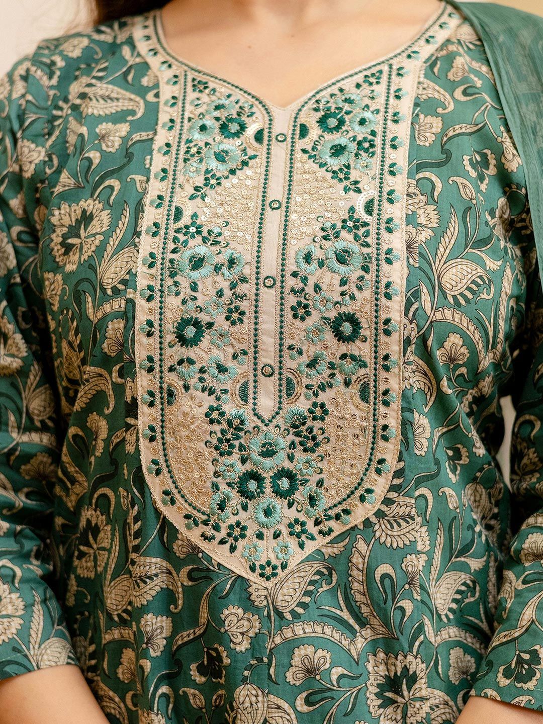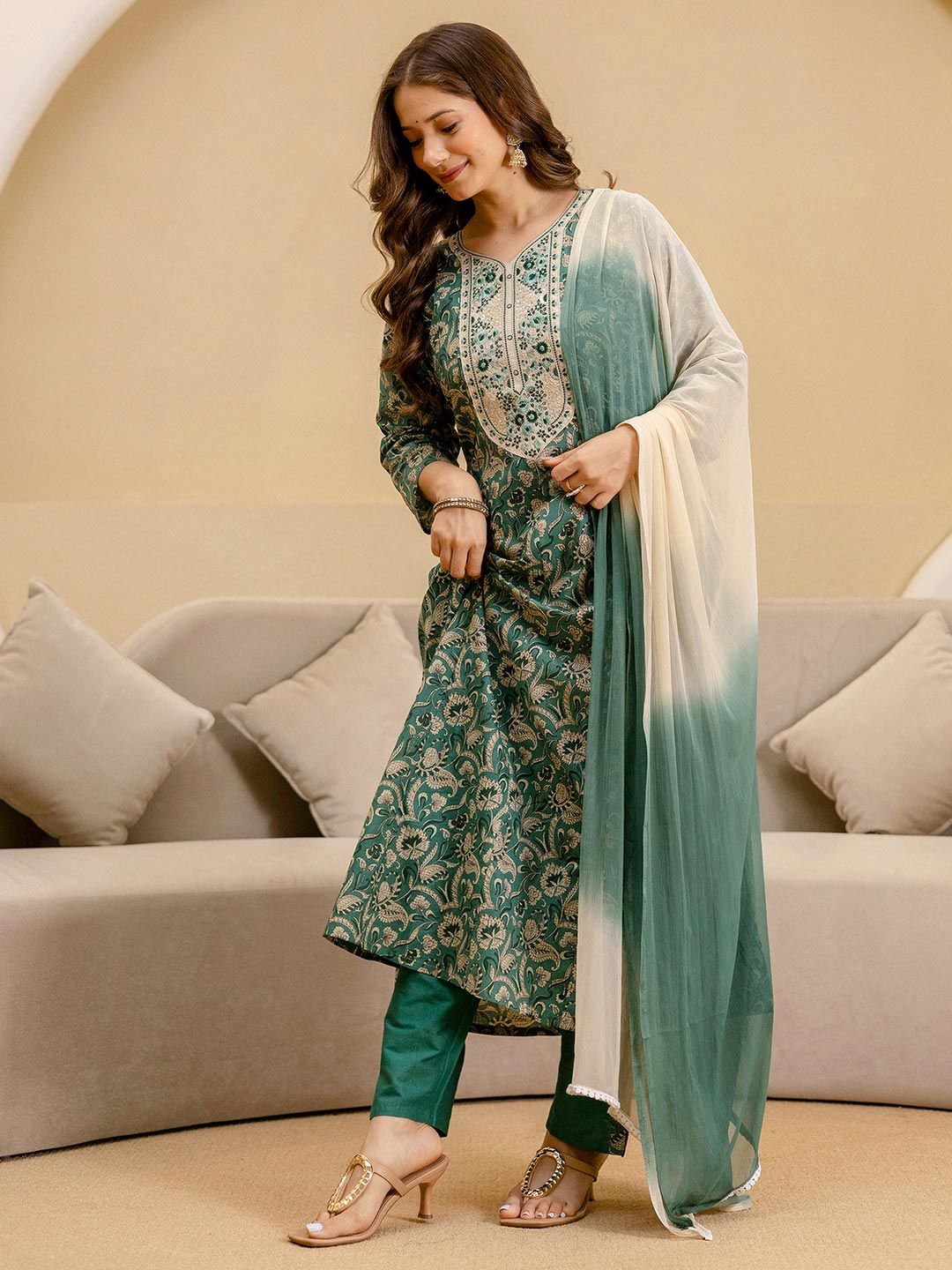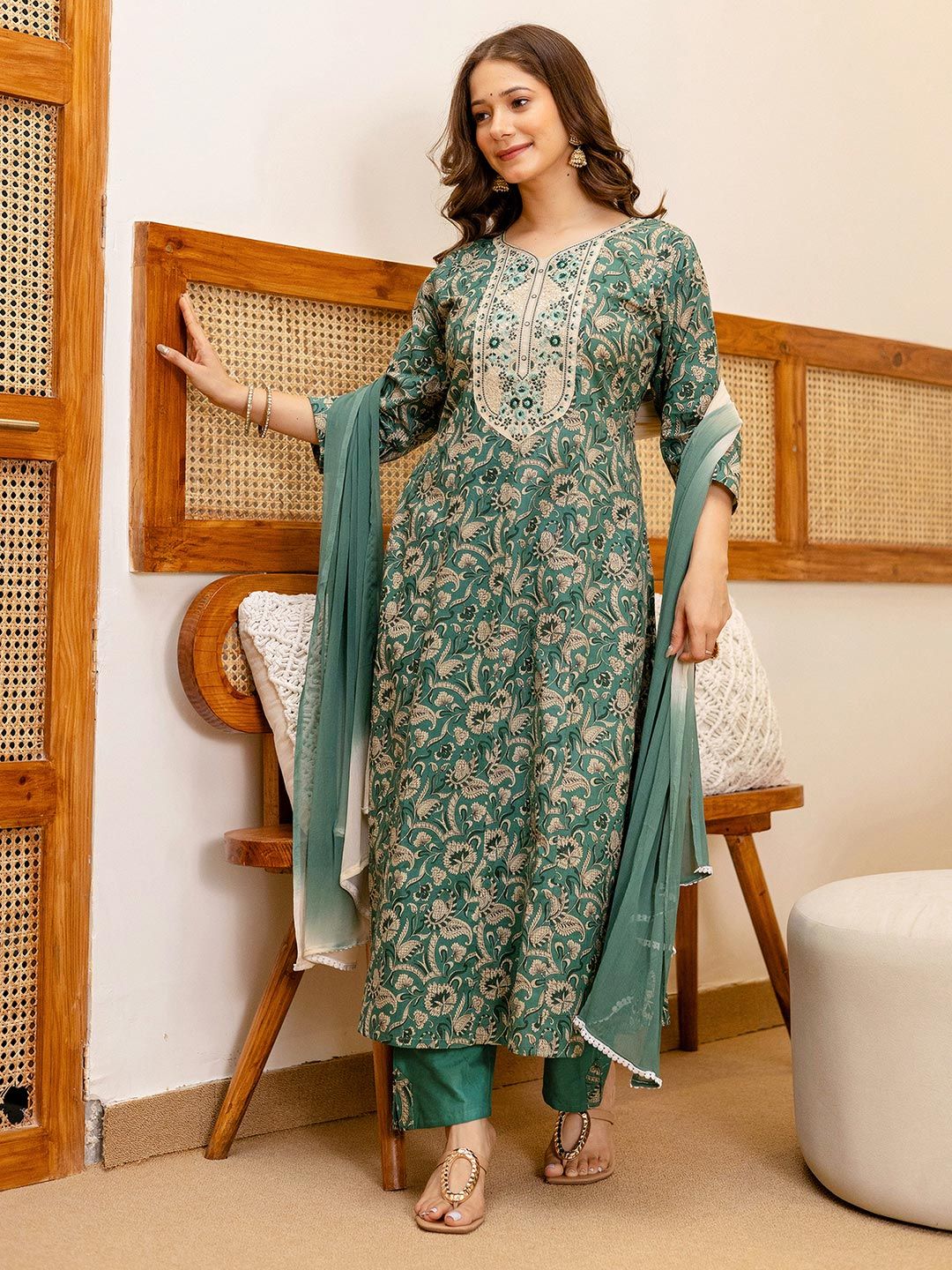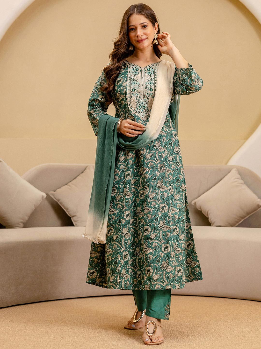 SKYLEE Women Floral Printed Regular Sequinned Kurta with Trousers & With Dupatta