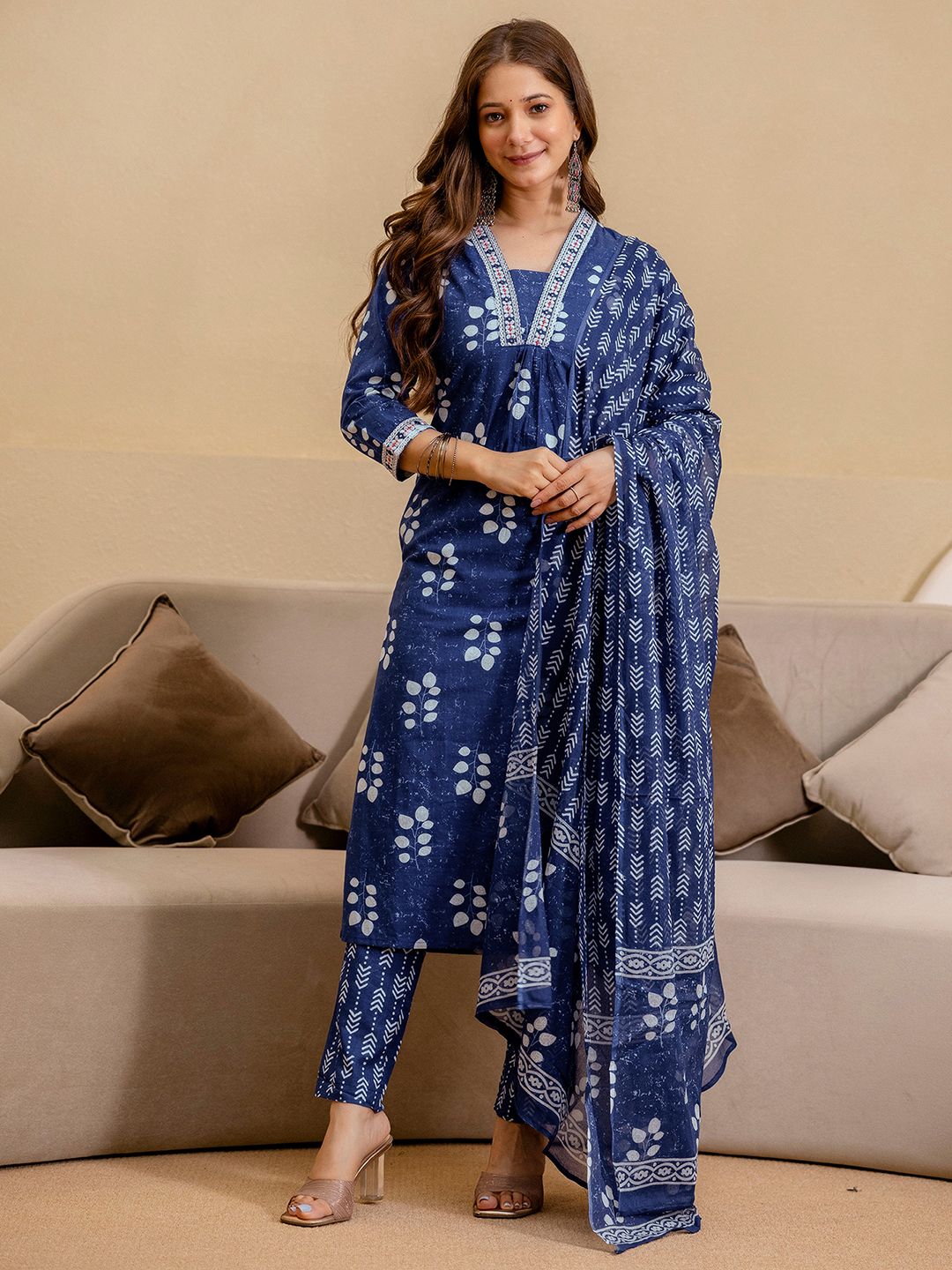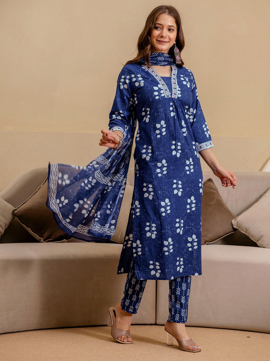 SKYLEE Women Floral Printed Sequinned Kurta with Trousers & Dupatta