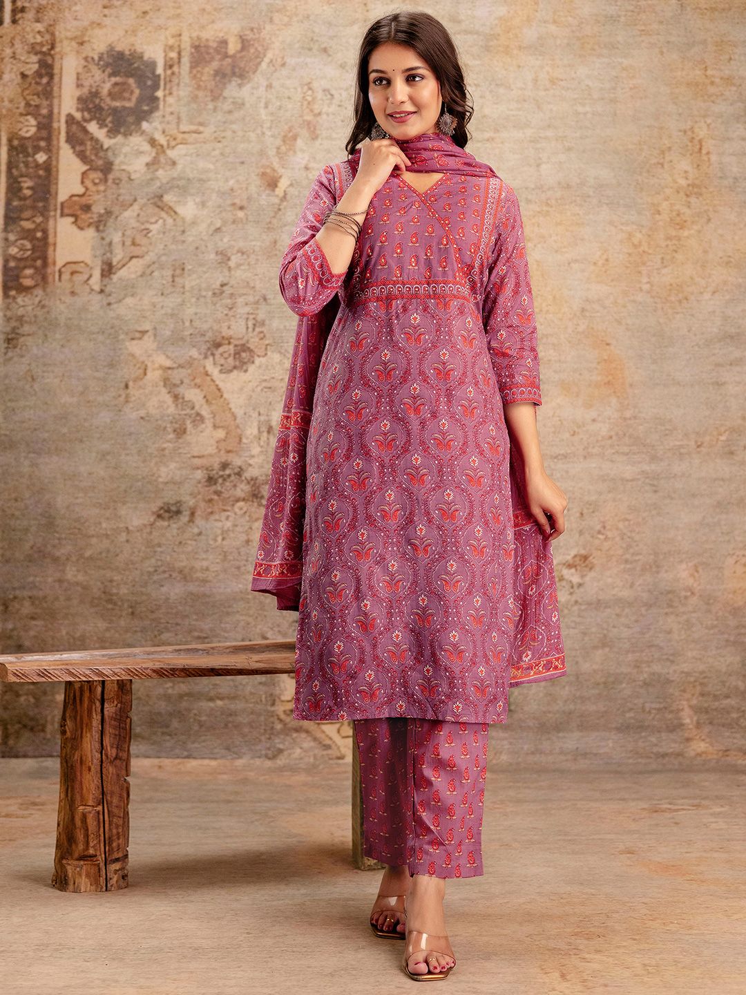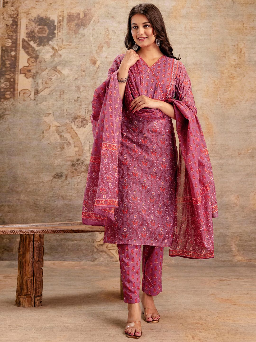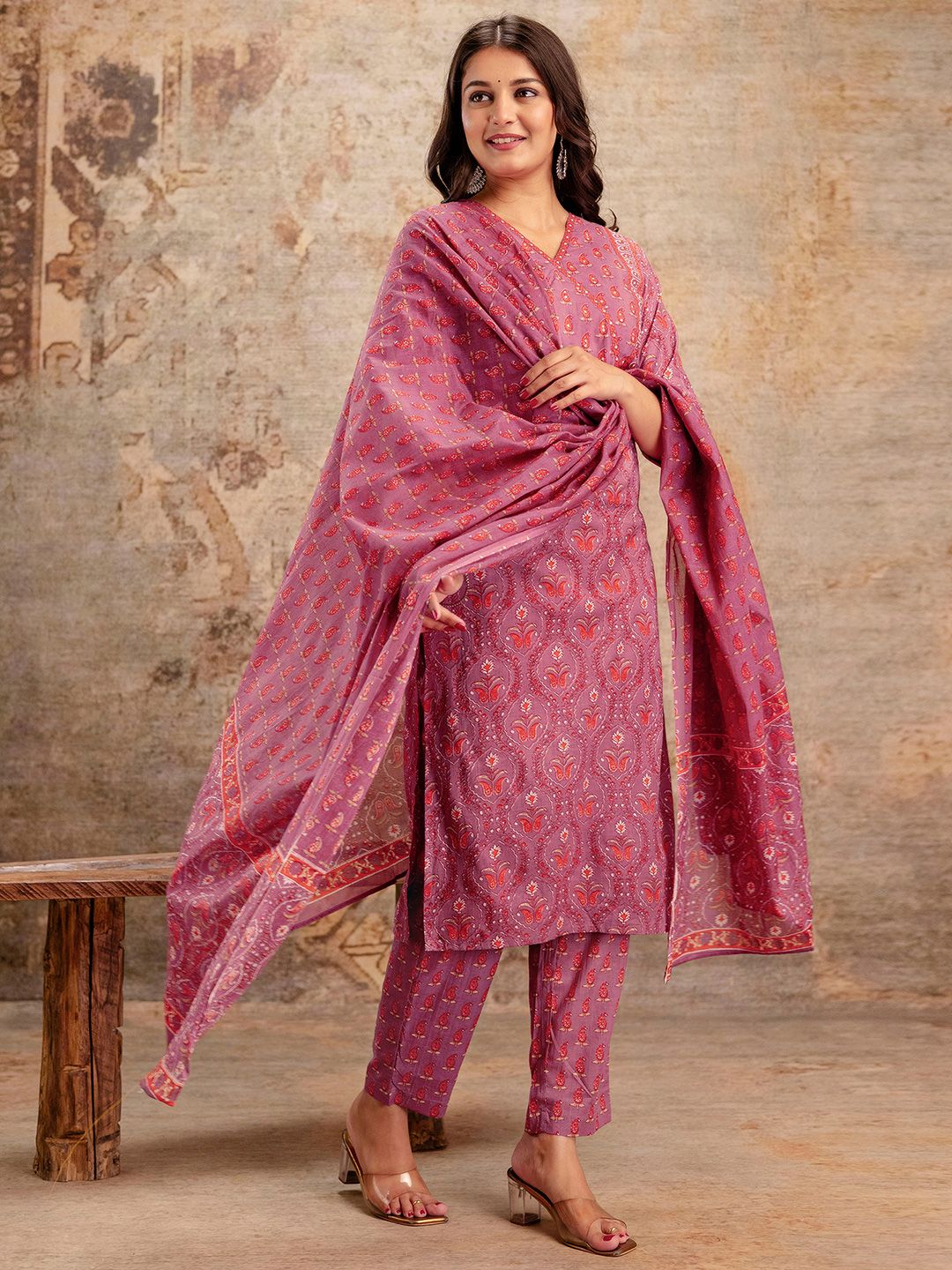SKYLEE Women Paisley Printed Straight Kurta with Trousers & Dupatta