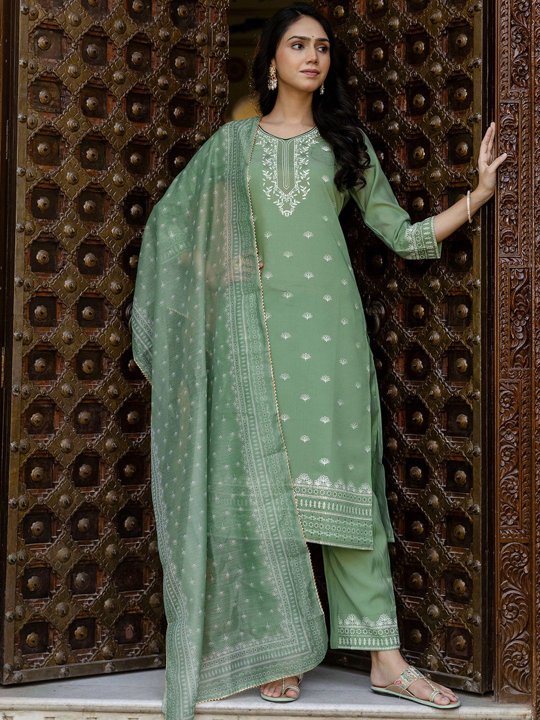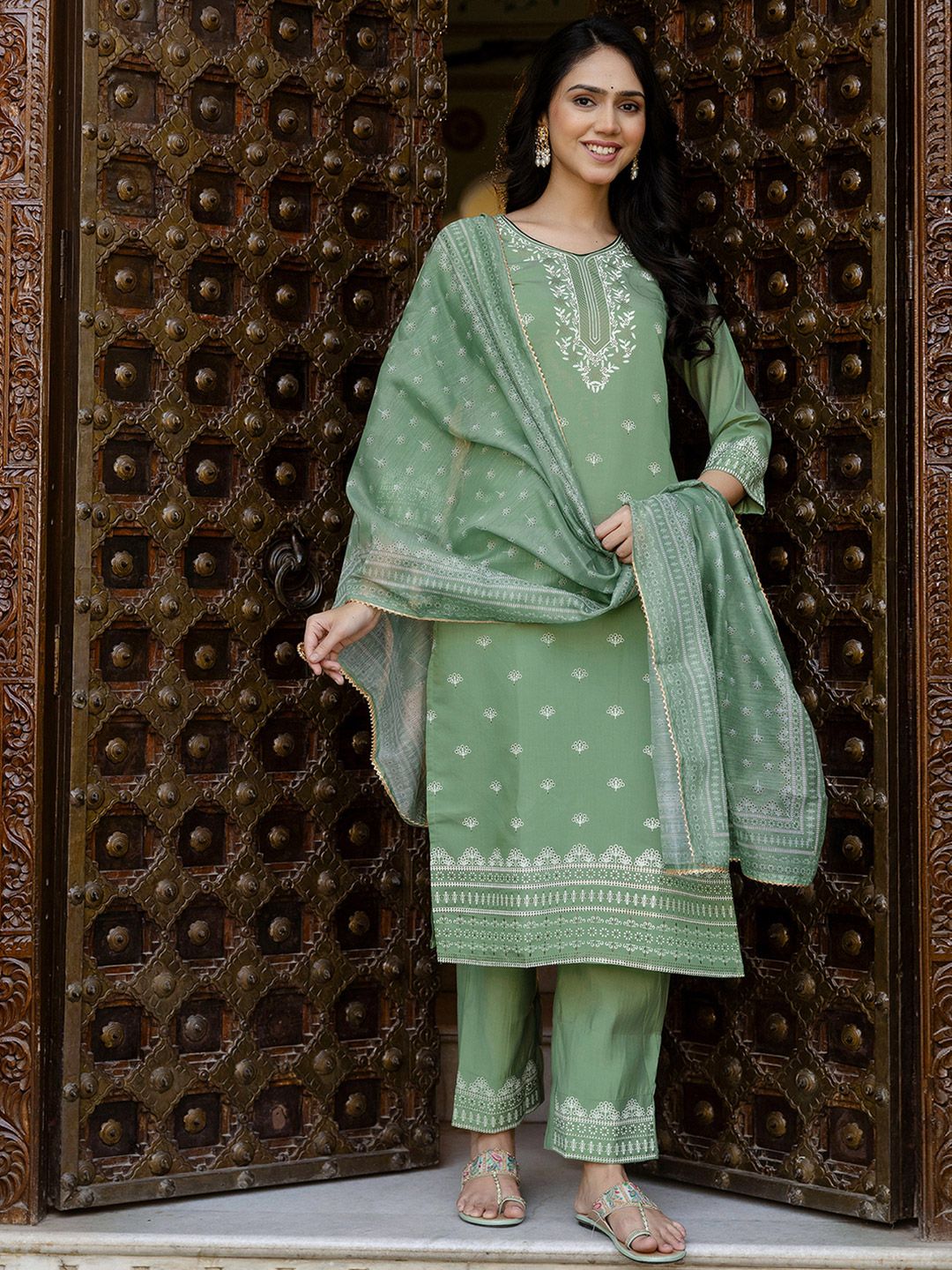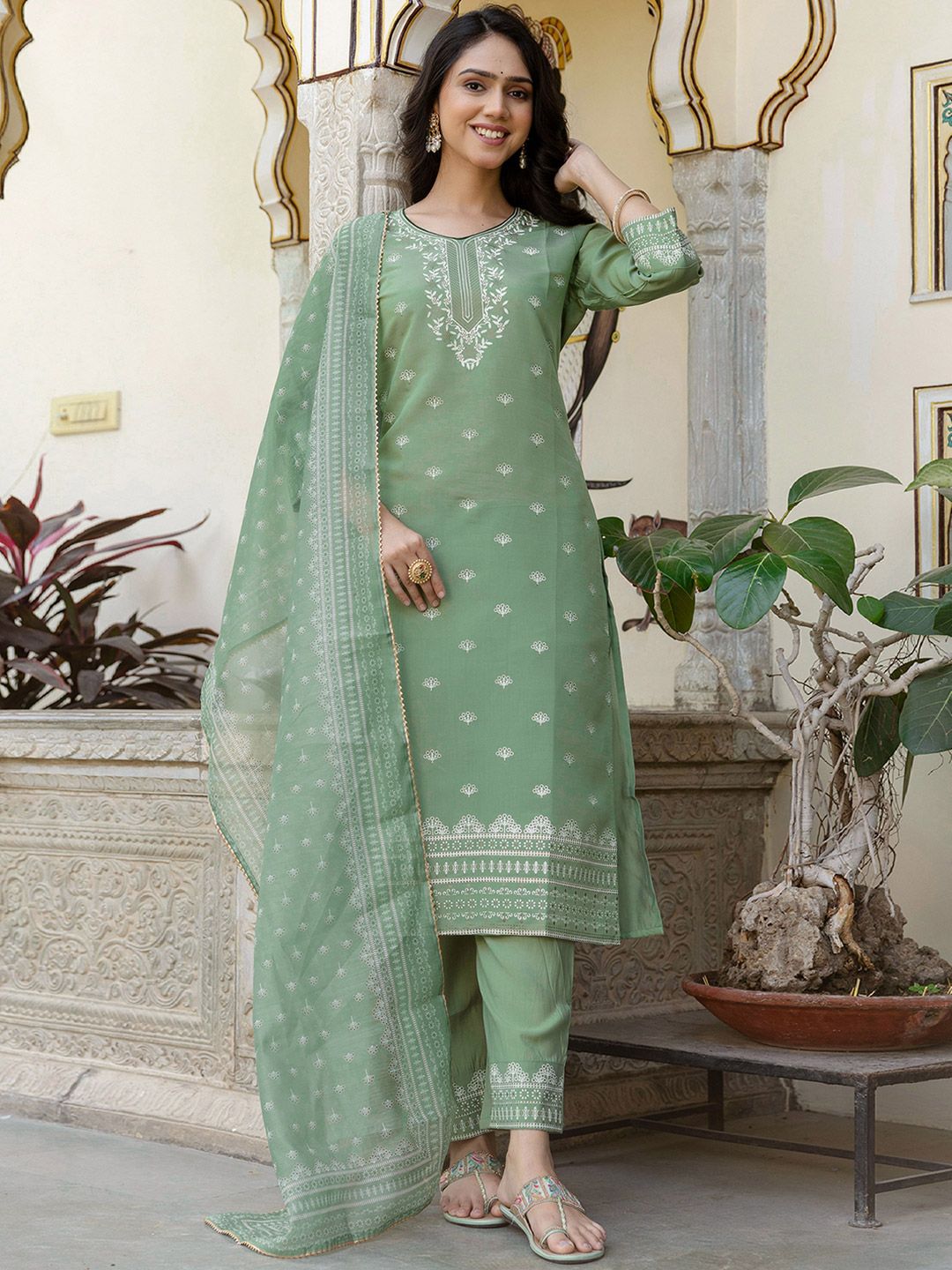 SKYLEE Women Printed Regular Kurta with Trousers & Dupatta