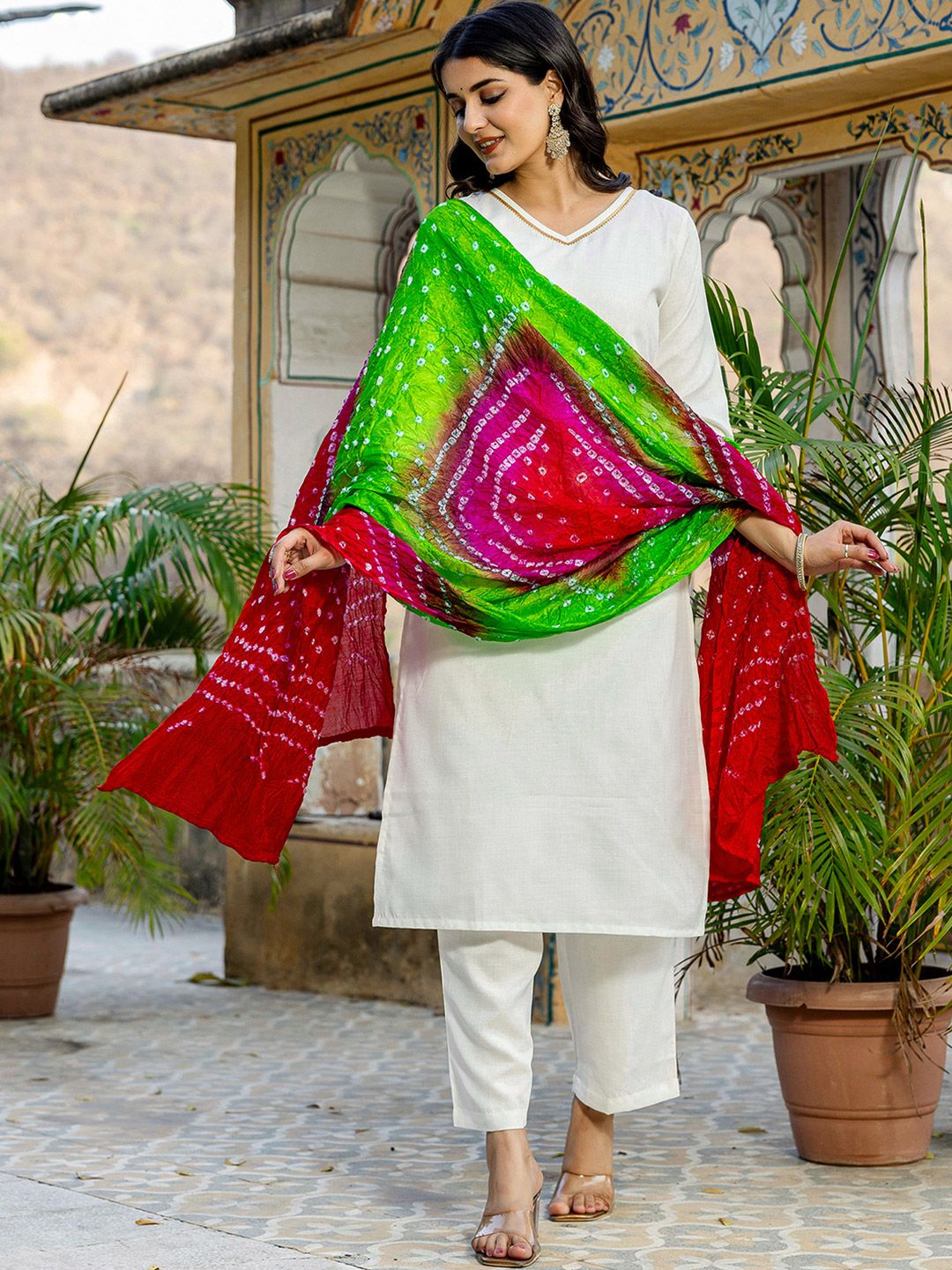 SKYLEE Women Solid Kurta with Trousers & Dupatta