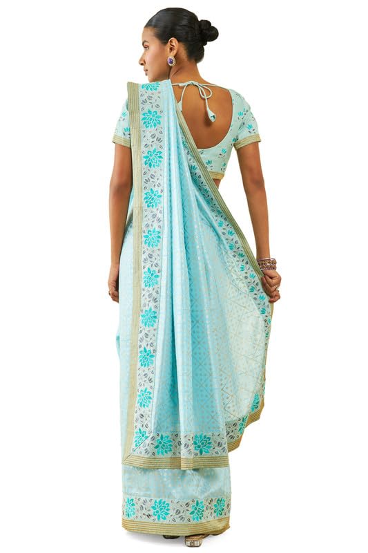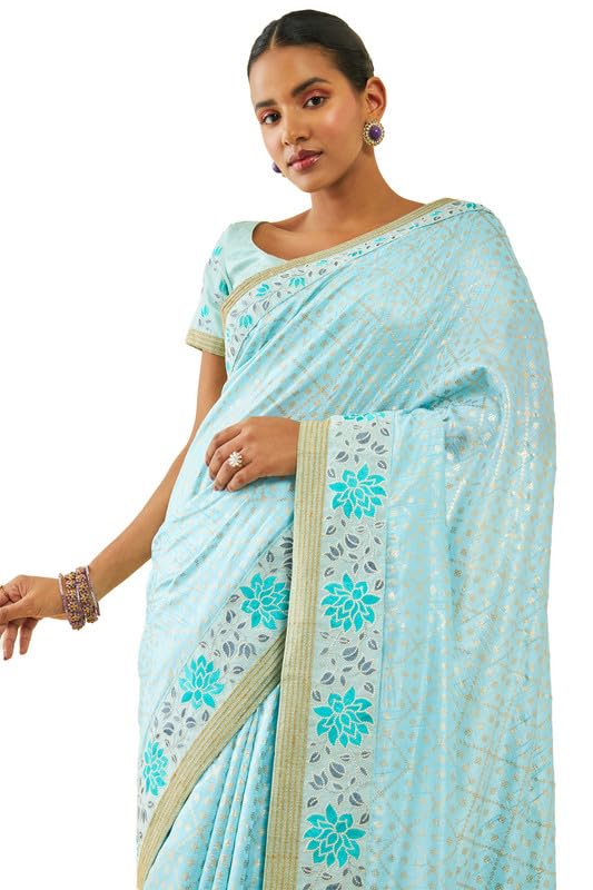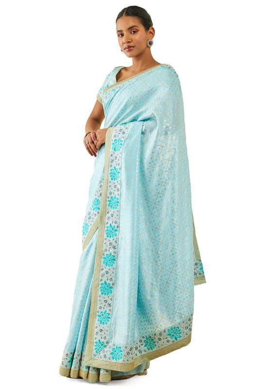 Soch Women Cotton Powder Tussar Geometric Saree With Zari