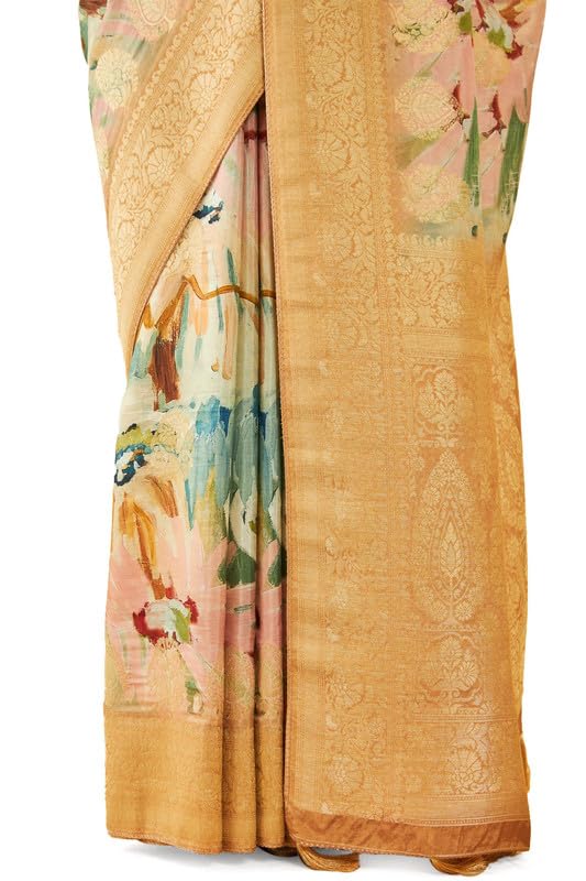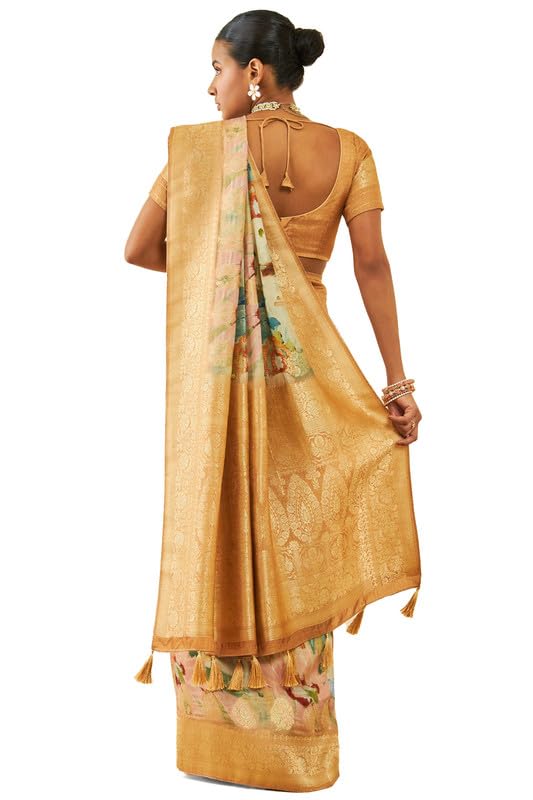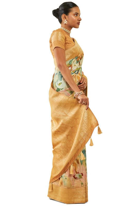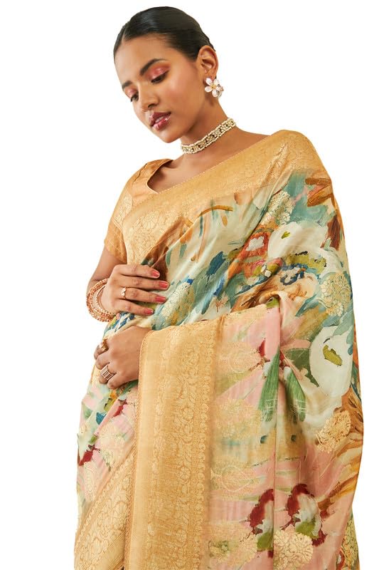 Soch Womens Gold Tussar Floral Print Saree With Zari Woven