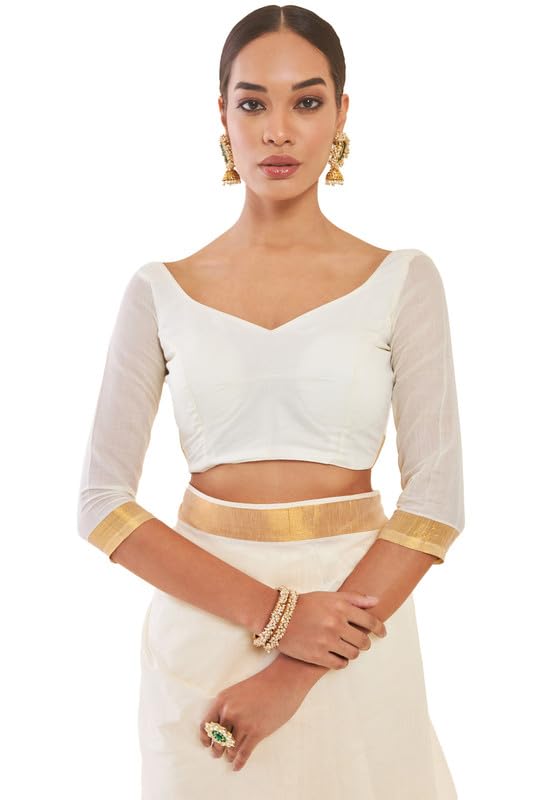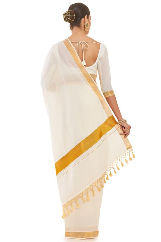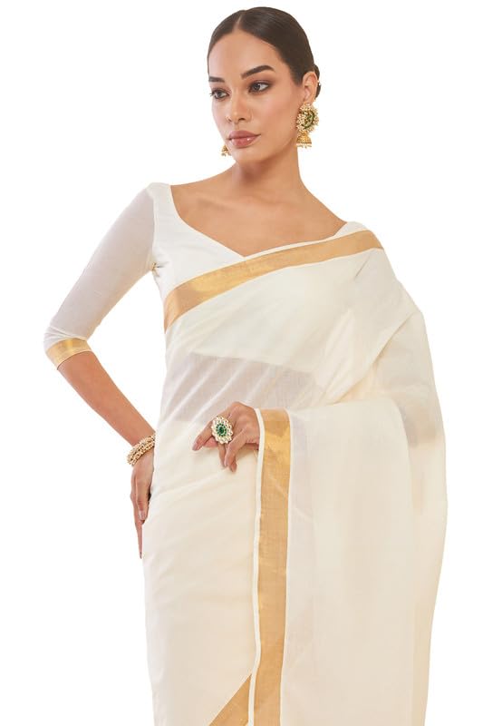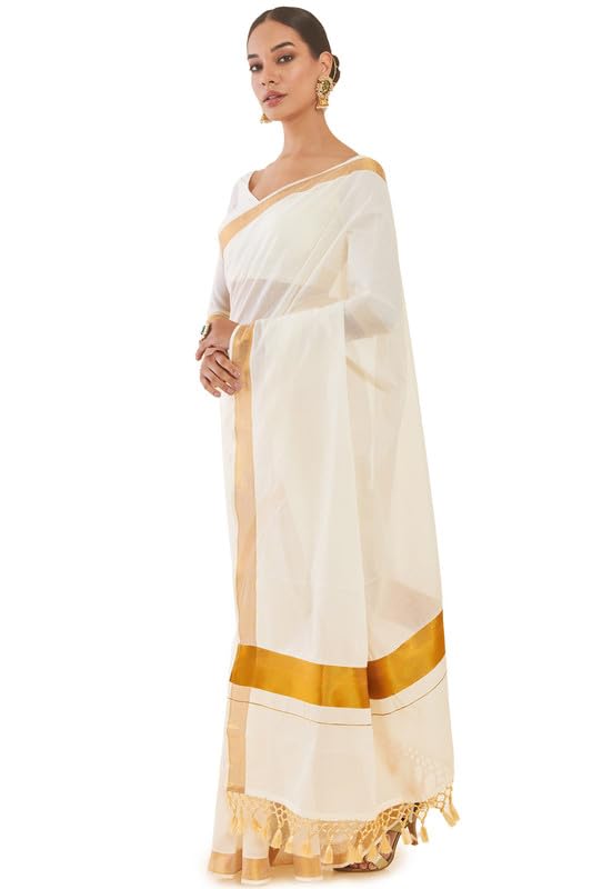 Soch Womens Off White Cotton Kasavu Saree with Zari Borders