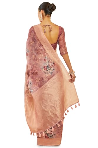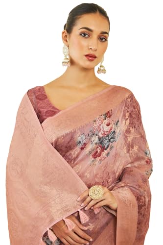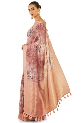 Soch Womens Onion Pink Tussar Silk Saree With Floral Print And Zari Woven Designs
