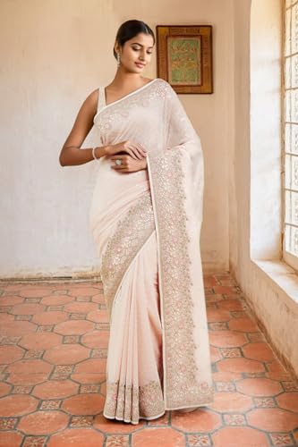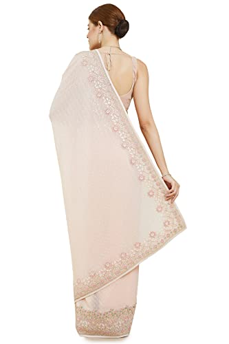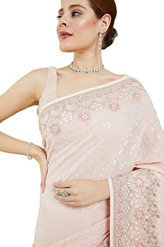Soch Womens Peach Georgette Saree With Floral Embroidery And Sequins