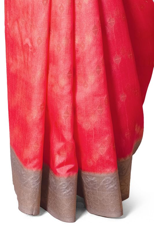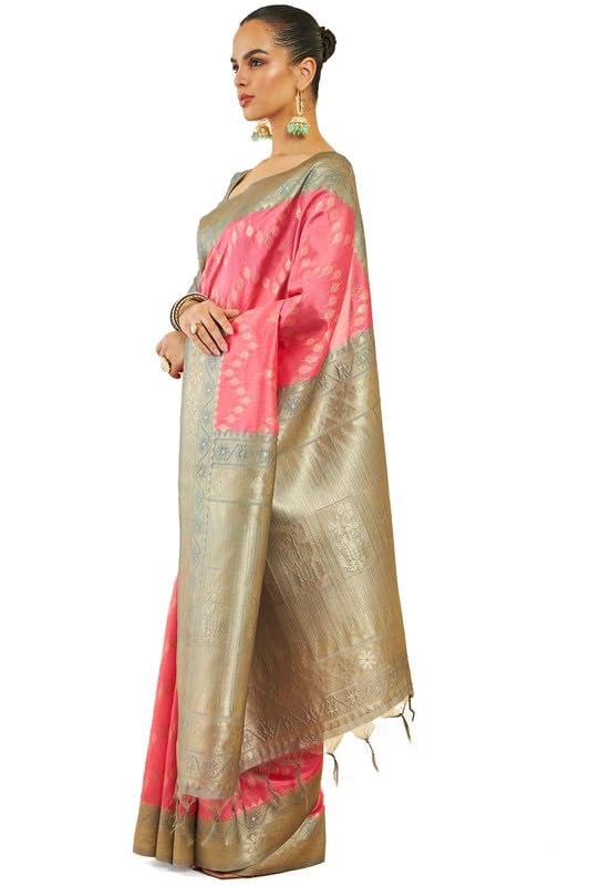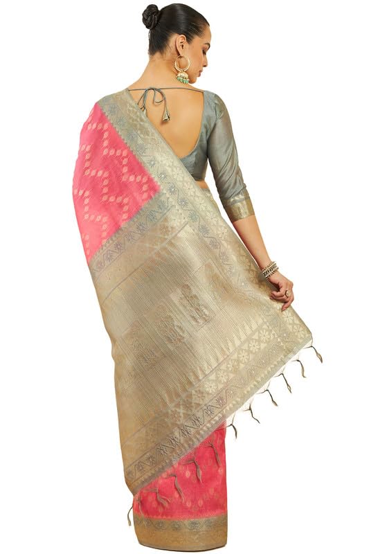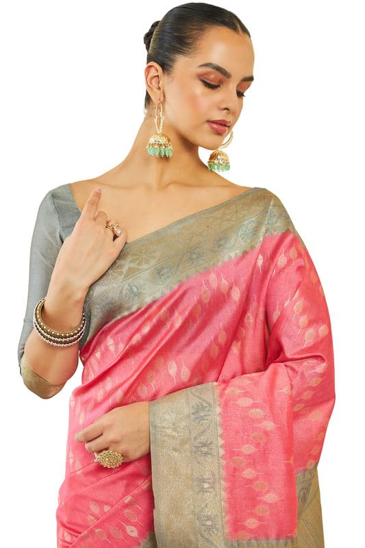 Soch Womens Pink Tussar Silk Saree With Woven Zari Designs And Grey Pallu