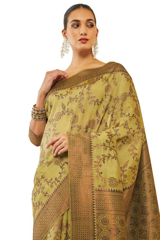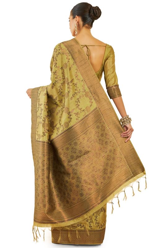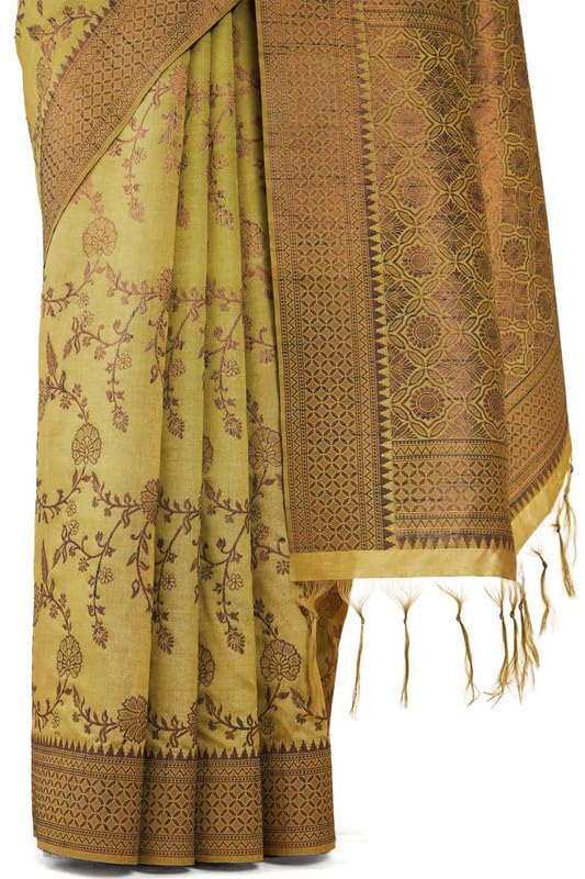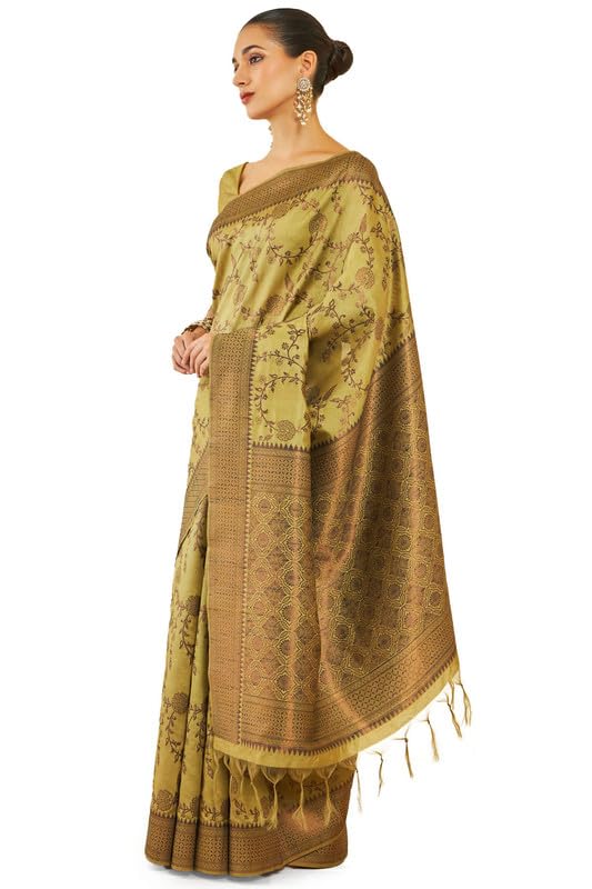 Soch Womens Tussar Silk Floral Pattern Woven Saree with Tasselled Border