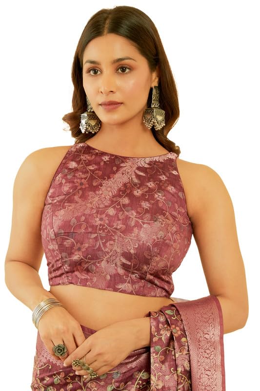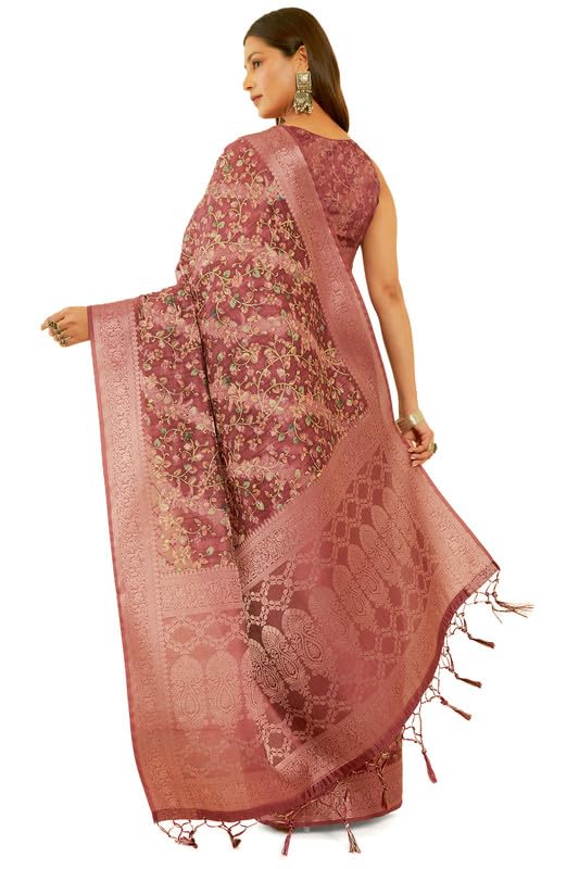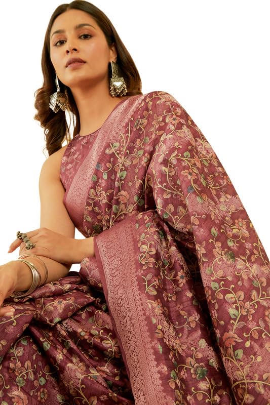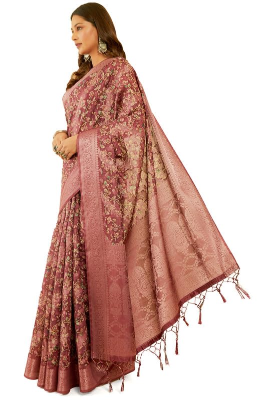 Soch Womens Wine Floral Print Chanderi Jacquard Saree