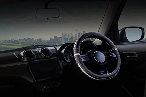 Soft X Premium Faux Leather Car Steering Wheel Cover Universal Size 38cm | Breathable Anti Slip Steering Cover for Untlimate Comfort & Style - Black & Silver