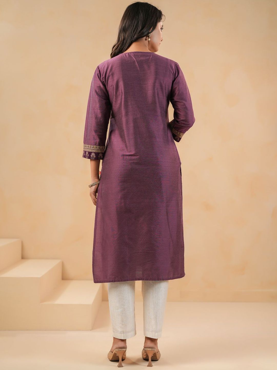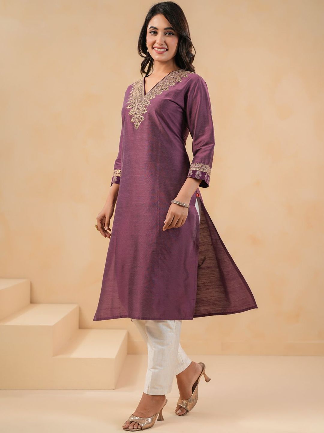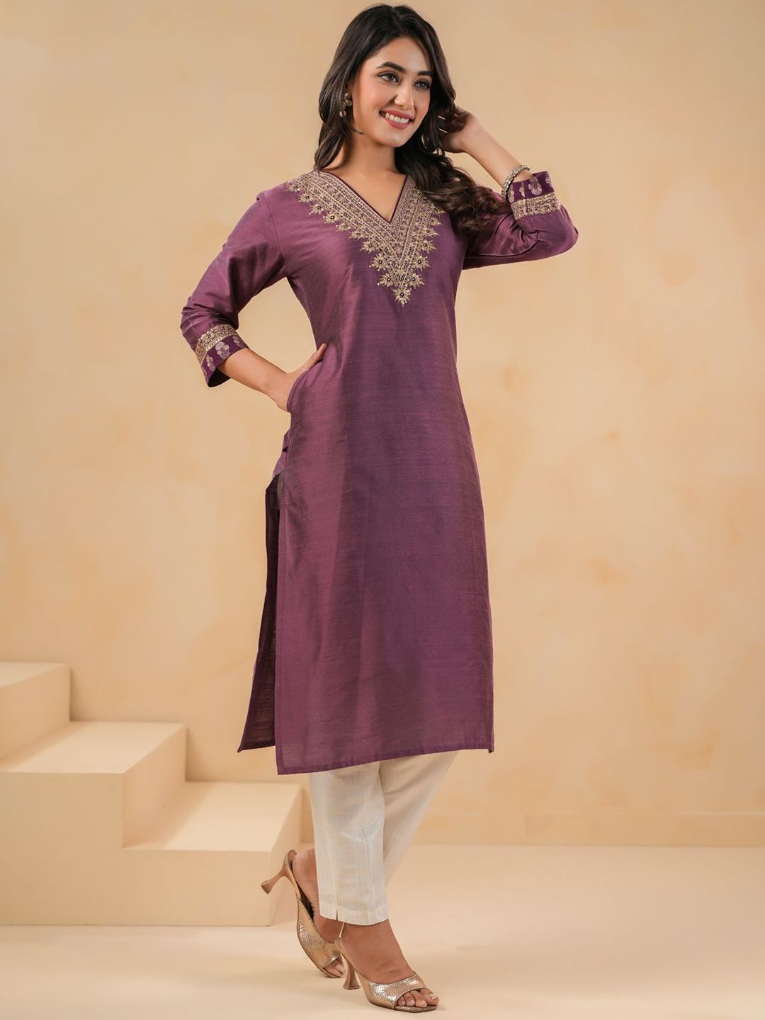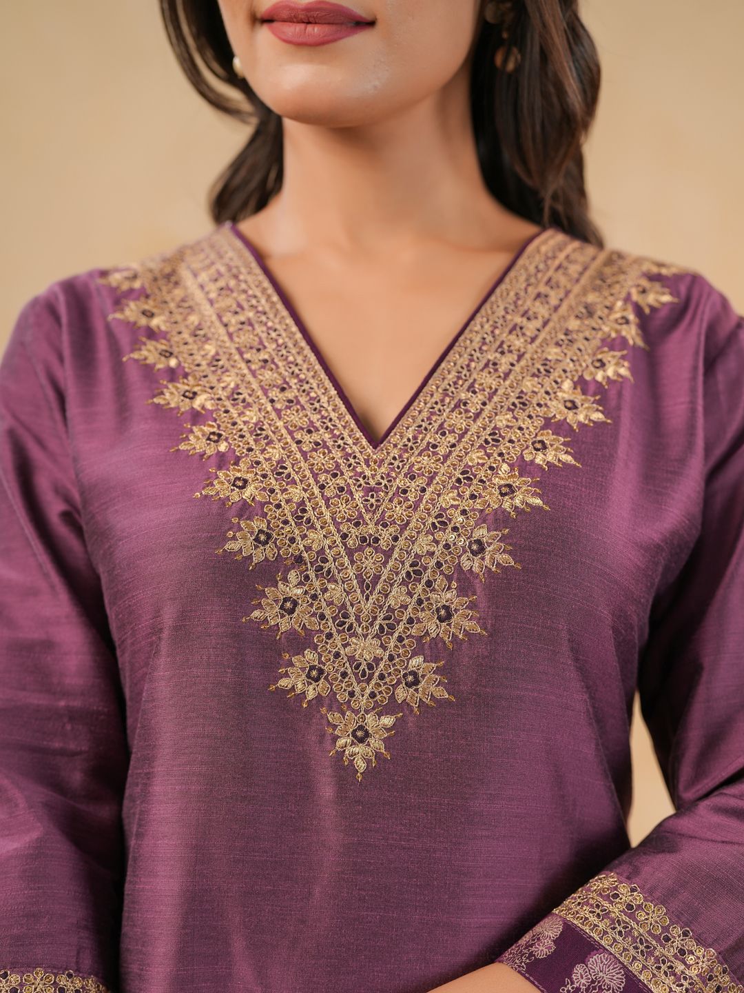 Buy this stylish Span Floral Yoke Design V-Neck Thread Work Pure Silk Straight Kurta With Trouser at Marincart Nepal. This product offers great quality and value. Perfect for those looking for the latest trends in fashion. Get yours now at unbeatable prices.