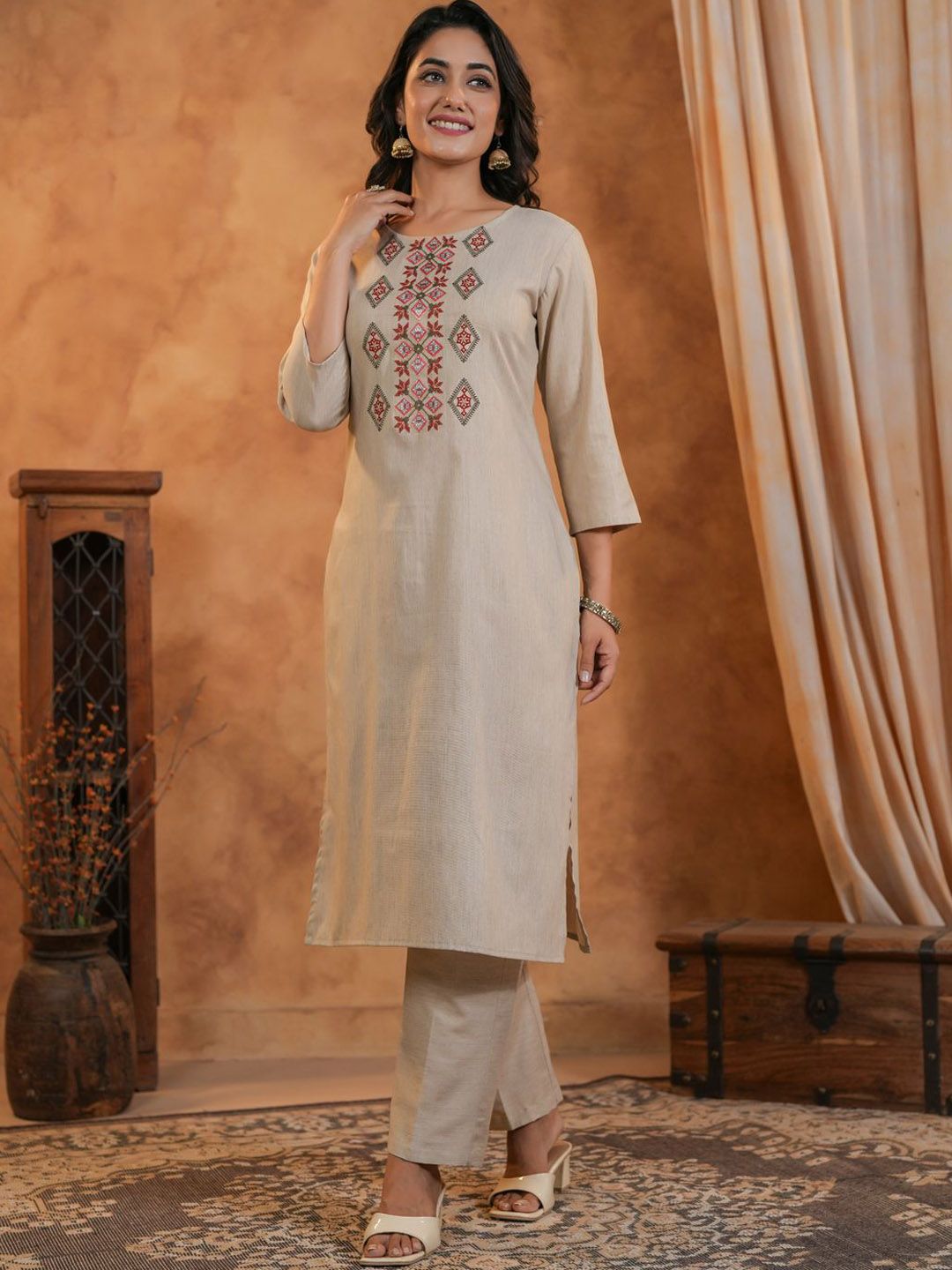 Span Women Floral Embroidered Regular Pure Cotton Kurta Set