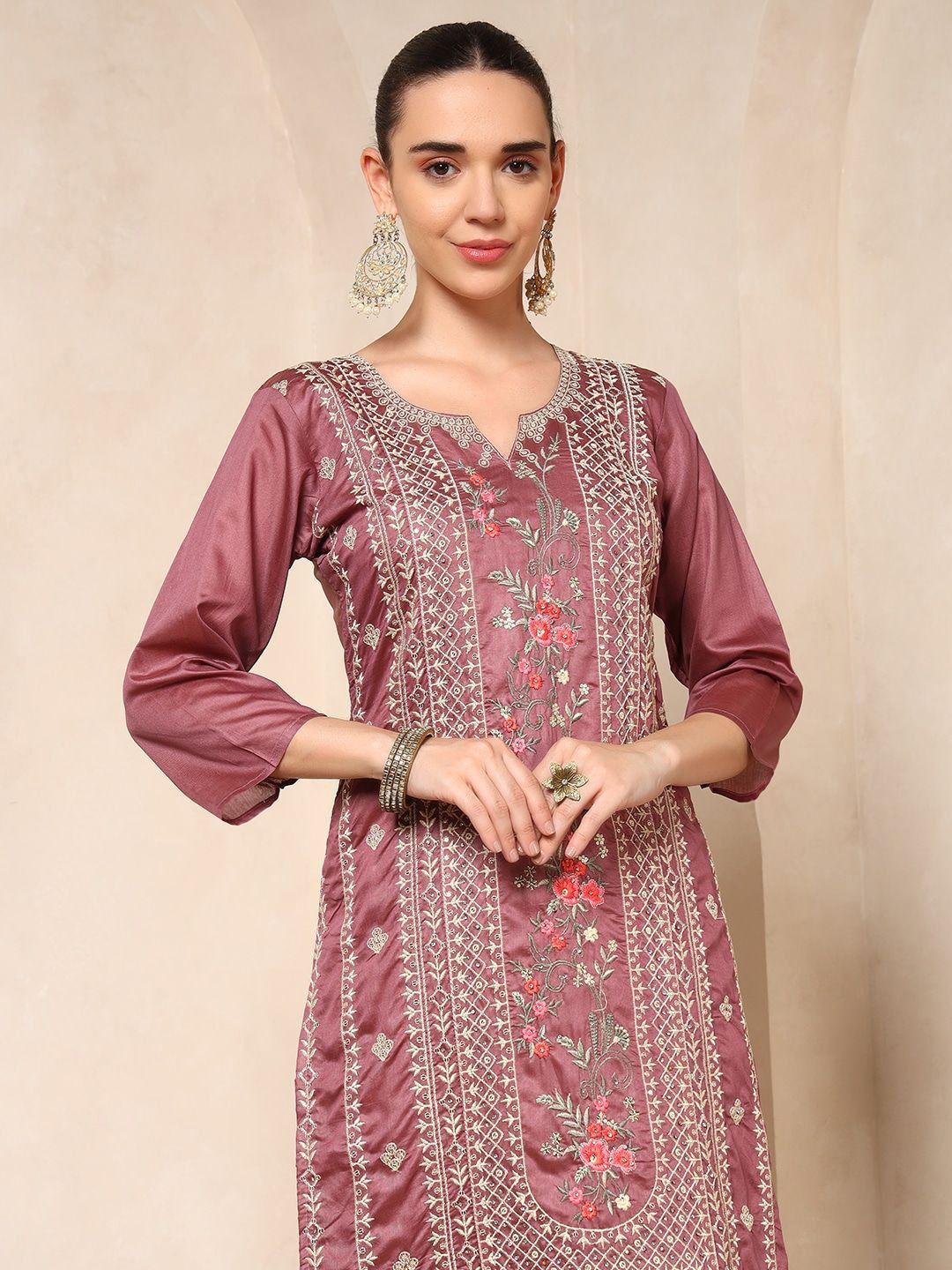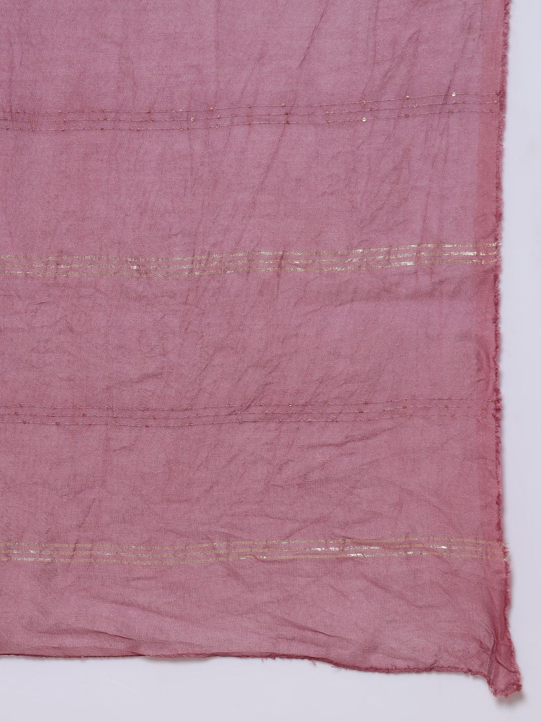 Spera Floral Embroidered V-Neck Beads And Stones Kurta With Trousers & Dupatta