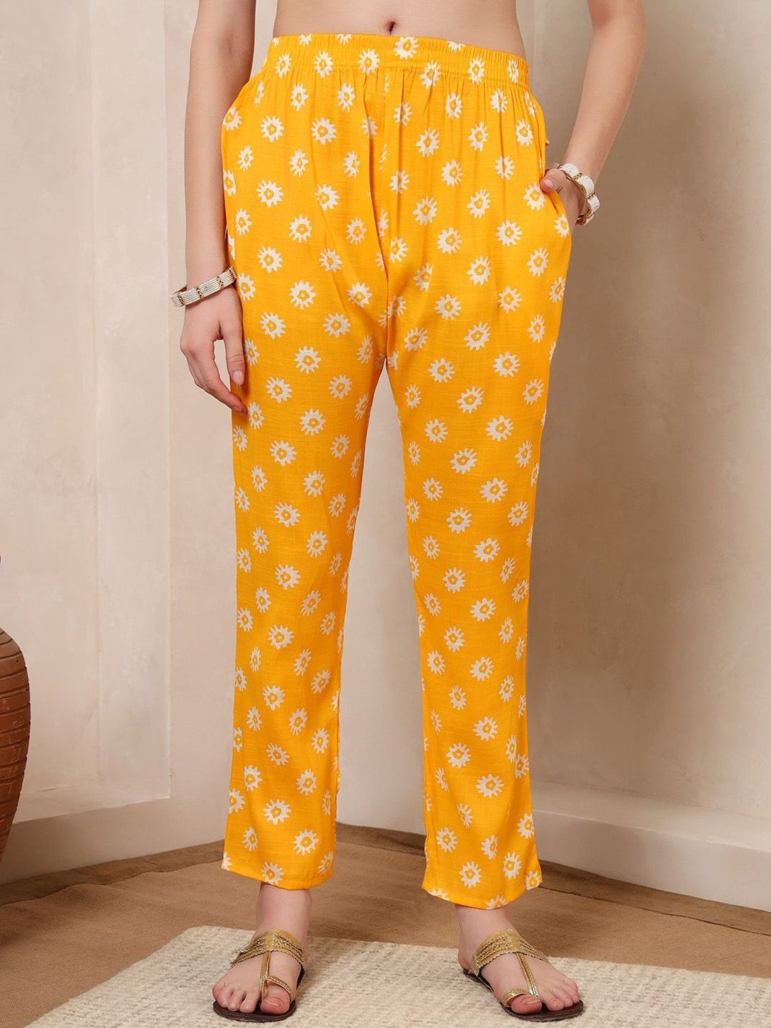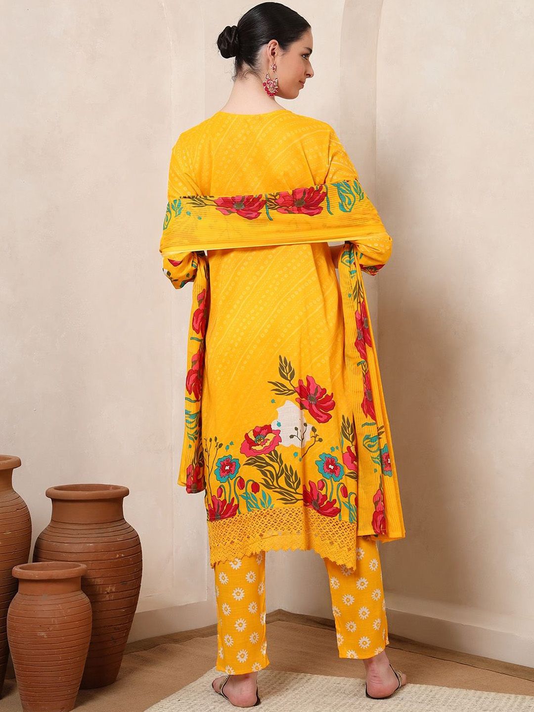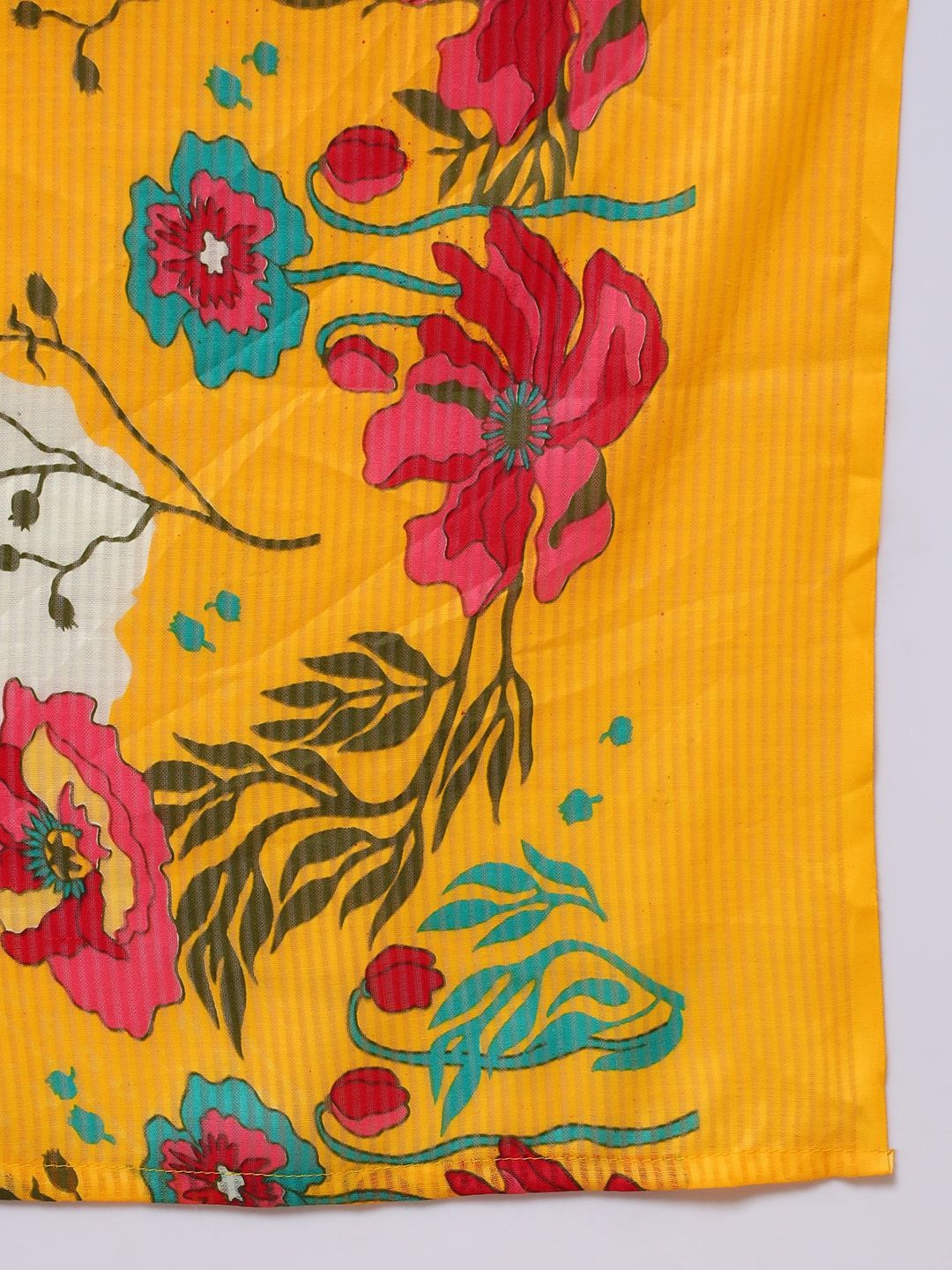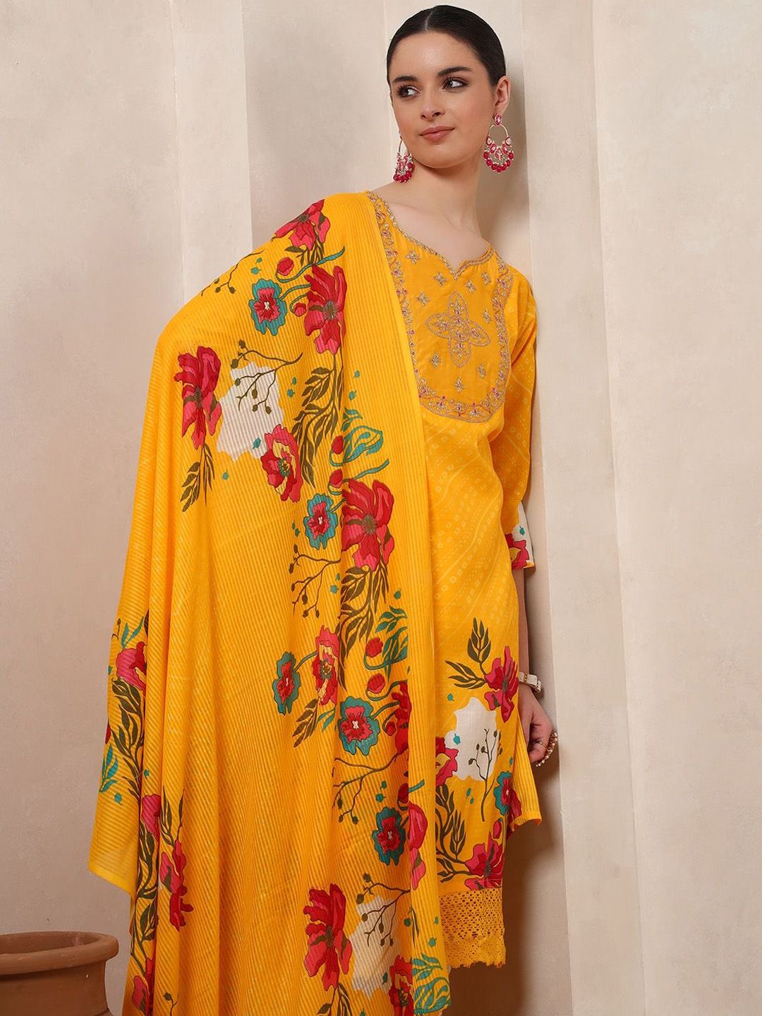 Spera Floral Printed Notch Neck Sequinned Straight Kurta With Trousers & Dupatta