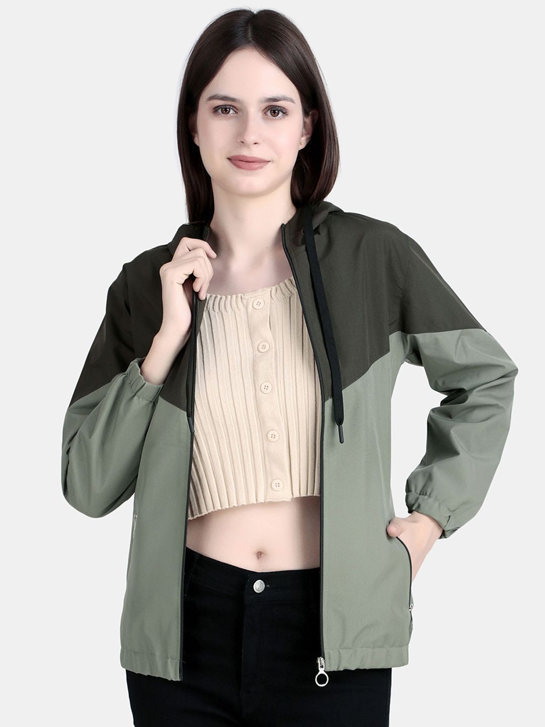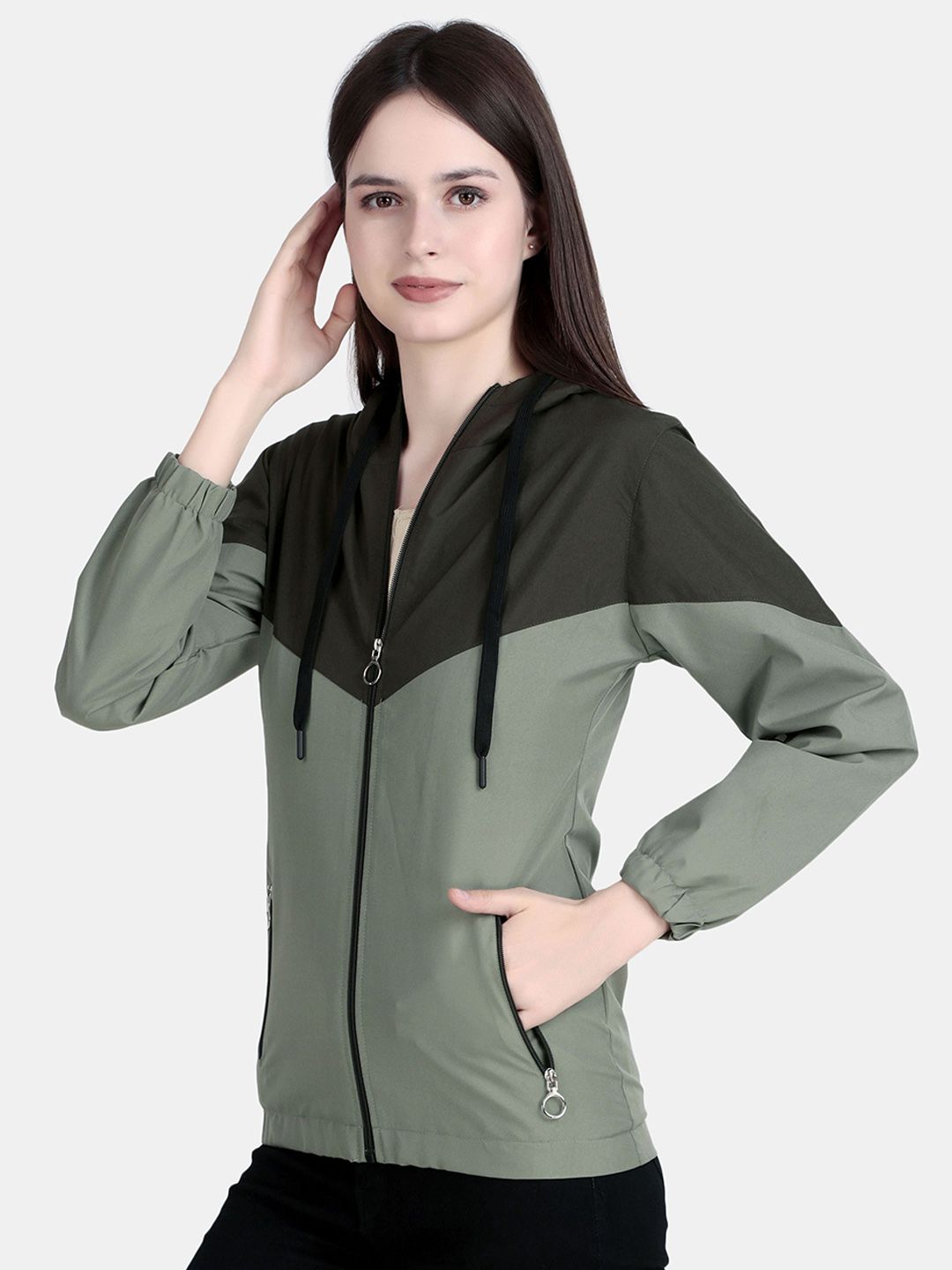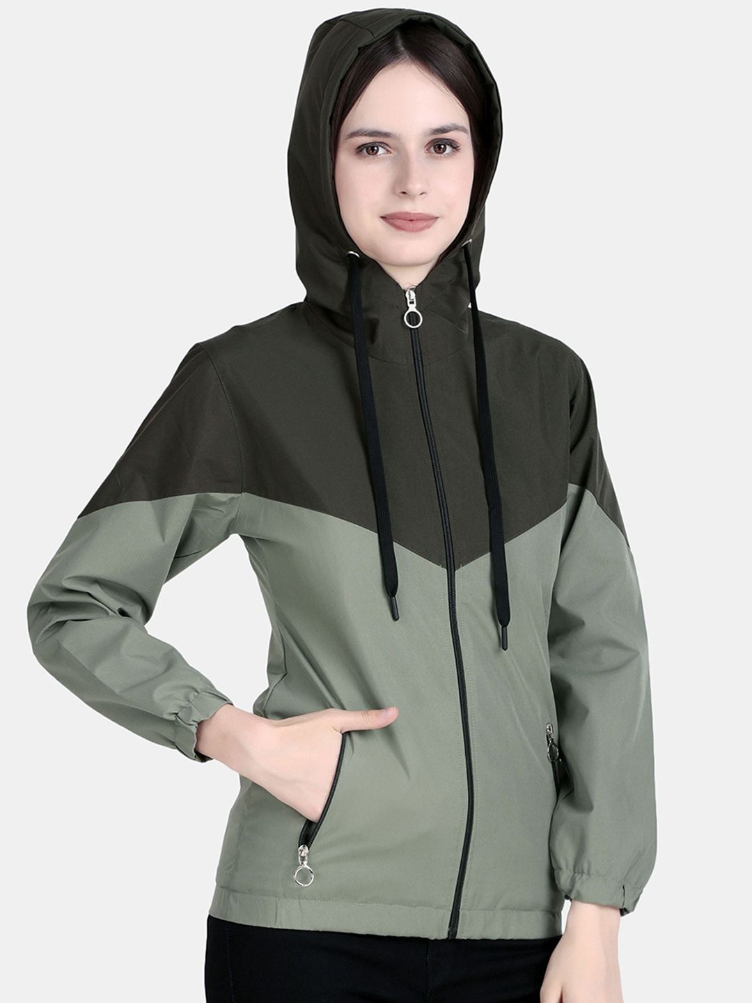 SPORTIZM Colourblocked Hooded Windcheater Outdoor Open Front Jacket