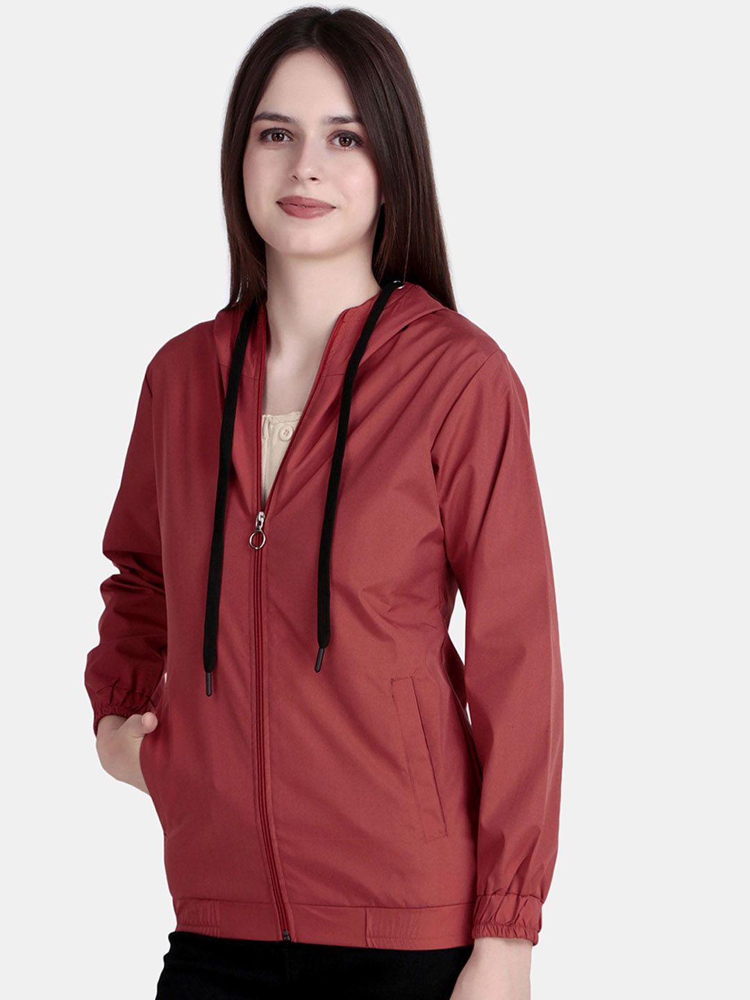 SPORTIZM Women Hooded Solid Windcheater Sporty Jacket