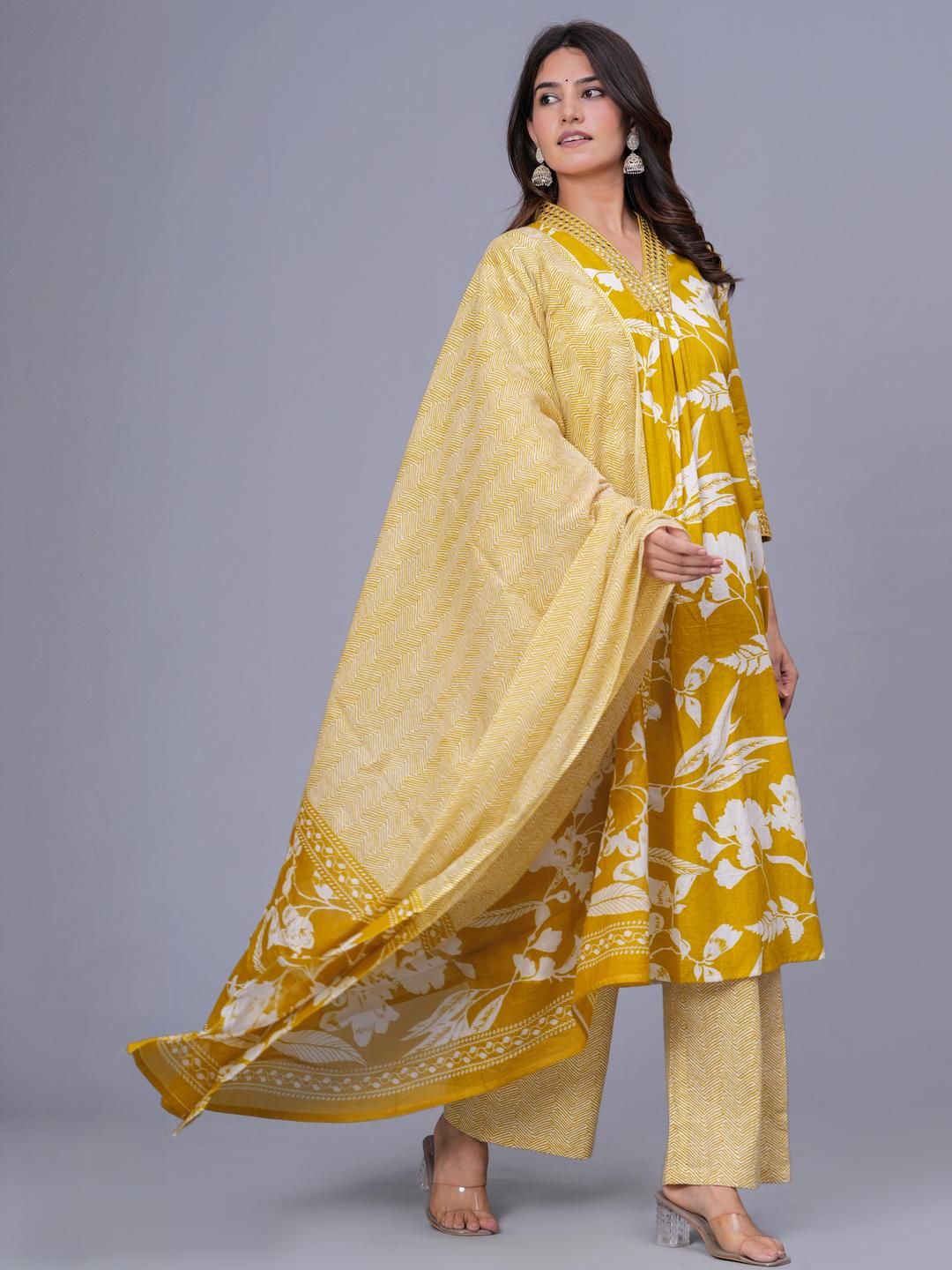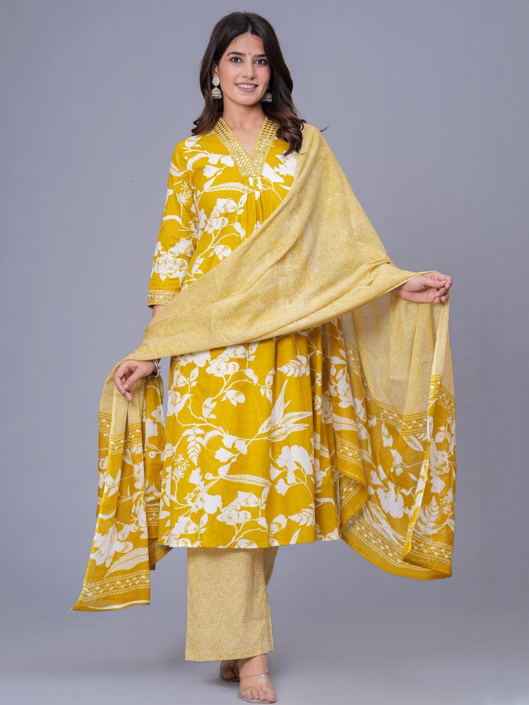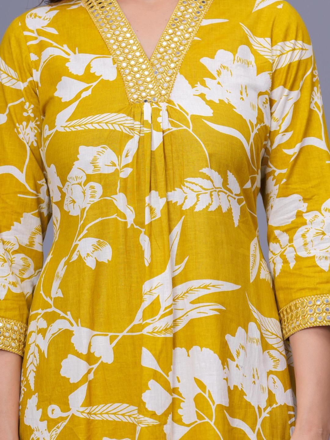 SQKURTI Women Yellow Printed Viscose Rayon Kurta Sets