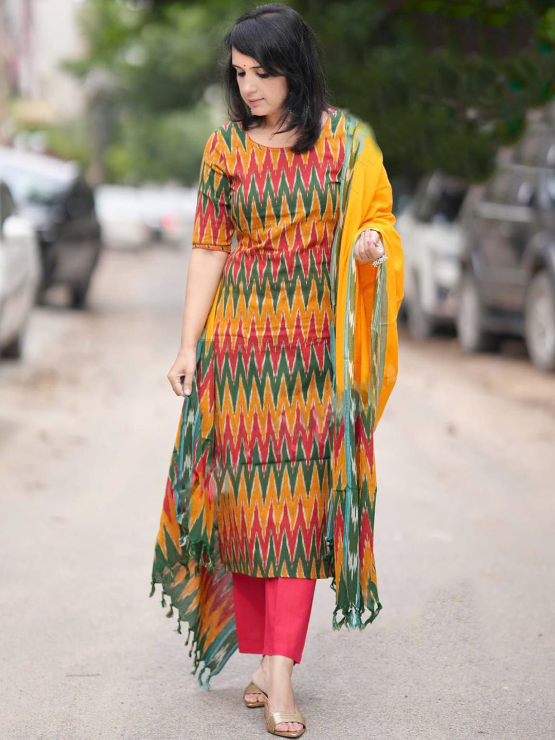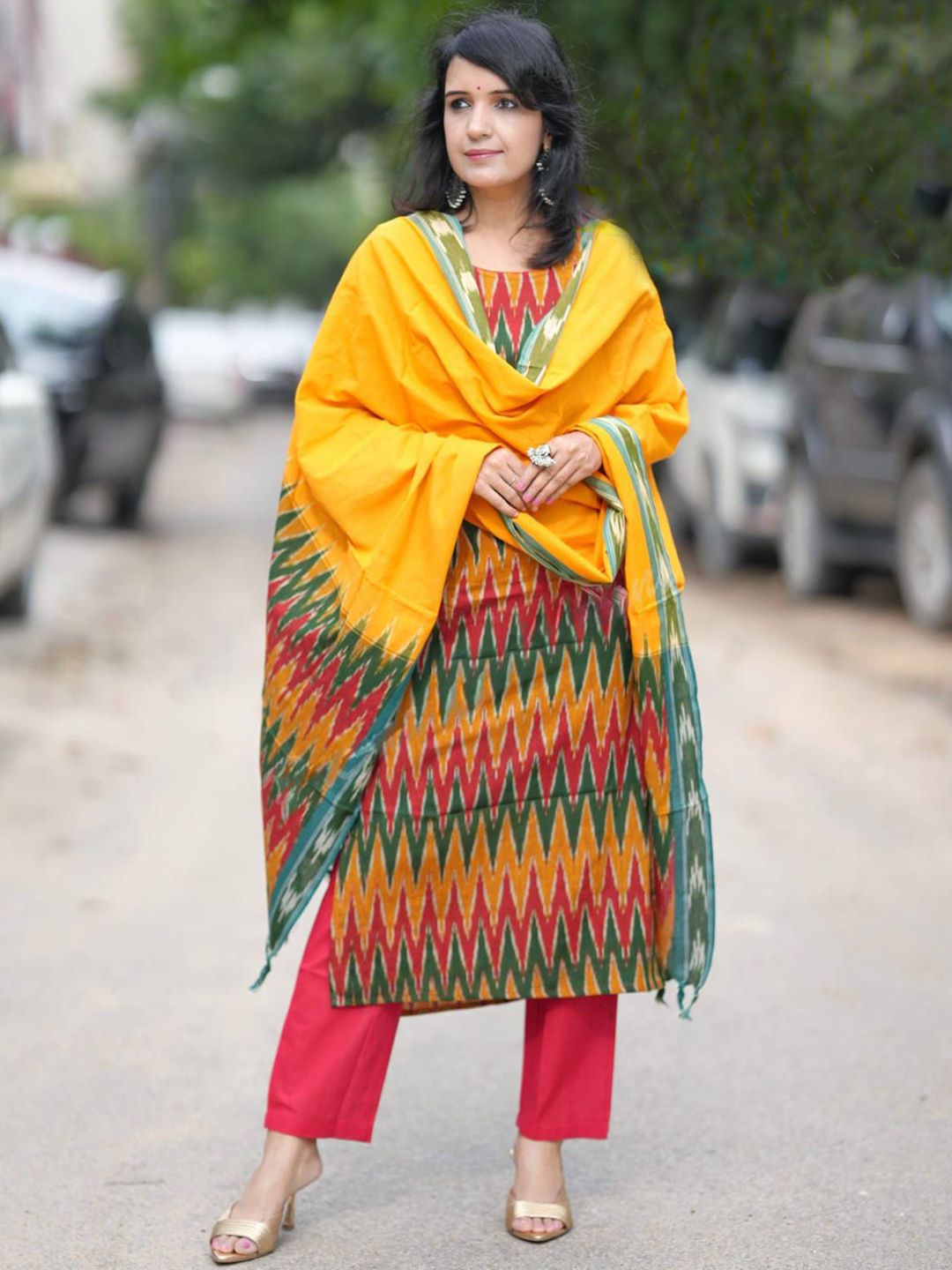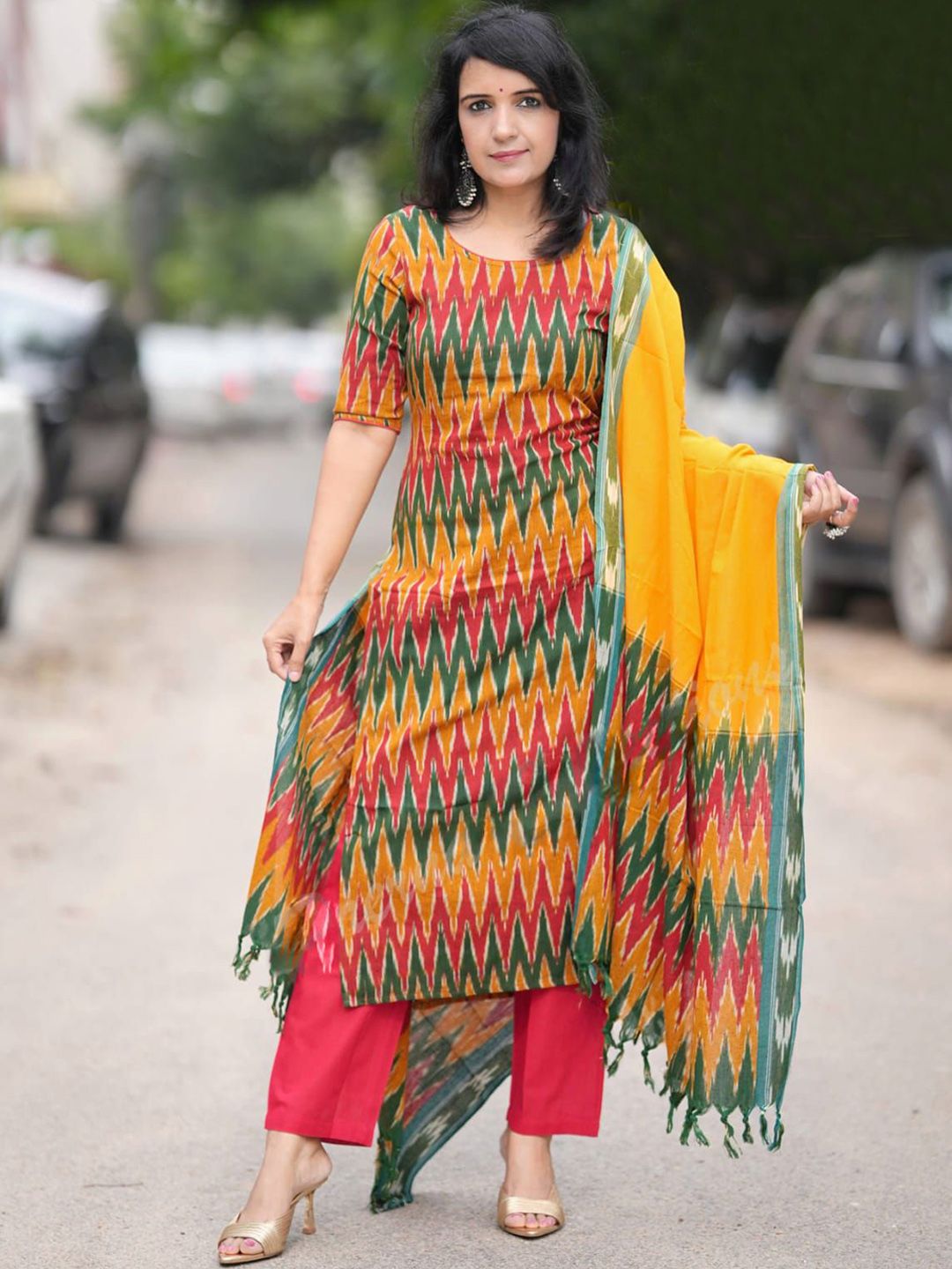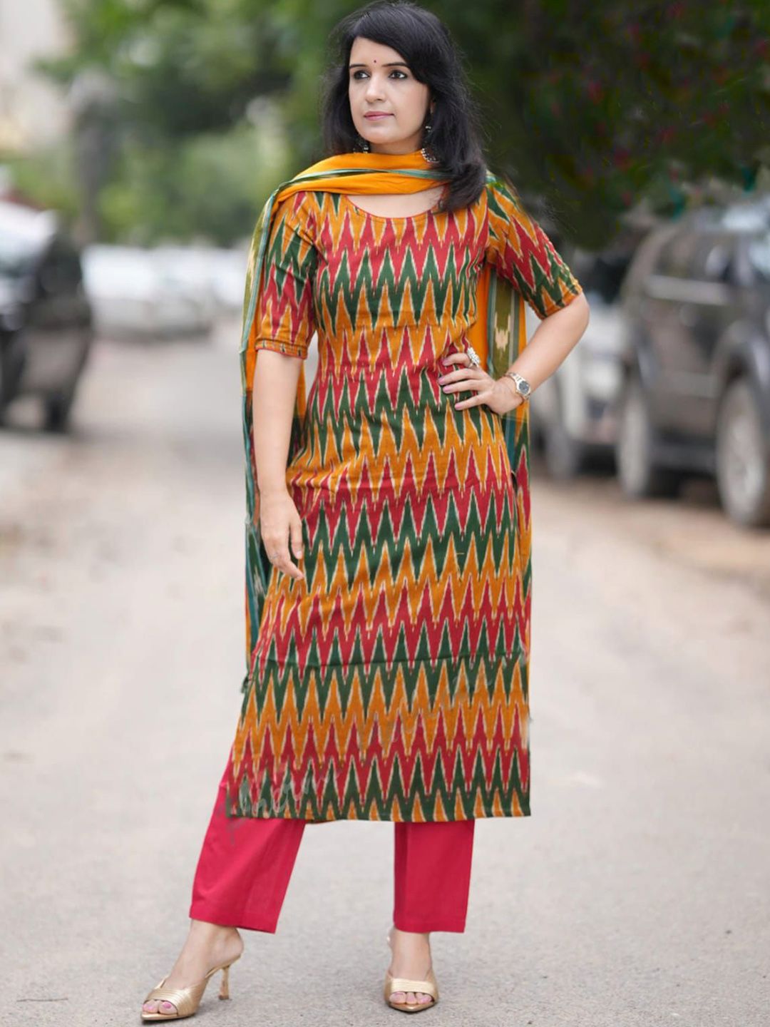 SRILICA Women Chevron Printed Kurta with Trousers & Dupatta
