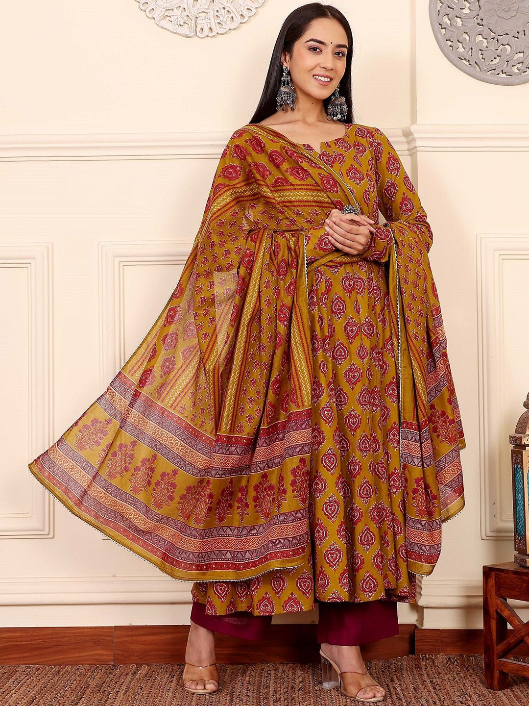 SRILICA Women Floral Embroidered Regular Kurta with Trousers & Dupatta