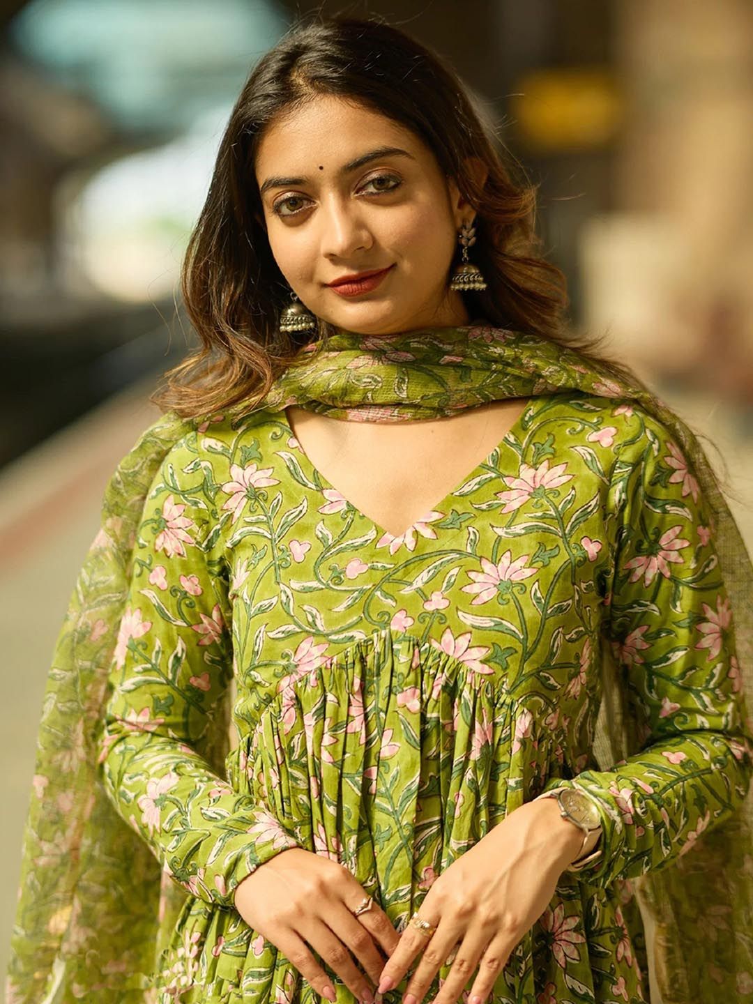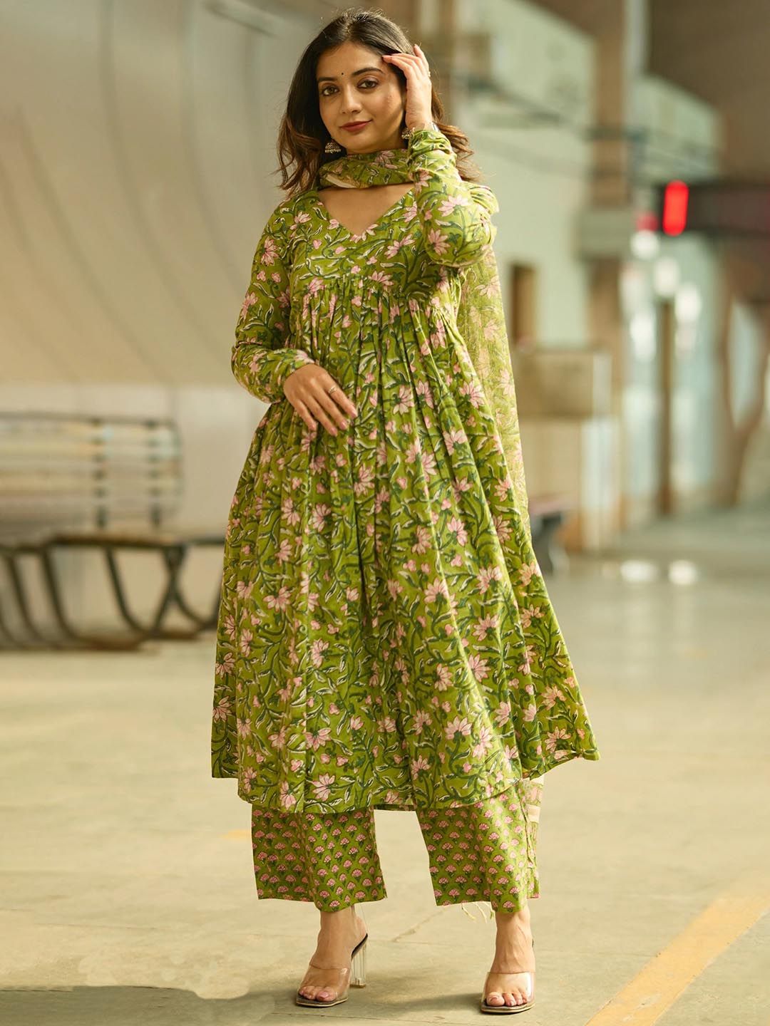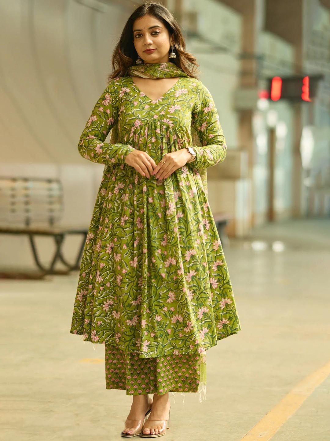 SRILICA Women Floral Printed Anarkali Kurta with Trousers & Dupatta