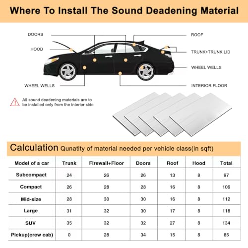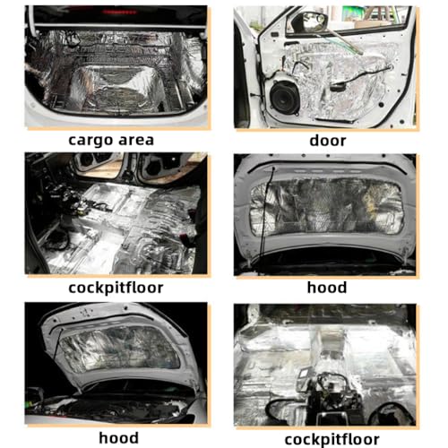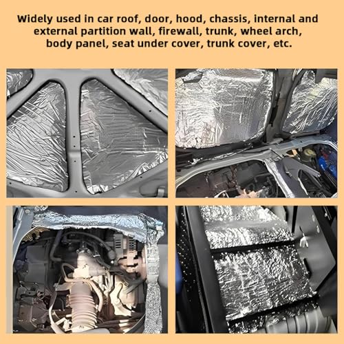 ENHANCED SOUNDPROOFING PERFORMANCE: These car noise dampening panels feature a multi-layer construction, including a thick 5mm high-density foam and middle cotton layer, which effectively absorbs and blocks unwanted noise. This design significantly reduces external sounds and engine vibration, creating a focus and more comfortable driving experience. EASY SELF-ADHESIVE INSTALLATION: Each panel comes with a reliable self-adhesive backing, allowing for quick and hassle-free application. Simply peel and stick the dampening mats to your desired area without the need for extra tools or messy glues. TRIM-TO-FIT VERSATILITY: Each soundproofing mat is of 50x30cm. The sound insulation sheets are designed to be easily cut and shaped, ensuring a perfect fit for various parts of your vehicle, such as doors, trunks, floors, and hoods. This versatility allows you to customize noise reduction precisely where you need it most, enhancing the overall acoustic environment in your car. DURABLE FOIL SURFACE: Equipped with a durable foil top layer, these mats offer added resistance to heat, moisture, and wear. The foil layer protects the foam core, prolonging the lifespan of the panels and maintaining their soundproofing effectiveness, even in challenging automotive environments and temperature extremes. PACK OF 10PCS: This set includes 10 noise dampening mats, giving you ample coverage for multiple sections of your vehicle. Whether you're soundproofing a single area or upgrading the entire interior, this pack of sound insulation panels ensures you have enough material to achieve outstanding noise reduction throughout your car.