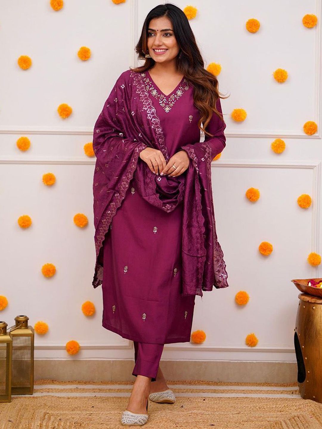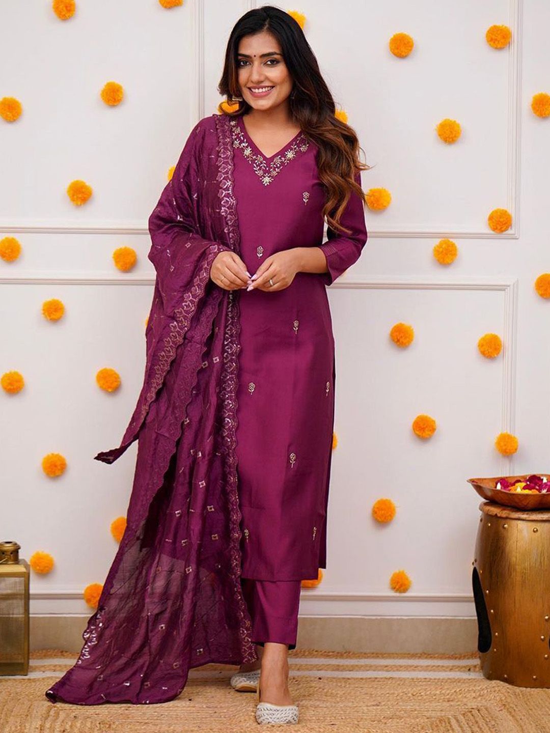 Buy this stylish Storebrite Floral Embroidered V-Neck Chanderi Silk Kurta With Trousers & Dupatta at Marincart Nepal. This product offers great quality and value. Perfect for those looking for the latest trends in fashion. Get yours now at unbeatable prices.
