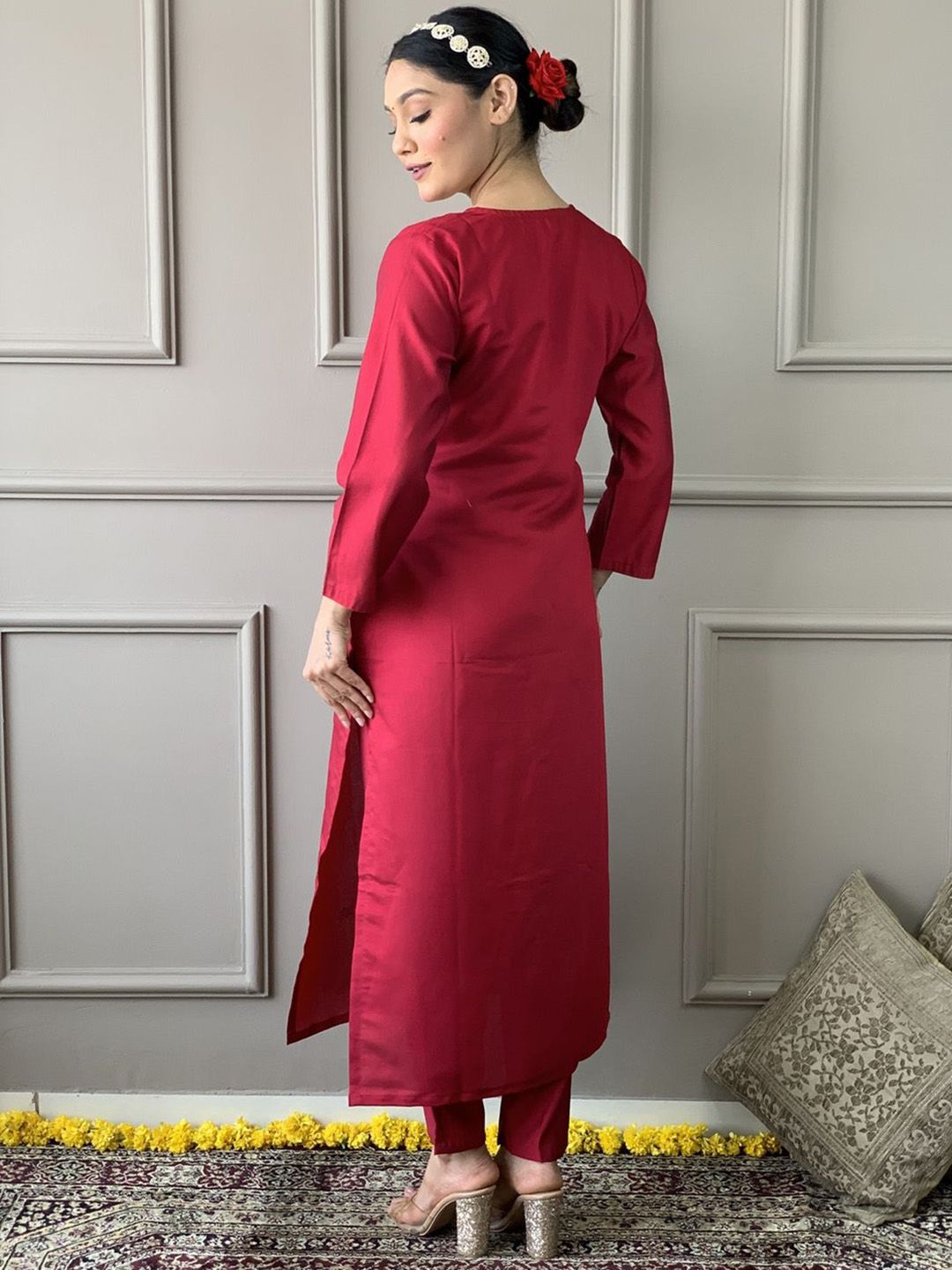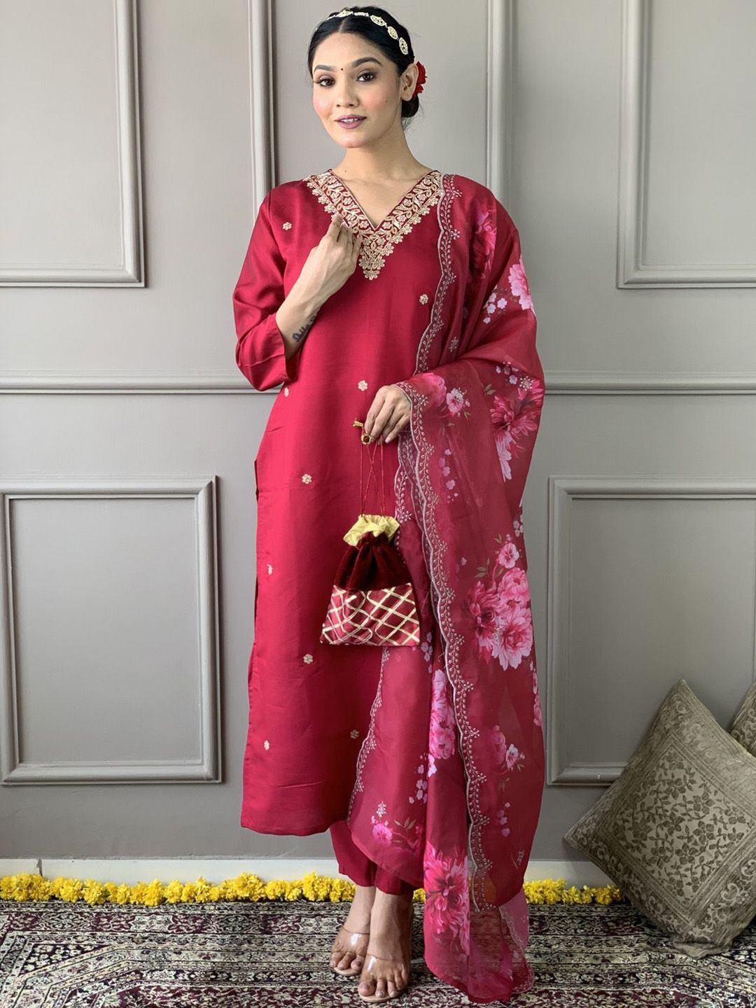 Storebrite Women Floral Regular Thread Work Kurta with Trousers & With Dupatta