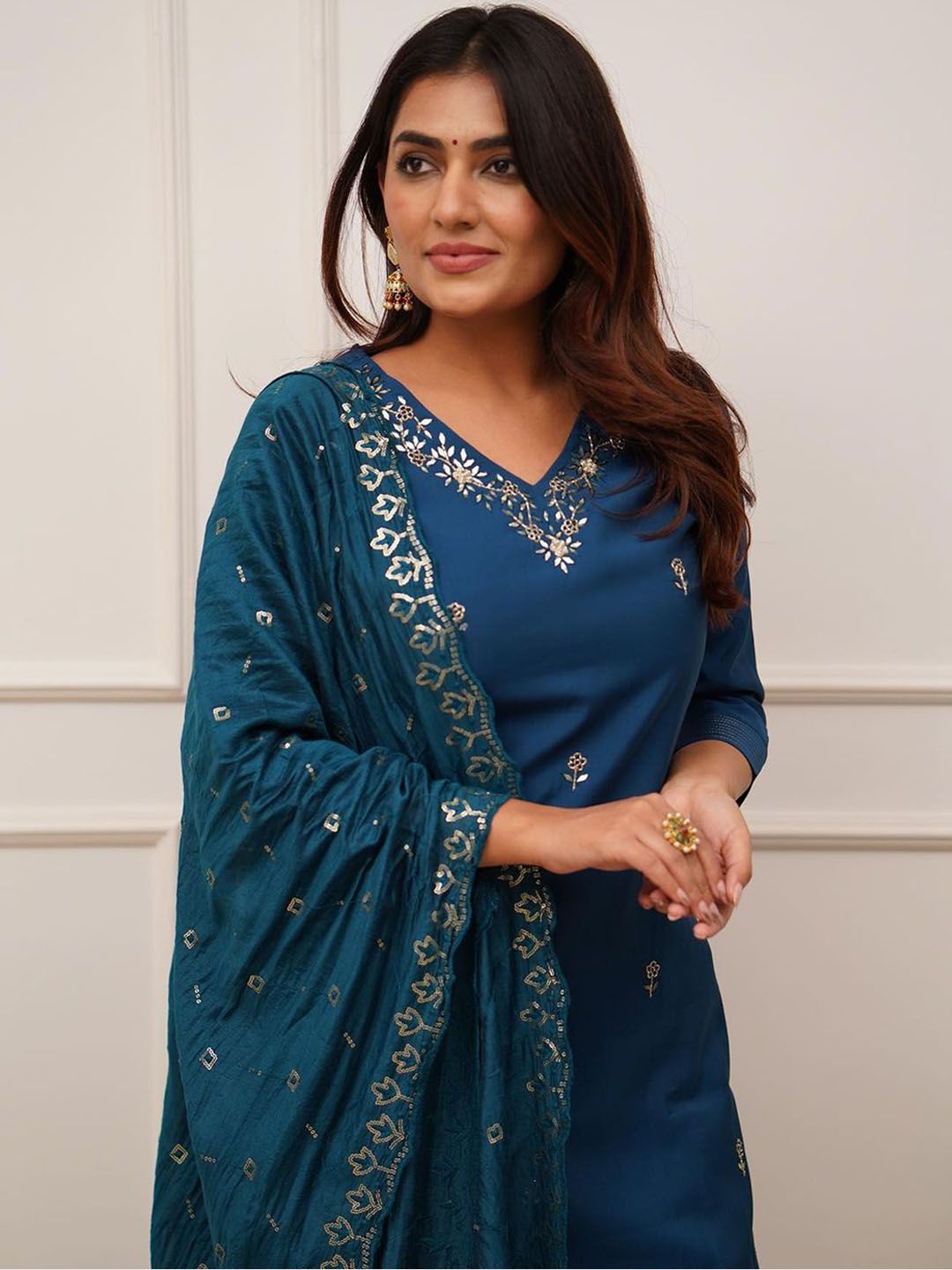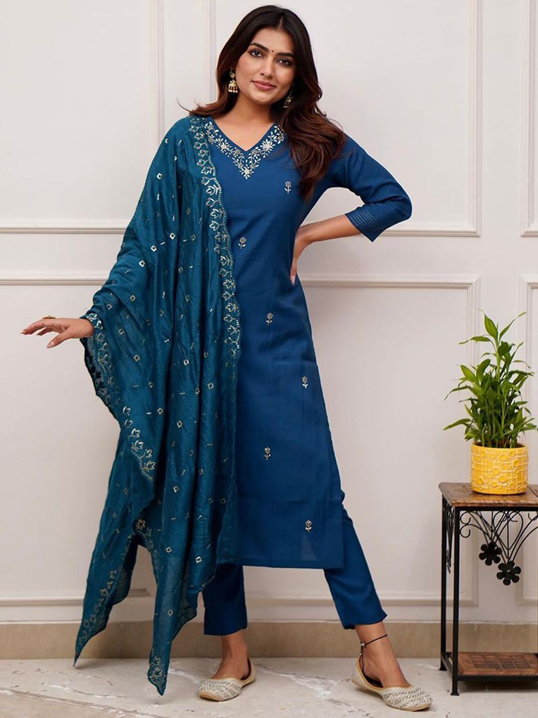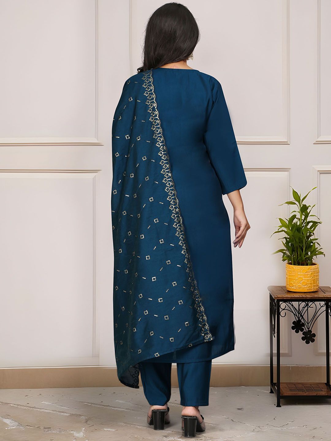 Storebrite Women Paisley Embroidered Regular Thread Work Chanderi Silk Kurta Set