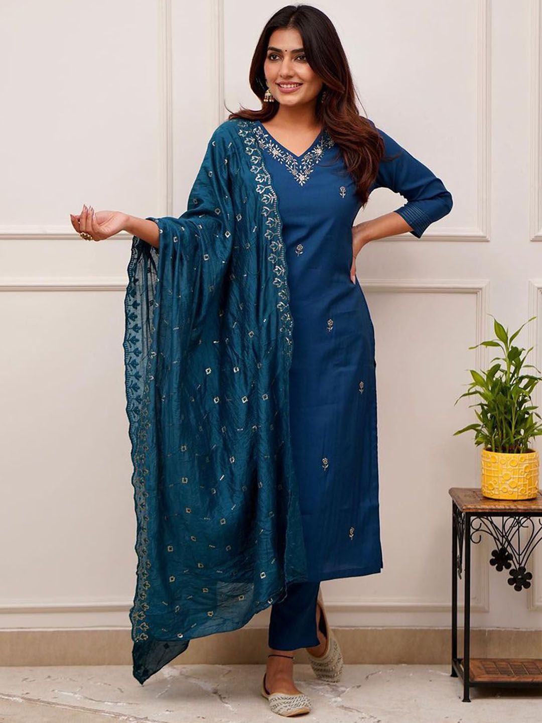 Buy this stylish Storebrite Women Paisley Embroidered Regular Thread Work Chanderi Silk Kurta Set at Marincart Nepal. This product offers great quality and value. Perfect for those looking for the latest trends in fashion. Get yours now at unbeatable prices.