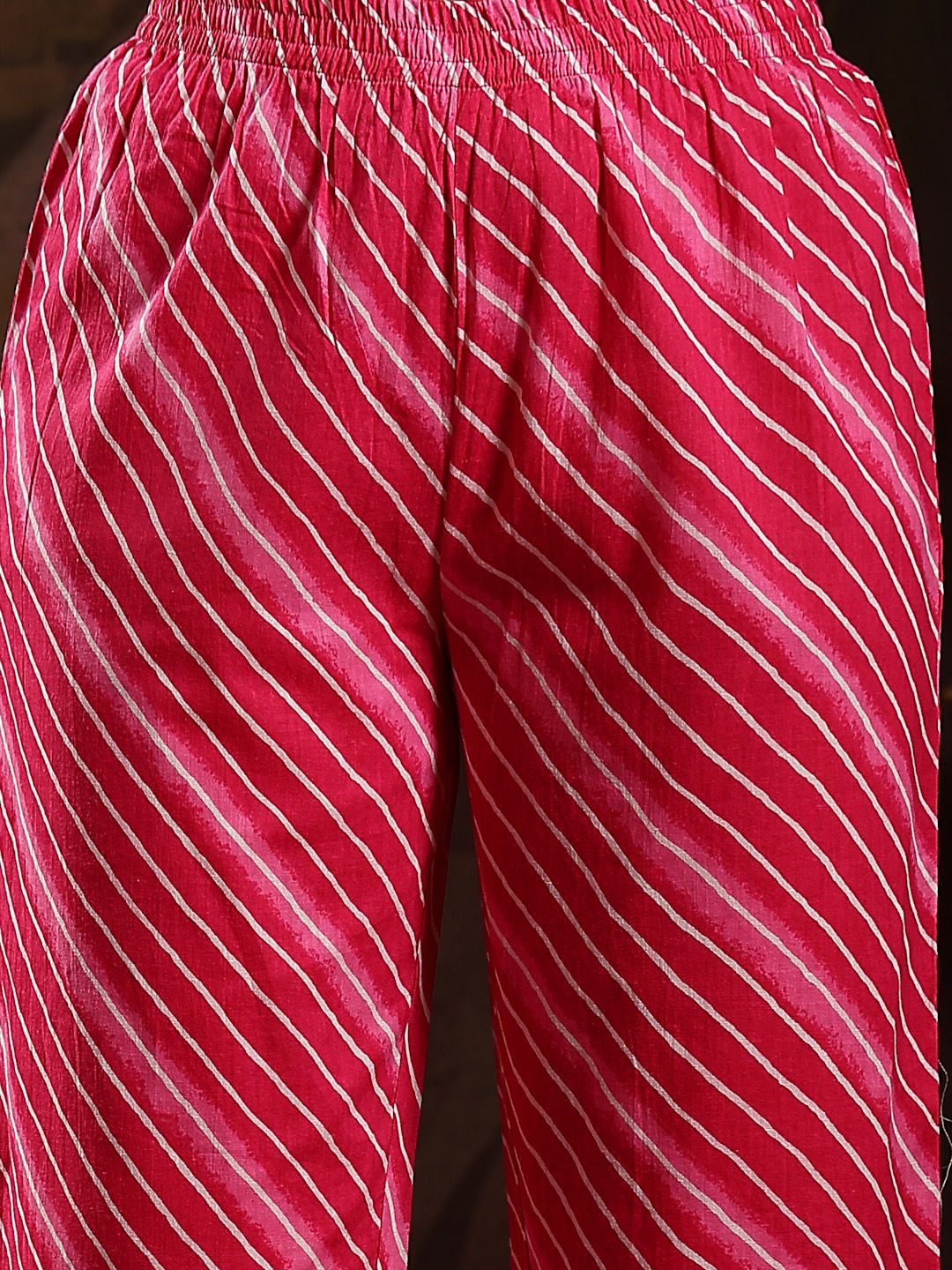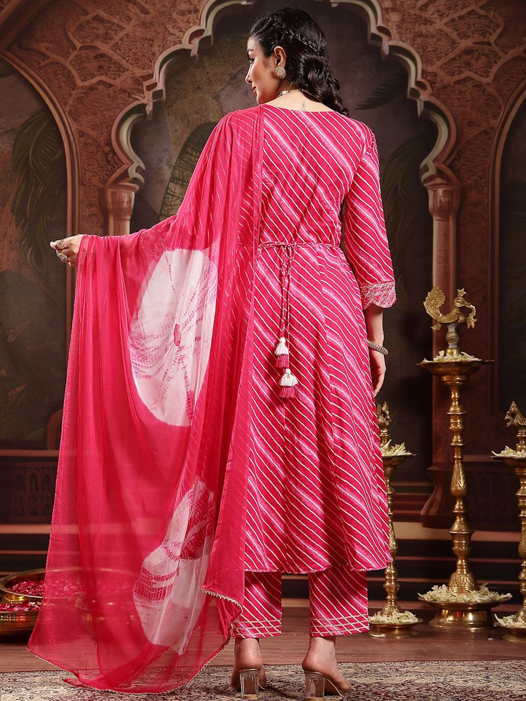 Stylum Leheriya Printed Empire Sequinned Pure Cotton Anarkali Kurta With Trouser & Dupatta