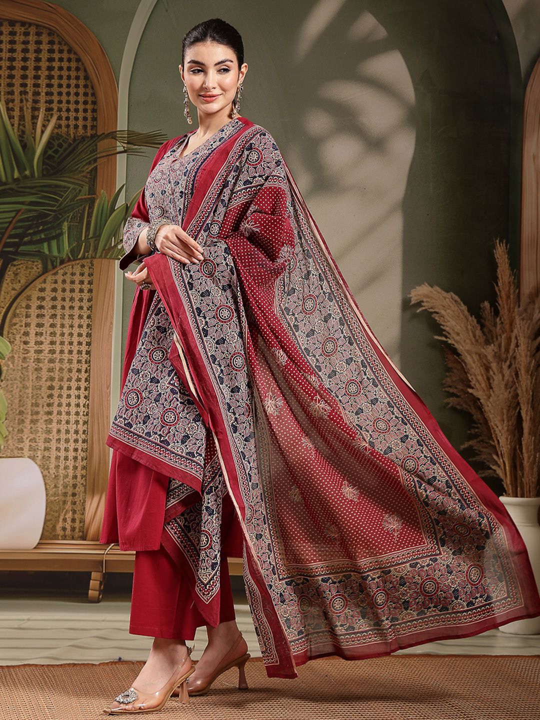 Stylum Women Ethnic Motifs Printed Cotton Kurta with Trousers & Dupatta