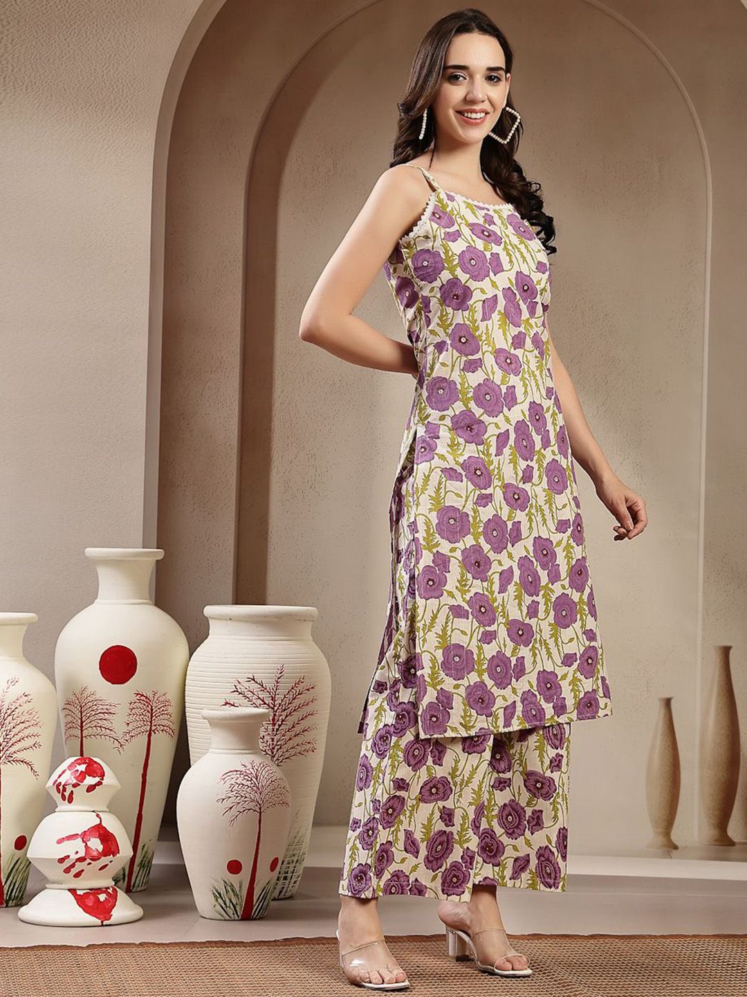 Stylum Women Floral Printed Regular Pure Cotton Kurta with Palazzos