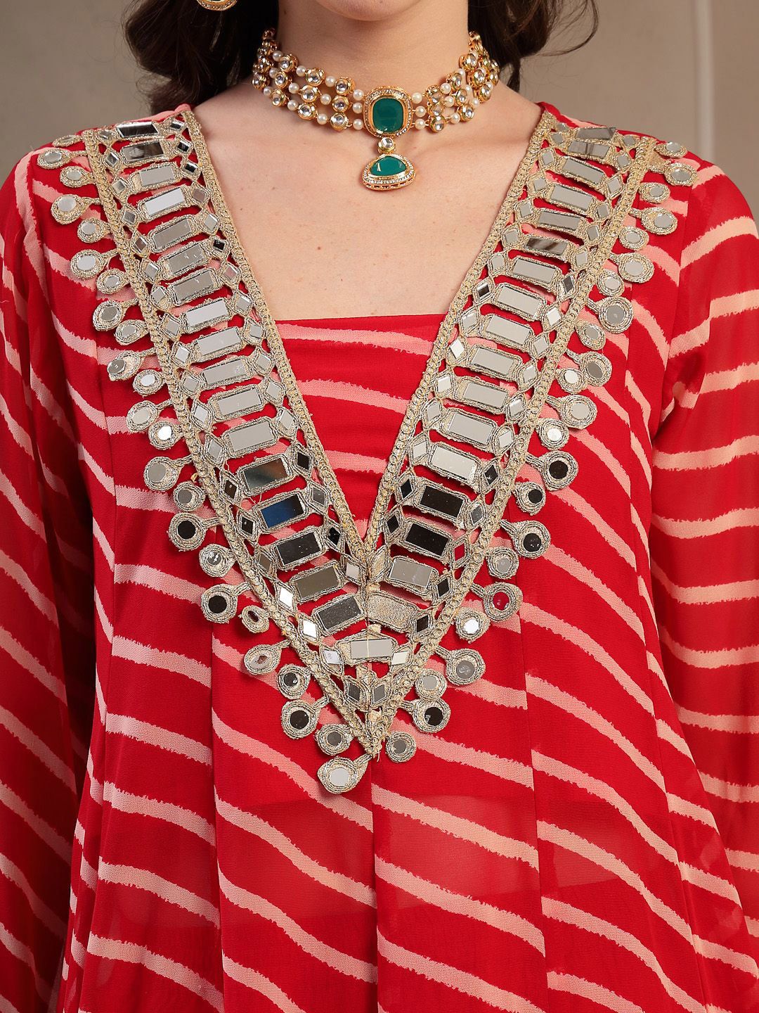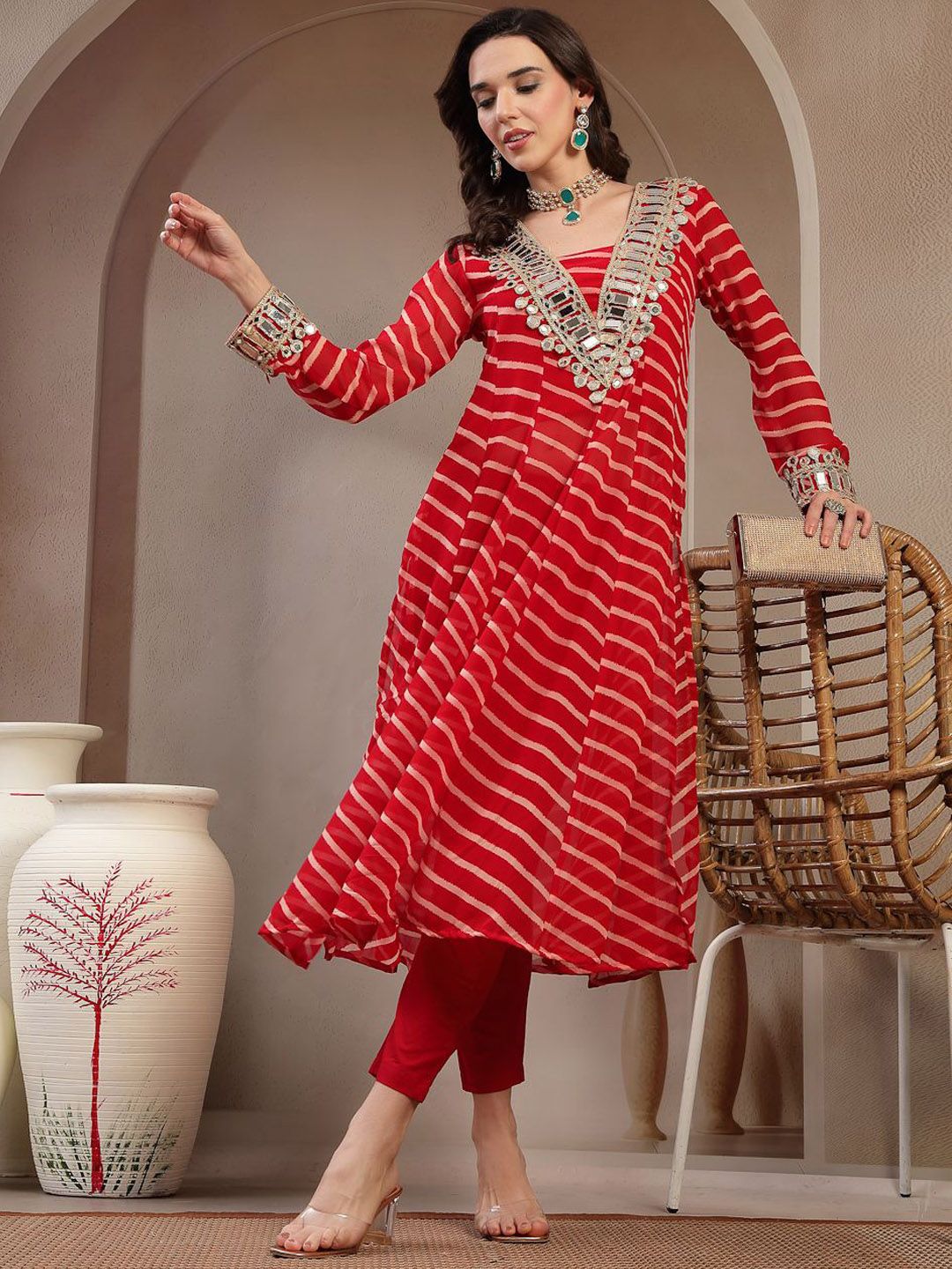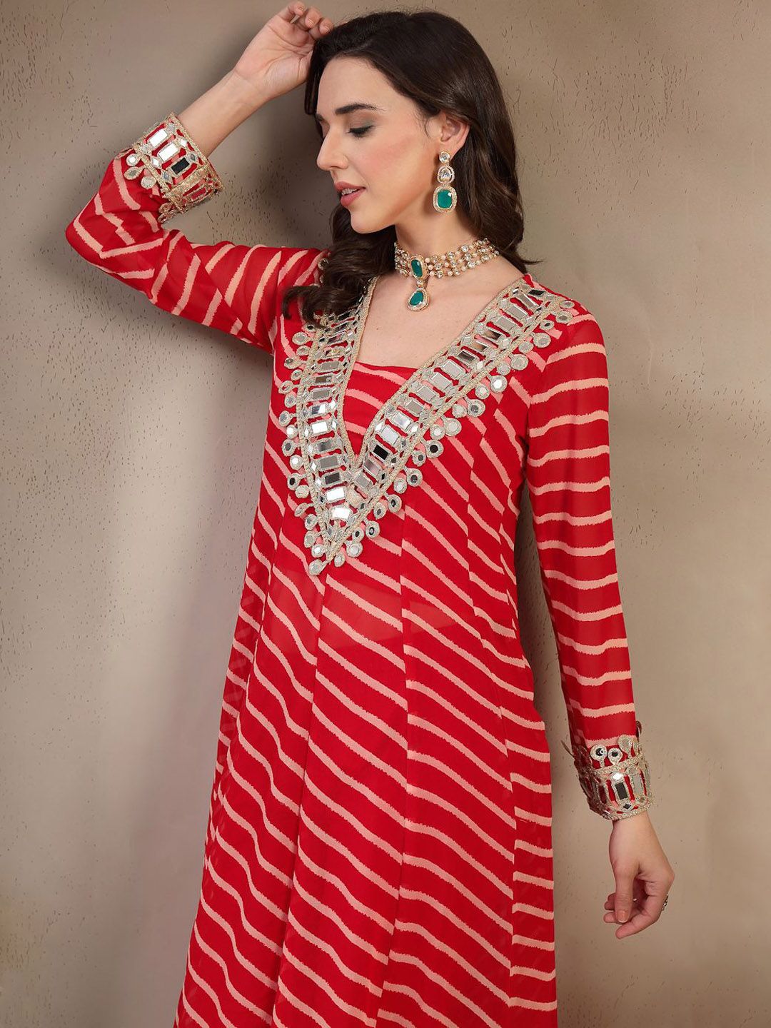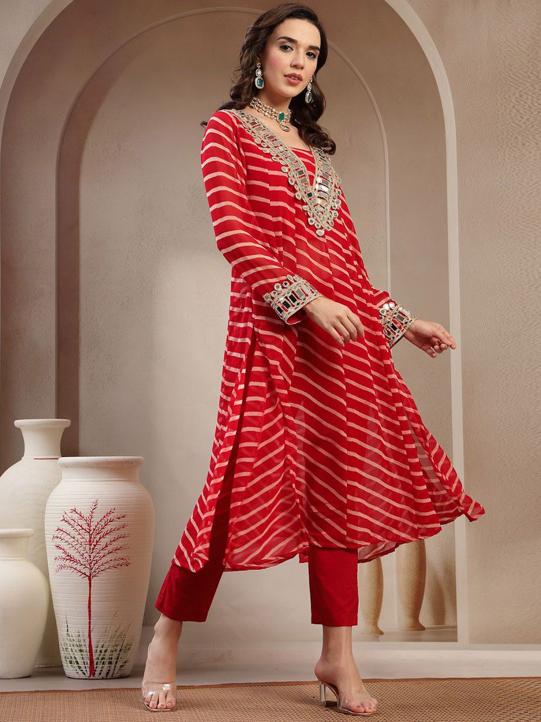 Stylum Women Leheriya Printed A-Line Kurta with Trousers