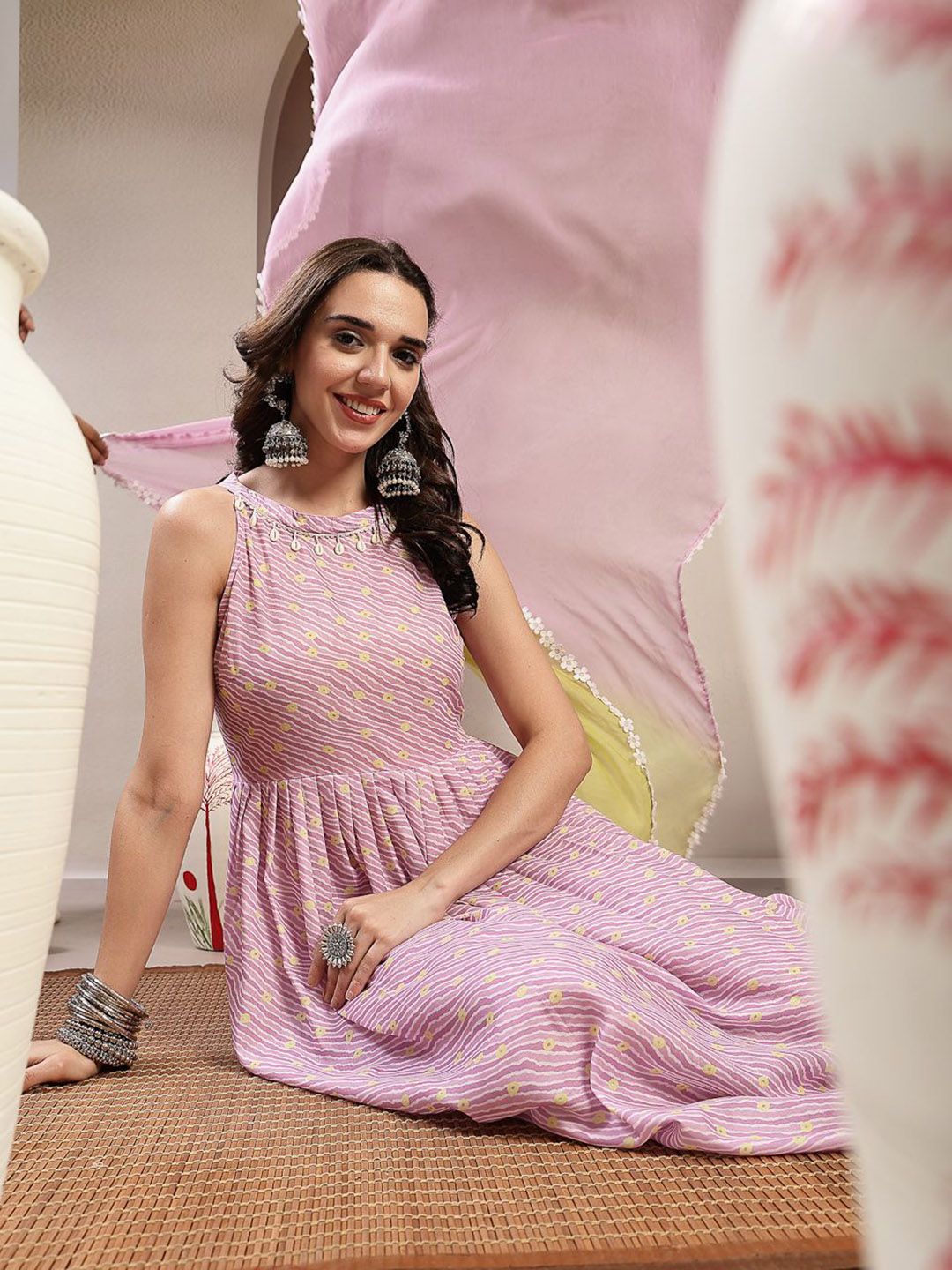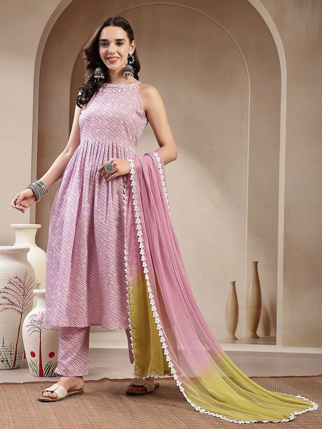 Stylum Women Leheriya Printed Regular Pure Cotton Kurta & Trousers With Dupatta